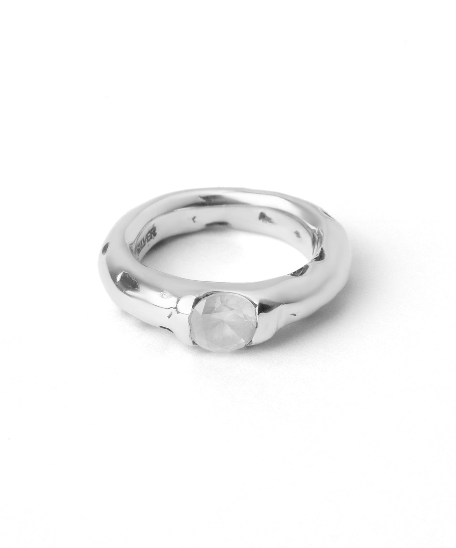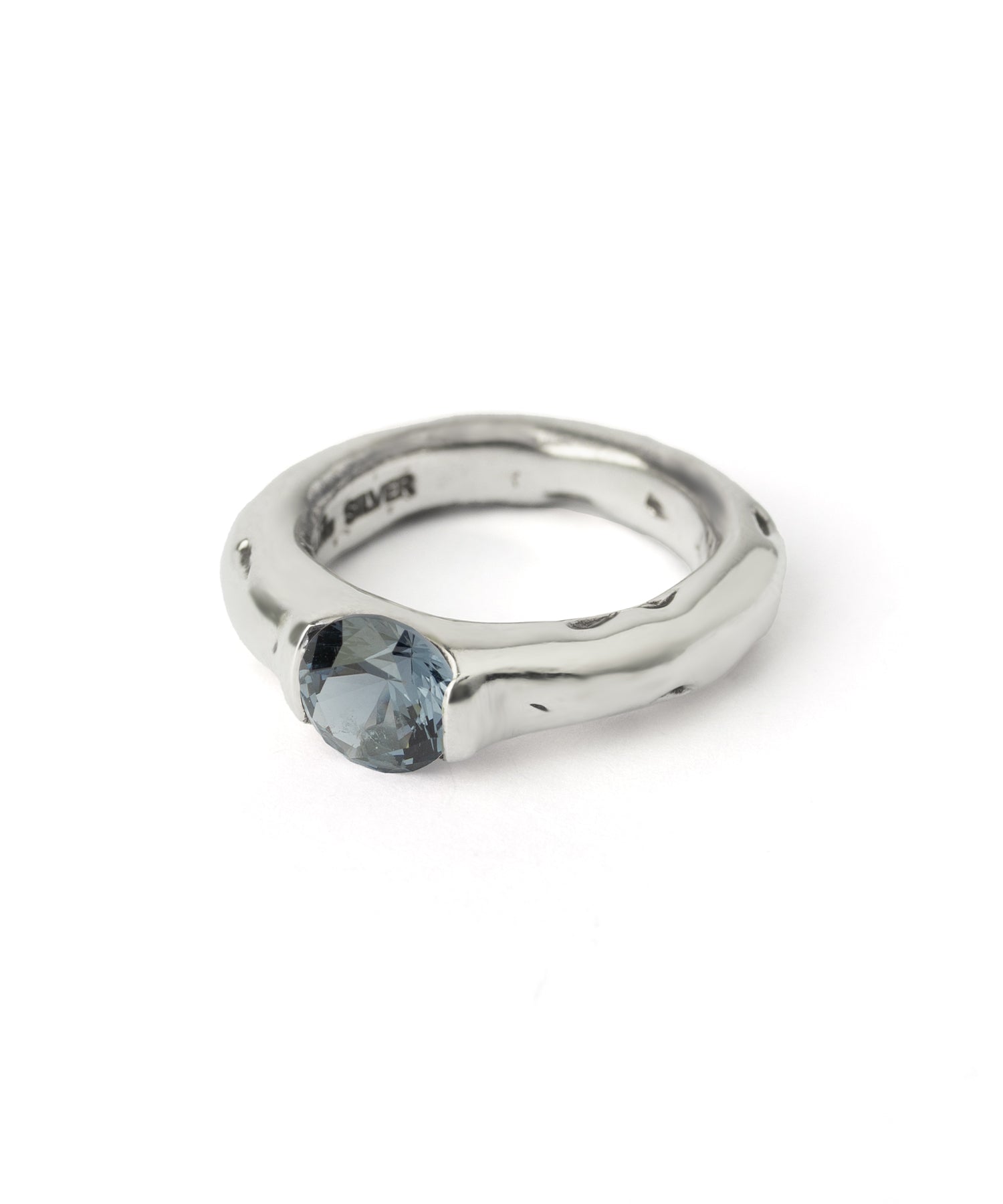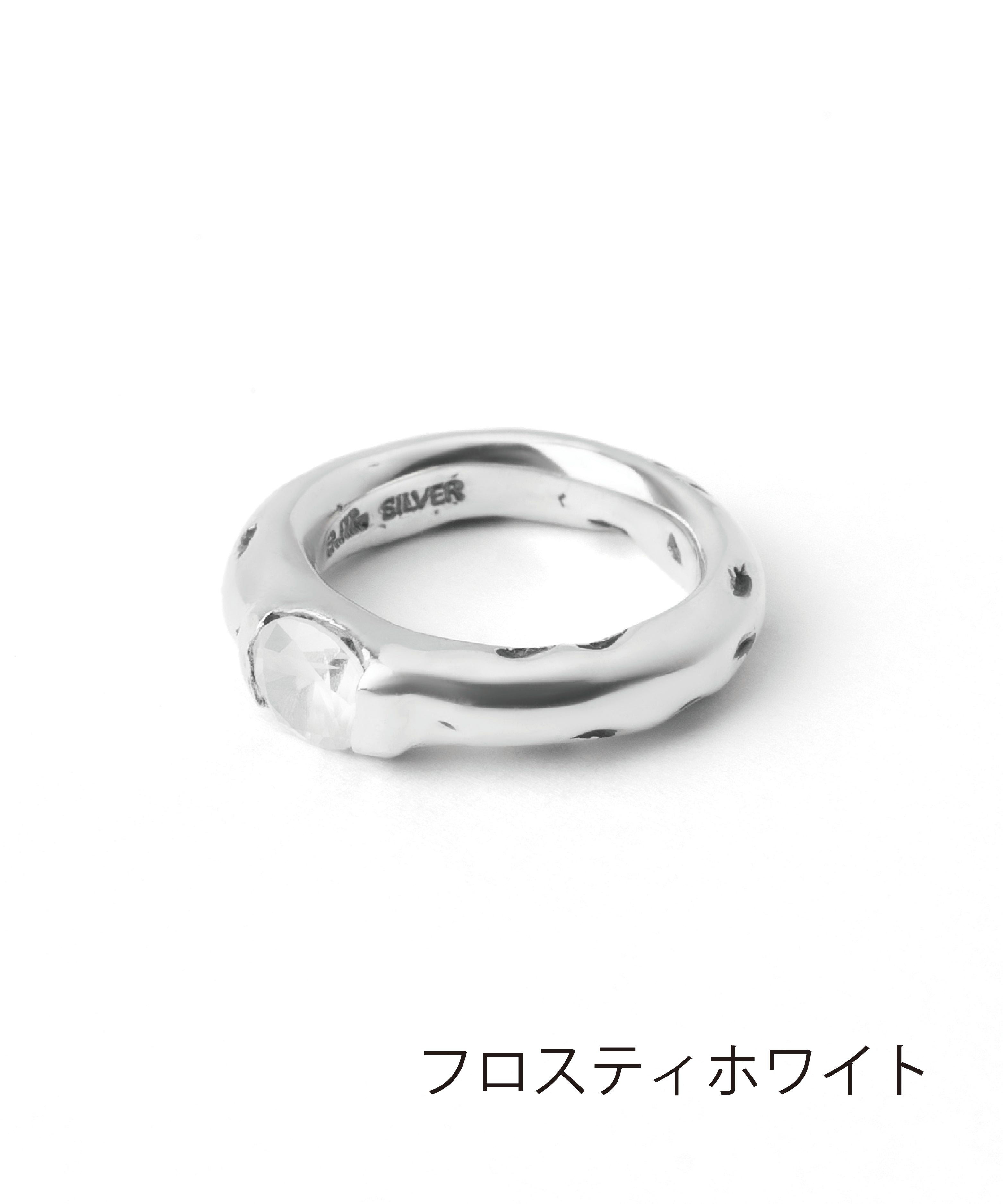 クリアのキュービックジルコニアの表面にテクスチャーをつけ、擦りガラスのようなマット加工を施しています。