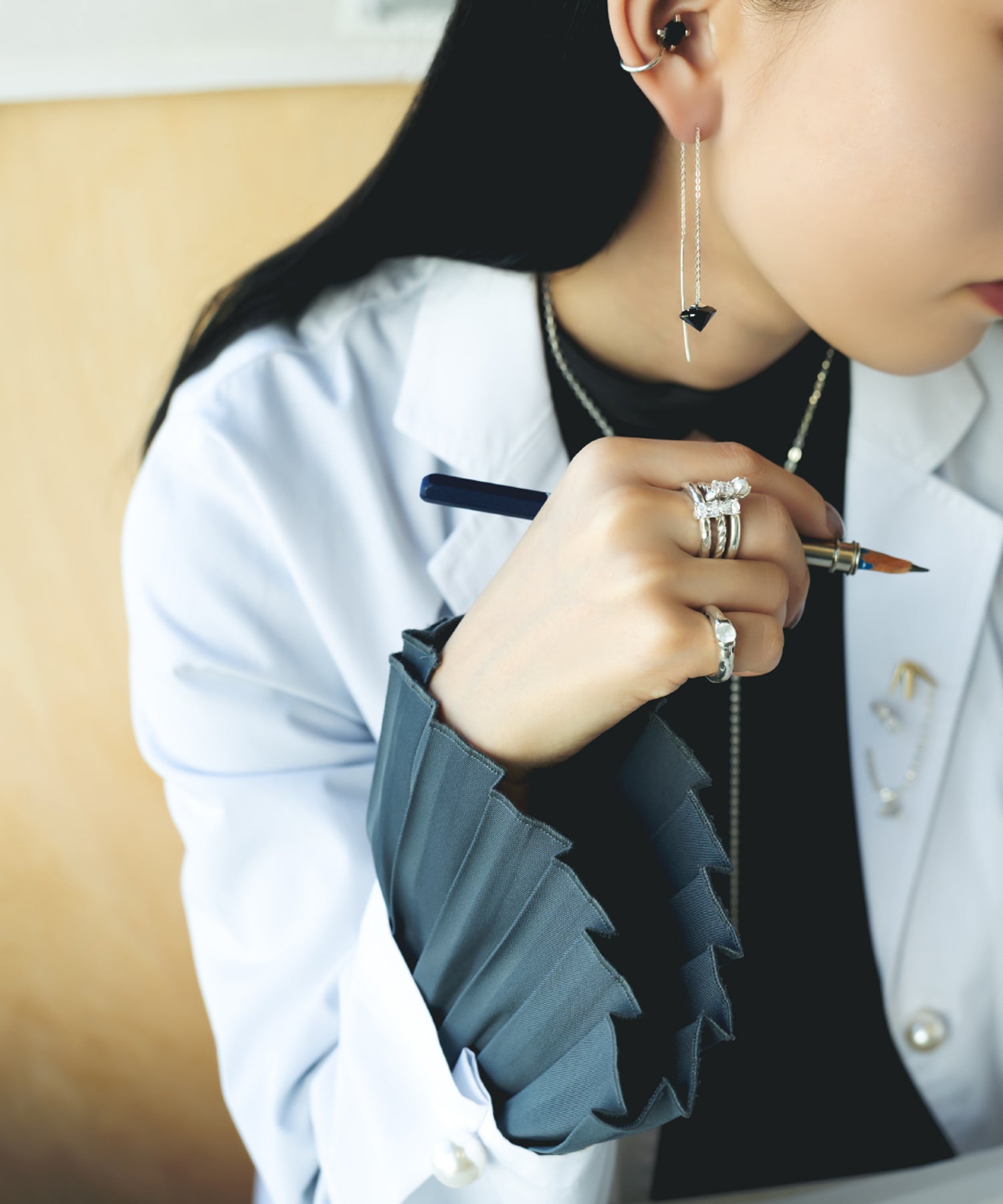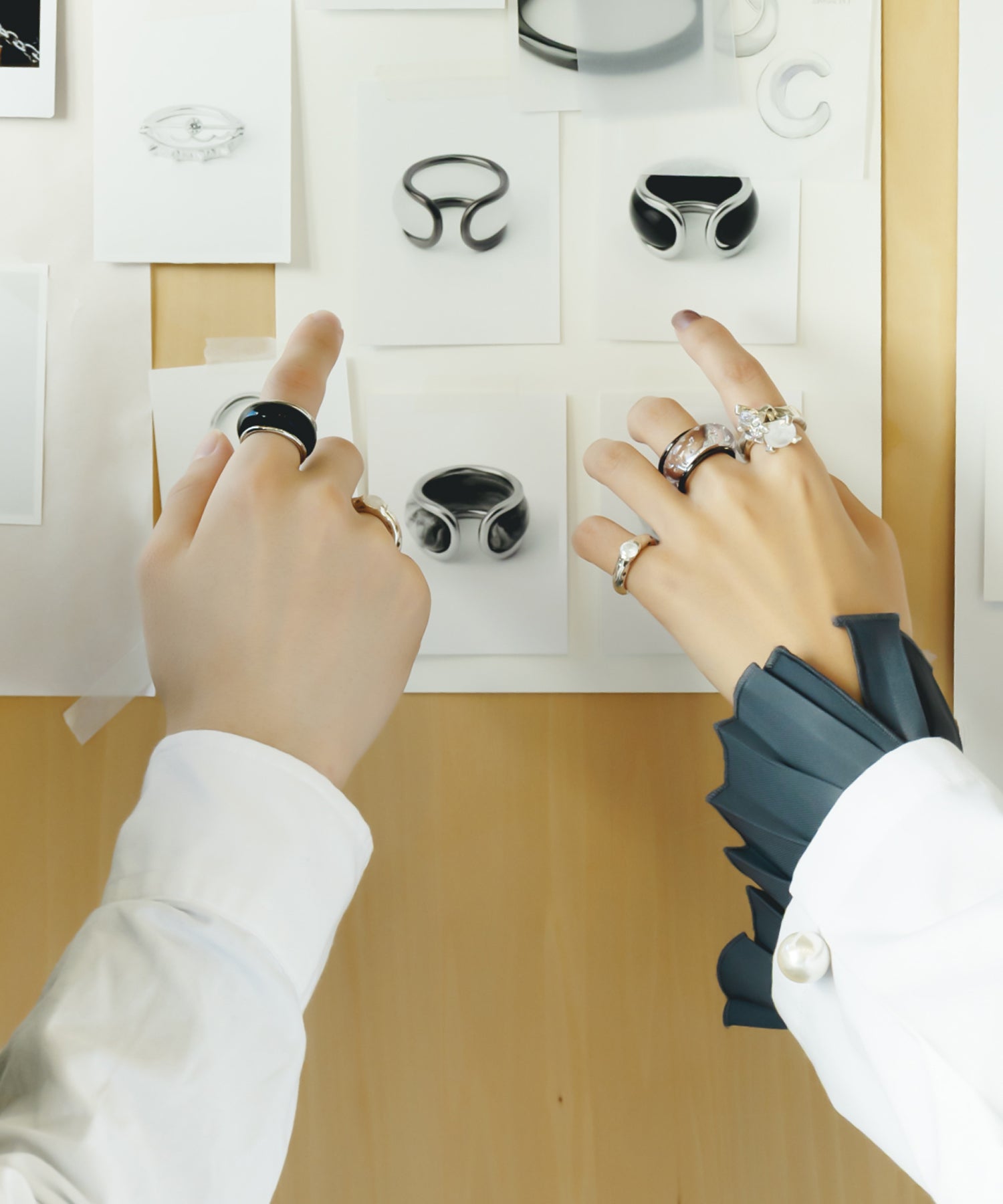 様々なピースを自分好みに組み合わせていくことで完成するジュエリー。