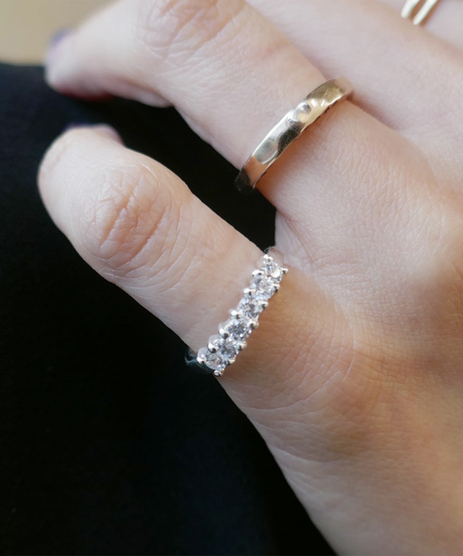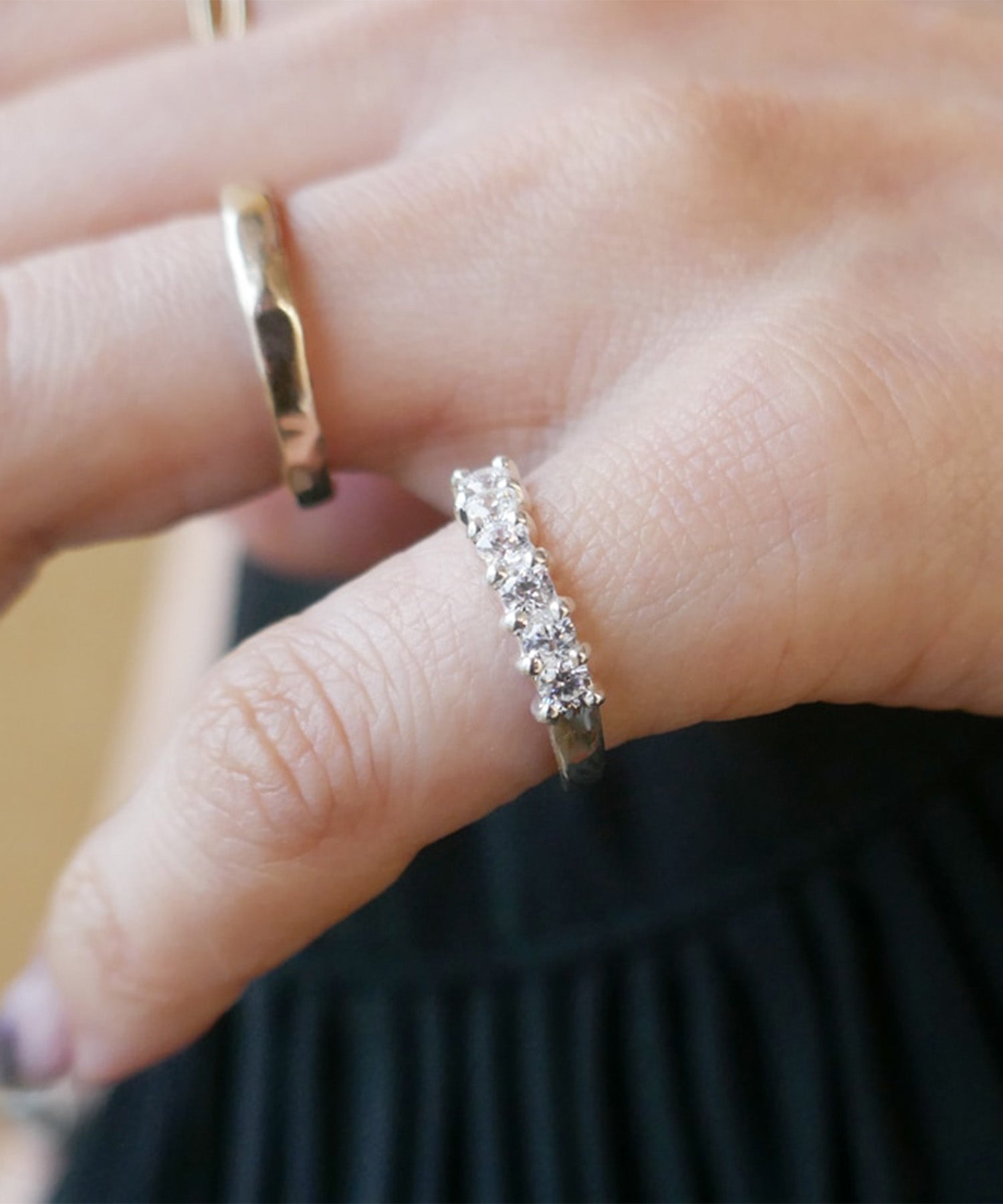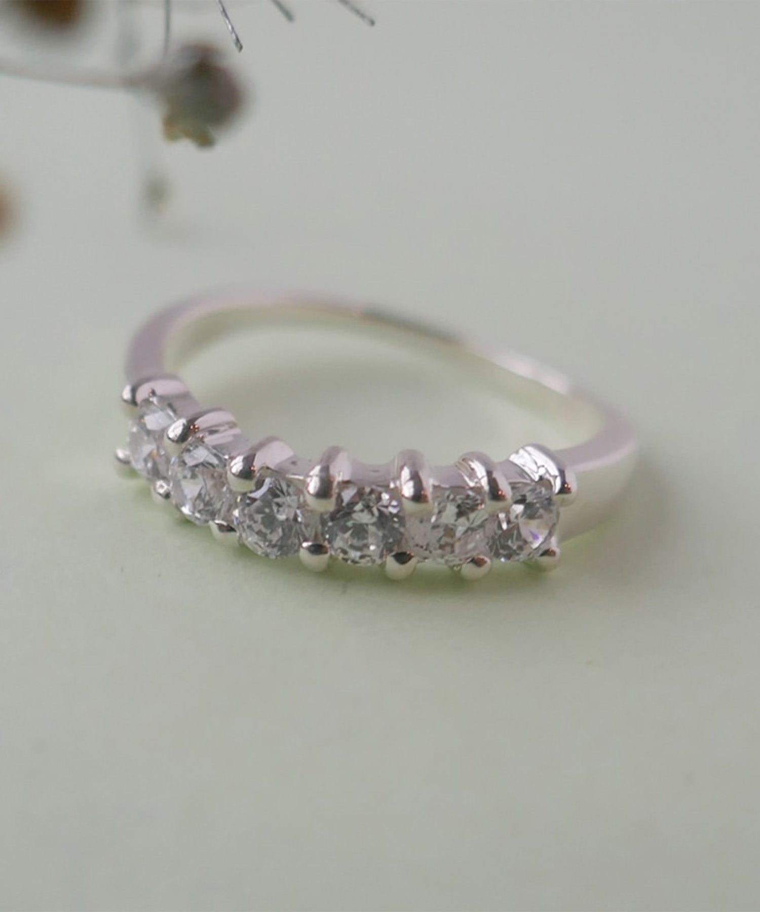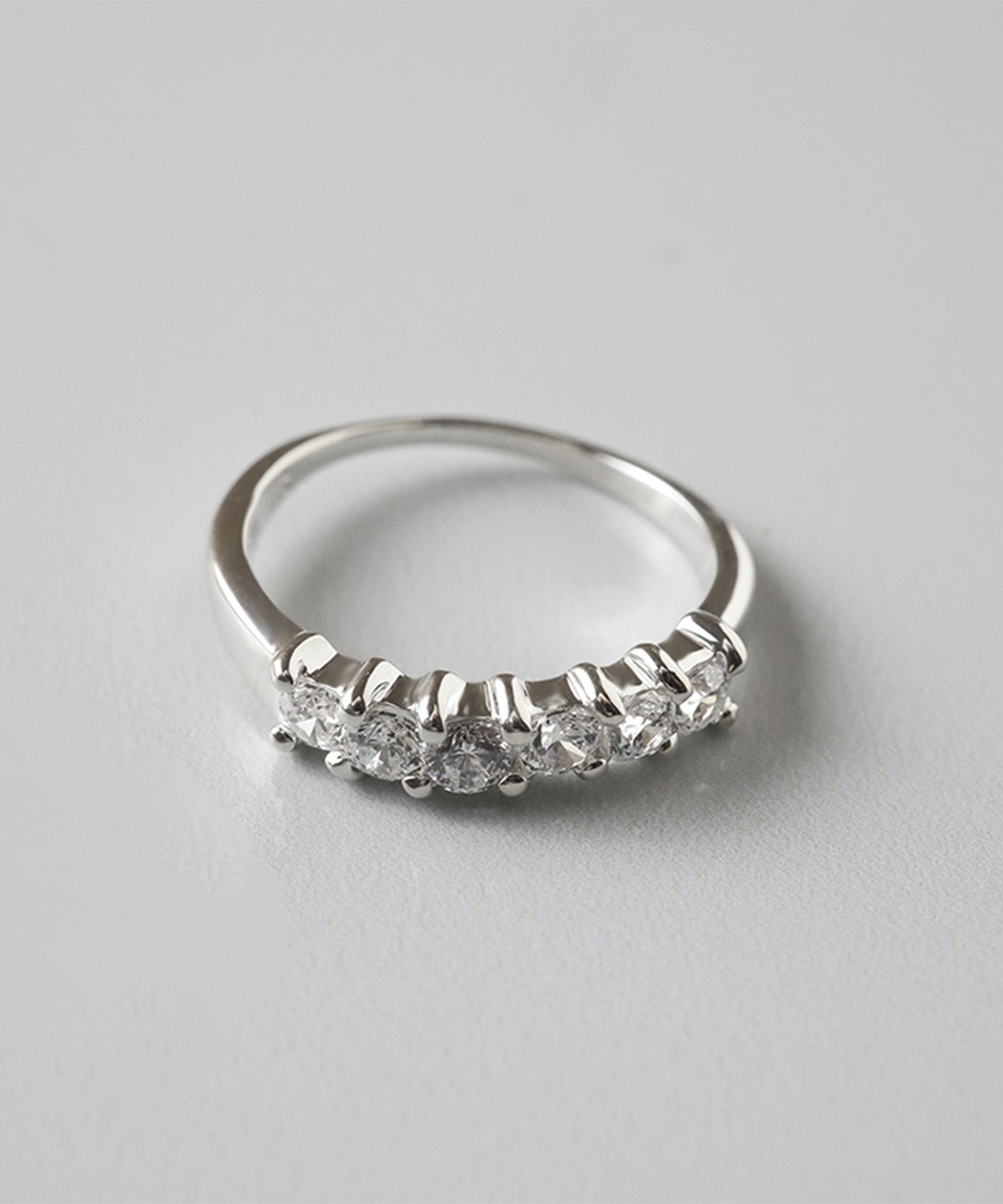 ジルコニアが一文字上並んだシルバーのピンキーリング。