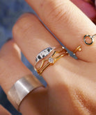 こちらのデザインは、トップの印台部分が横長で、全体的にボリュームを落としたスキニーなシルエットが特徴的。