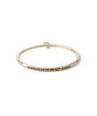 細身のアームに刻まれるメッセージがより引き立つよう、ヴィンテージのような柔らかい色合いのK9イエローゴールドでリングを仕立て、刻印には黒いインクを流し込み輪郭を強調させています。