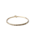細身のアームに刻まれるメッセージがより引き立つよう、ヴィンテージのような柔らかい色合いのK9イエローゴールドでリングを仕立て、刻印には黒いインクを流し込み輪郭を強調させています。