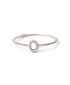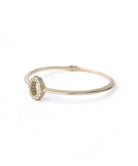 オーバル型フレームにφ1.0㎜の小さなメレダイヤモンドを全周にセッティングし、トップ部分が引き立つようエッジを立て、線を細く見せたアーム。