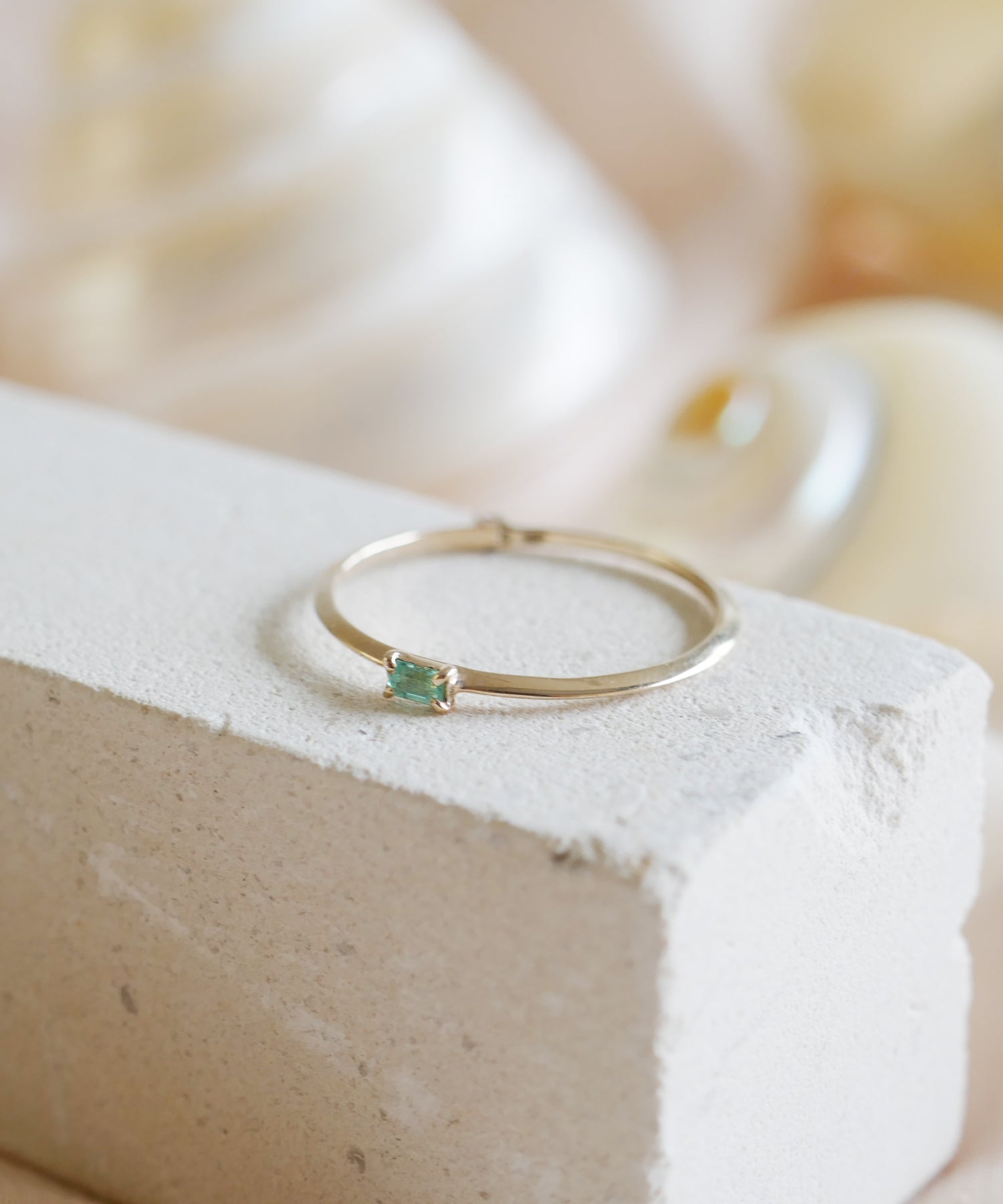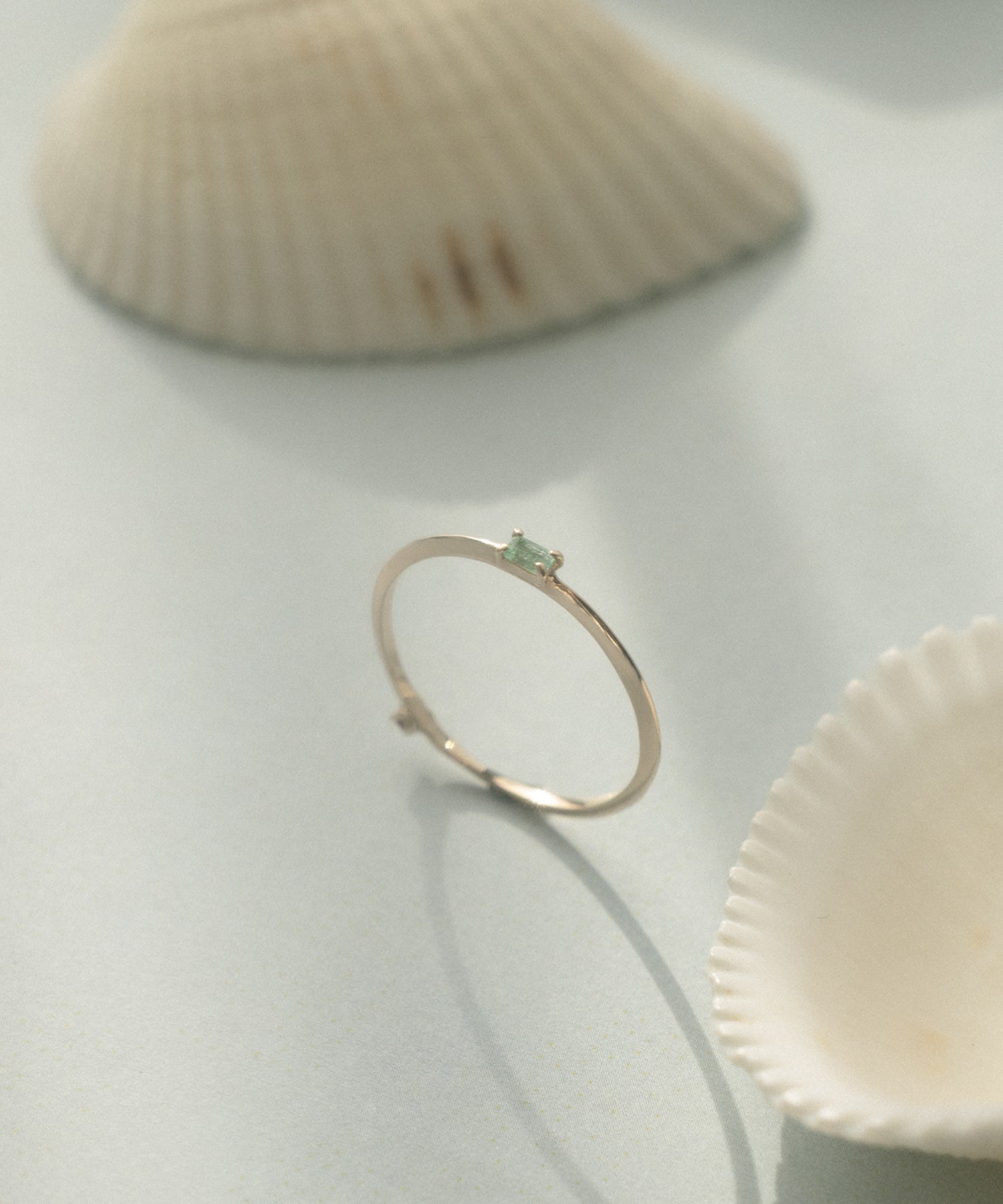 華やかな気品を持つエメラルドですが、アームと一体化することで繊細で愛らしい雰囲気に。