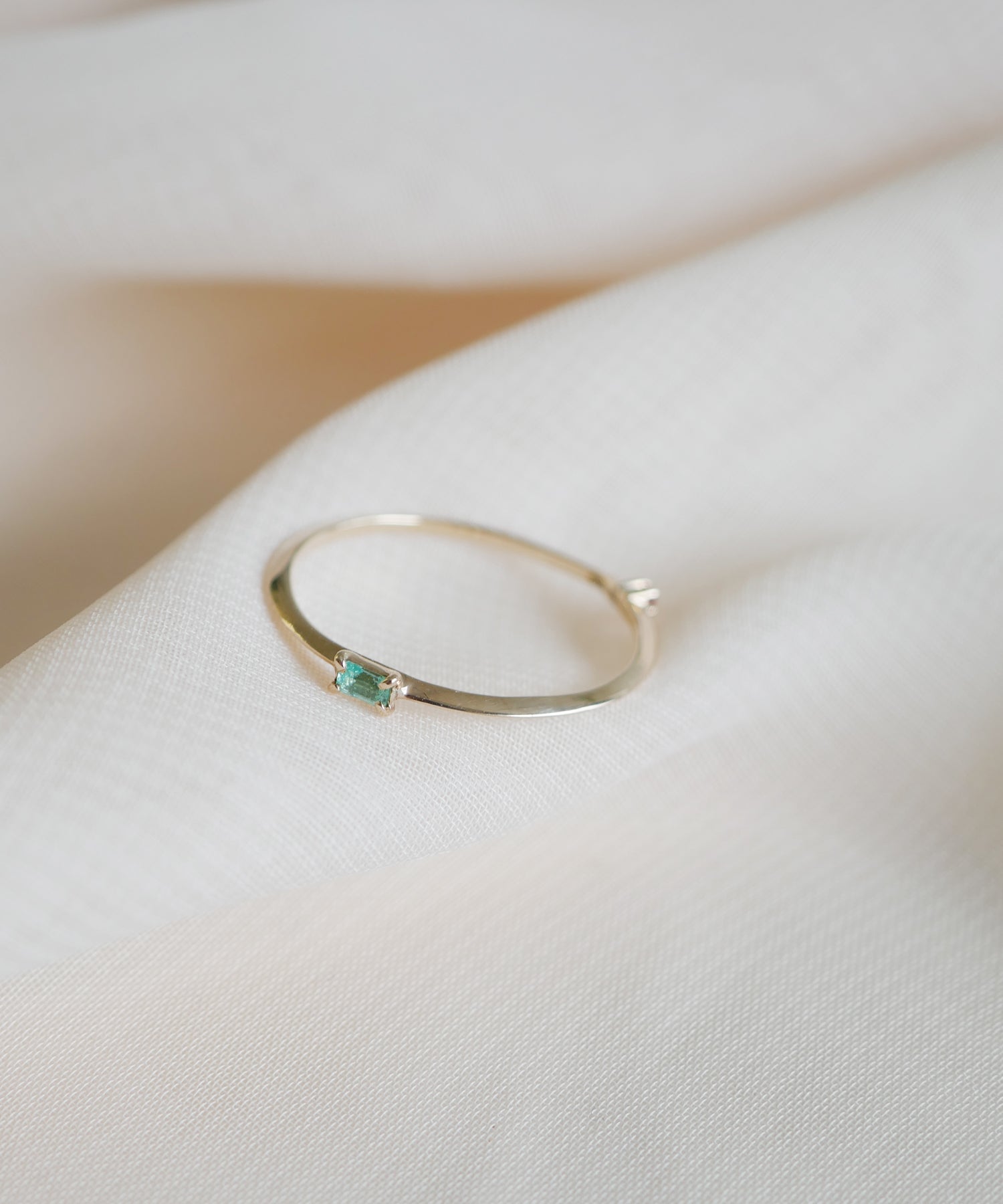 バケットカットのエメラルドを、アームから続くように横向きでセッティングしました。