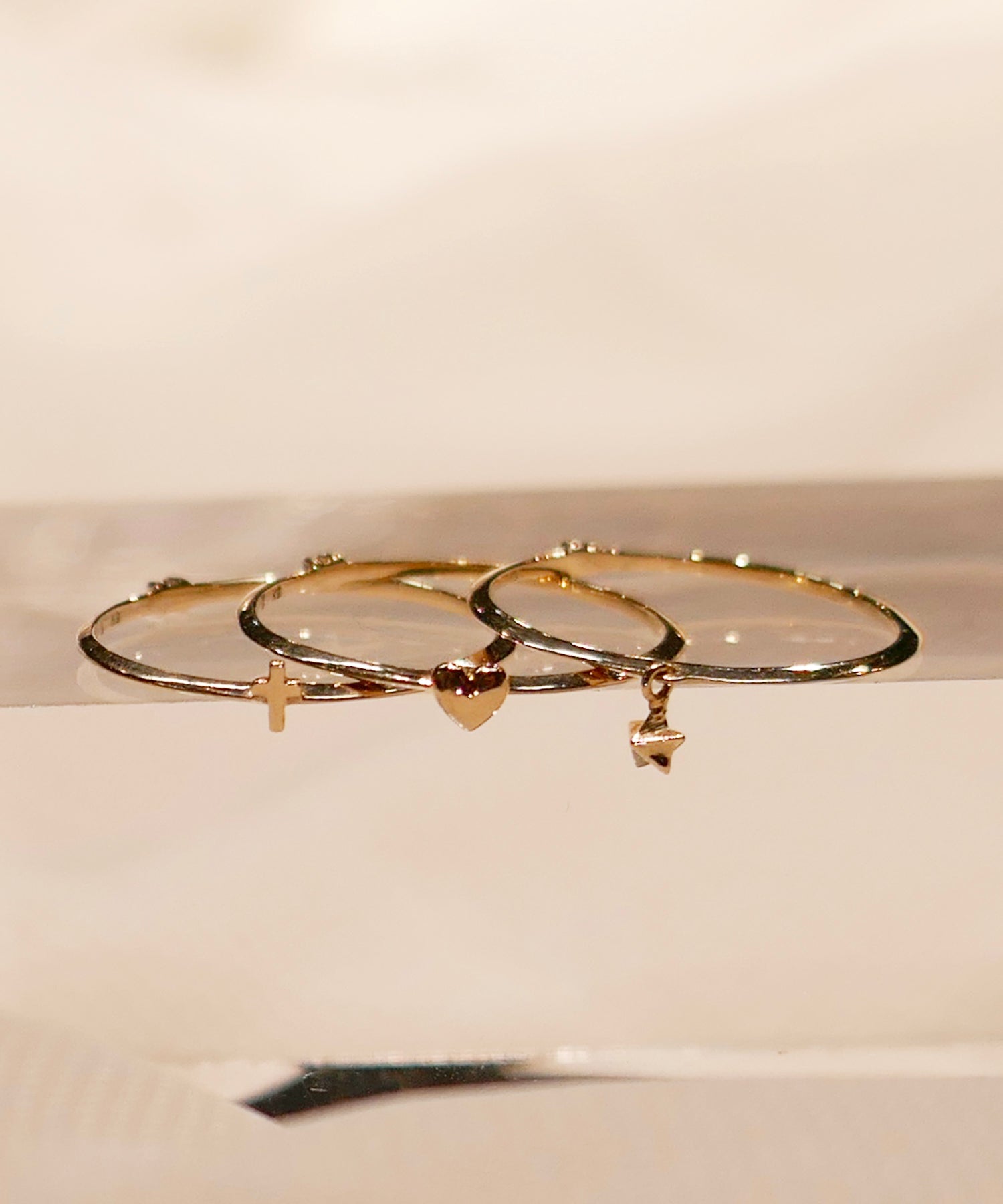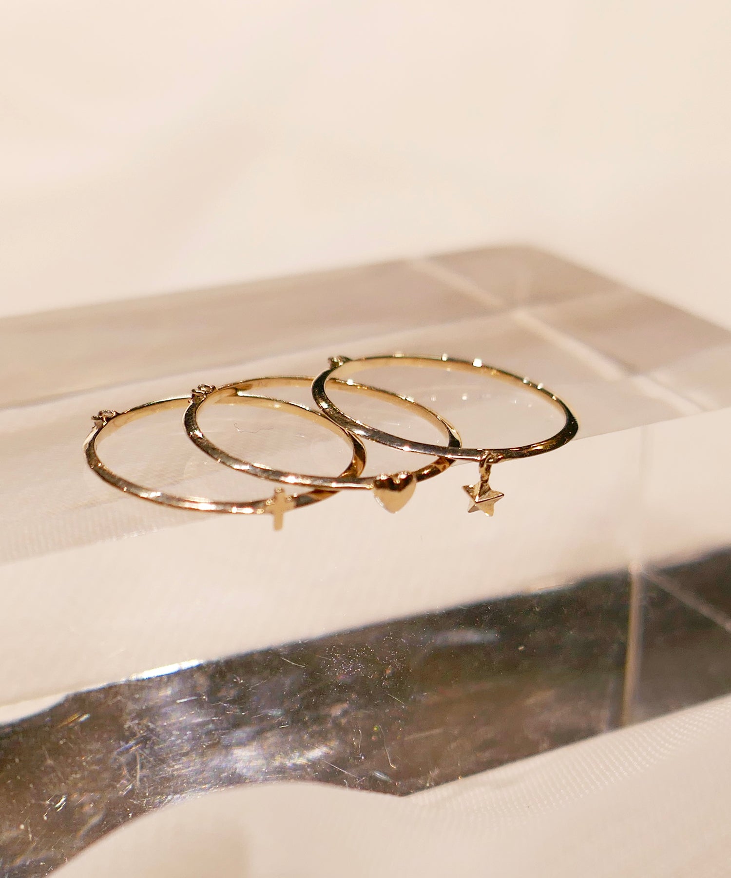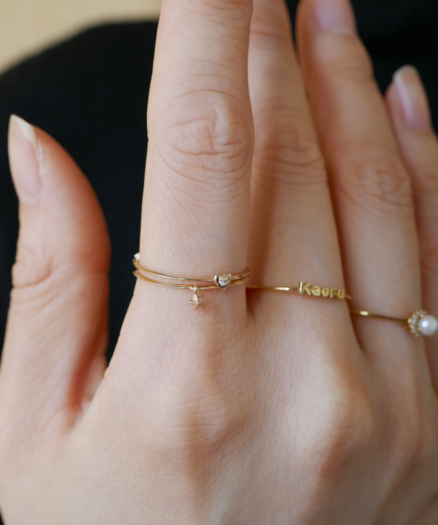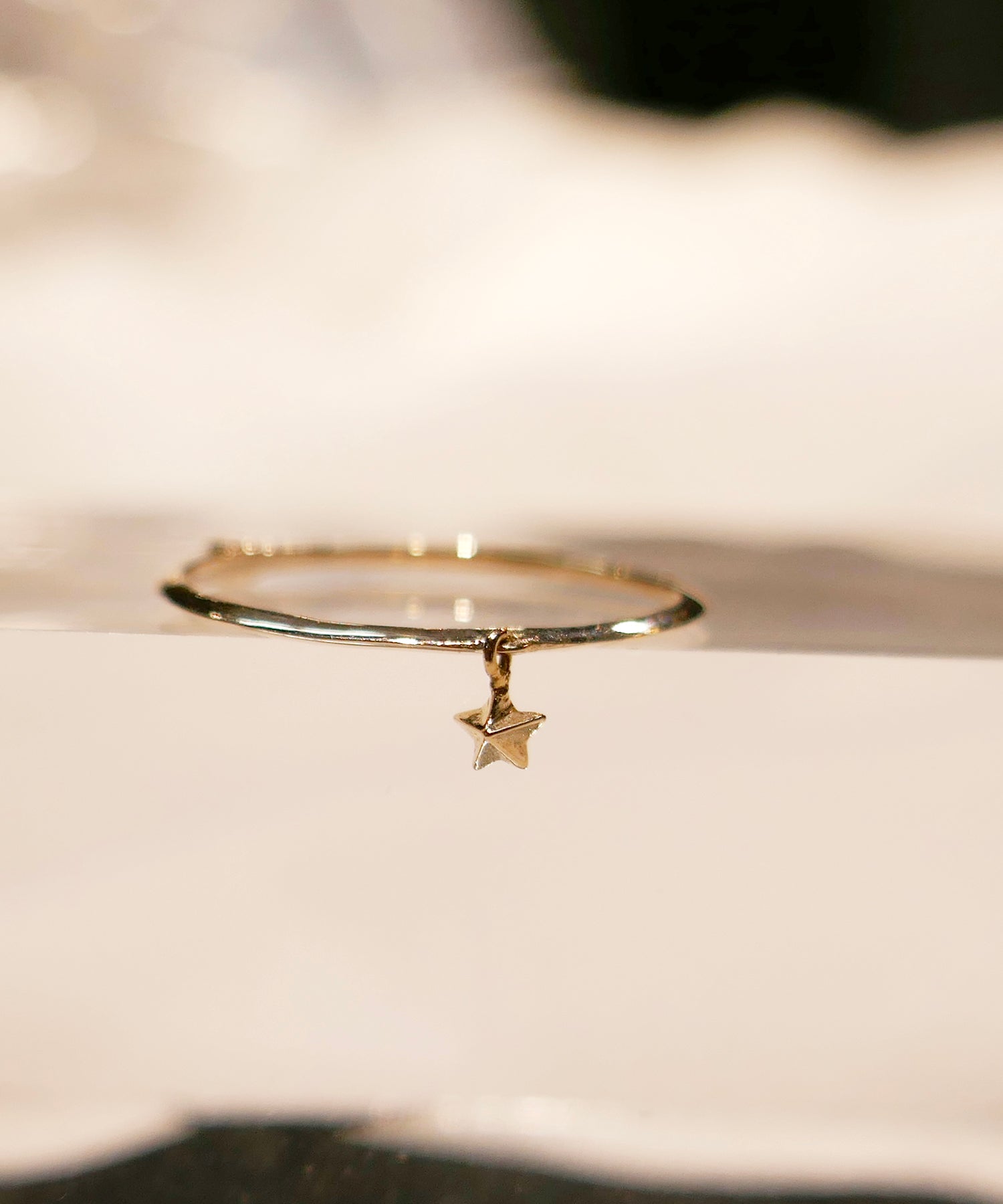 繊細なアームに、小さなスターモチーフをあしらったK9ゴールドのリング。