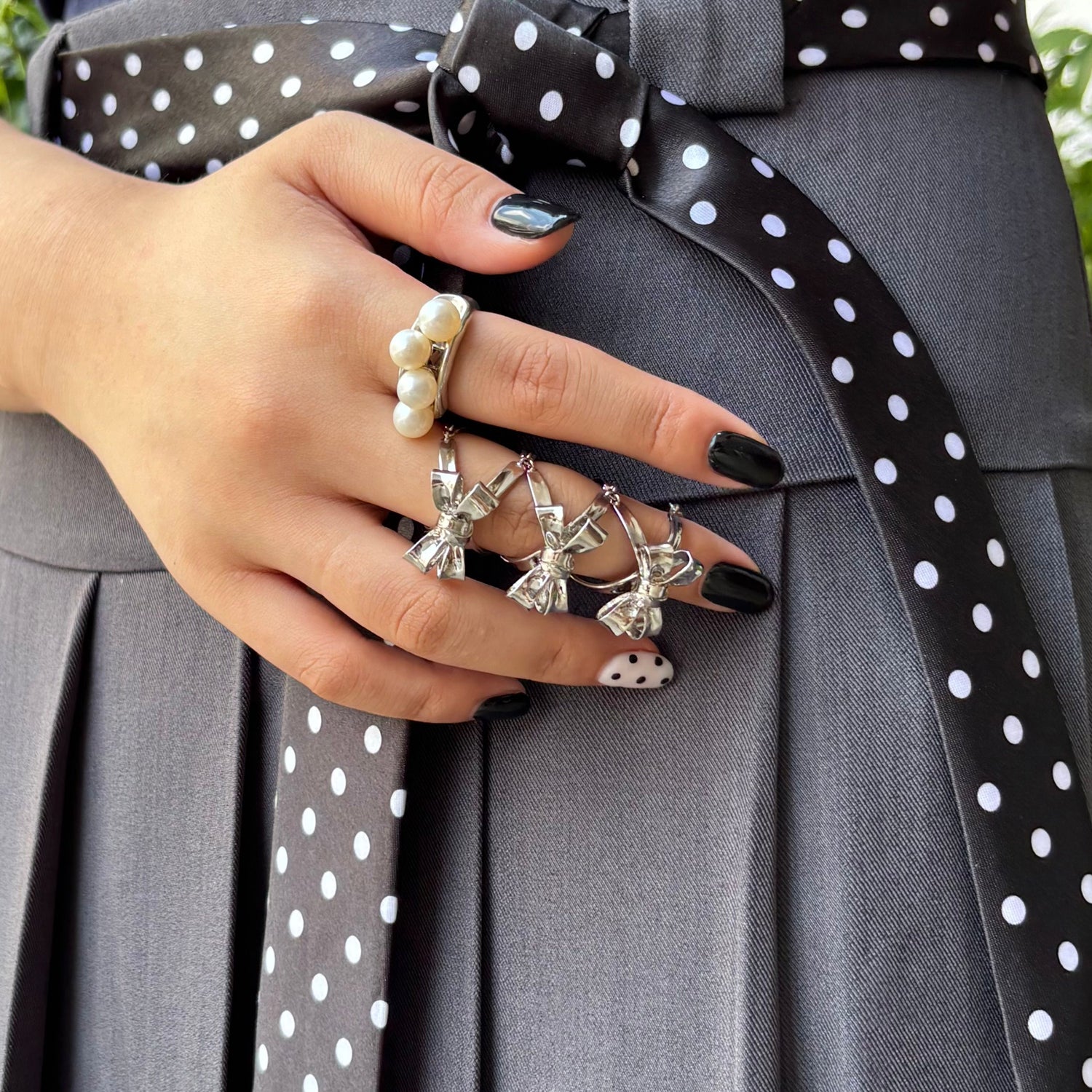 ファッショントレンドでもまだまだ人気のリボンモチーフは、e.m.でも数多くのデザインをお取り扱いしております。