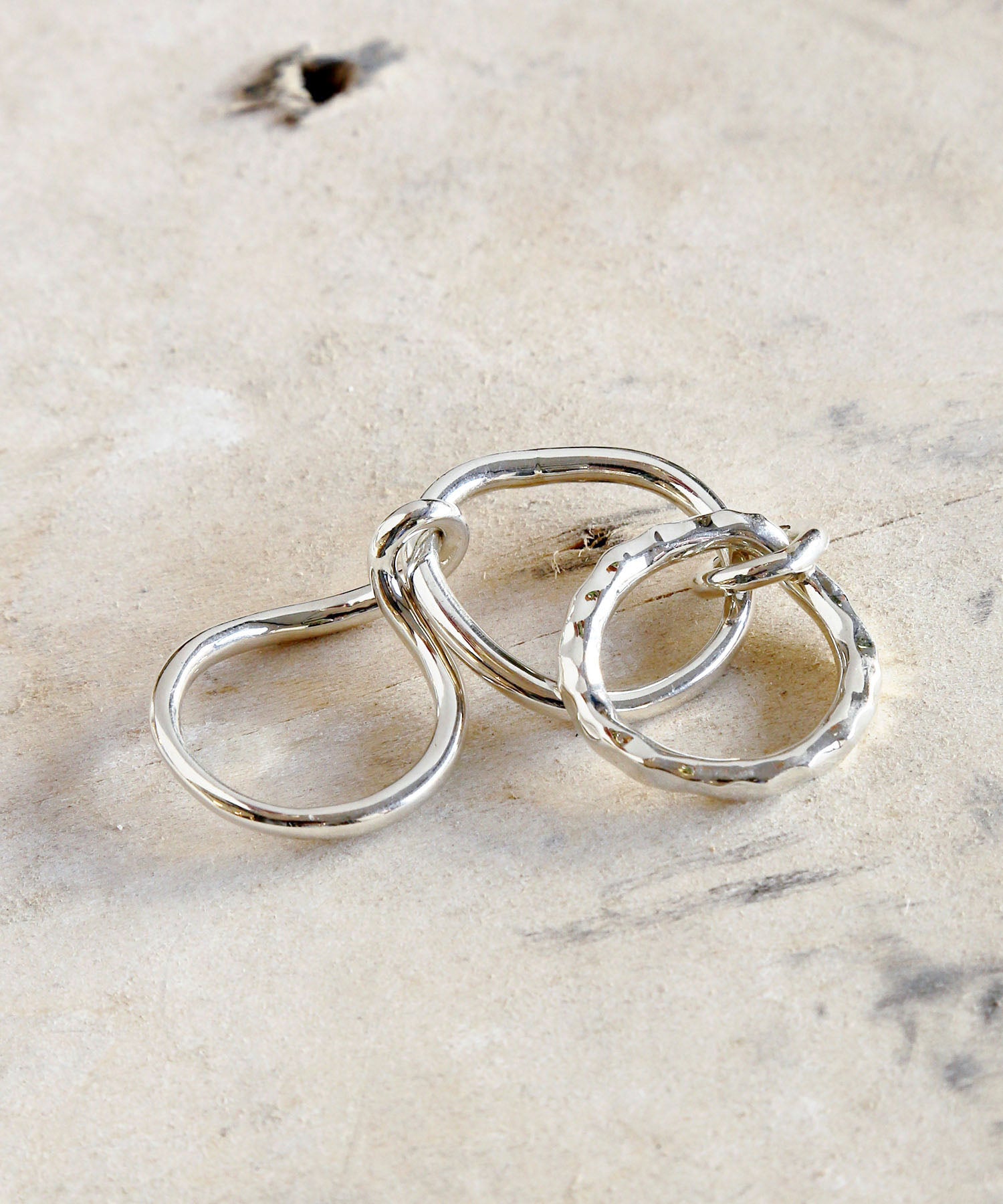 立体的でボリュームのあるリングはコーディネートの主役に。