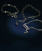 ごつごつしたシルバーの留め具が特徴的なチェーンブレスは