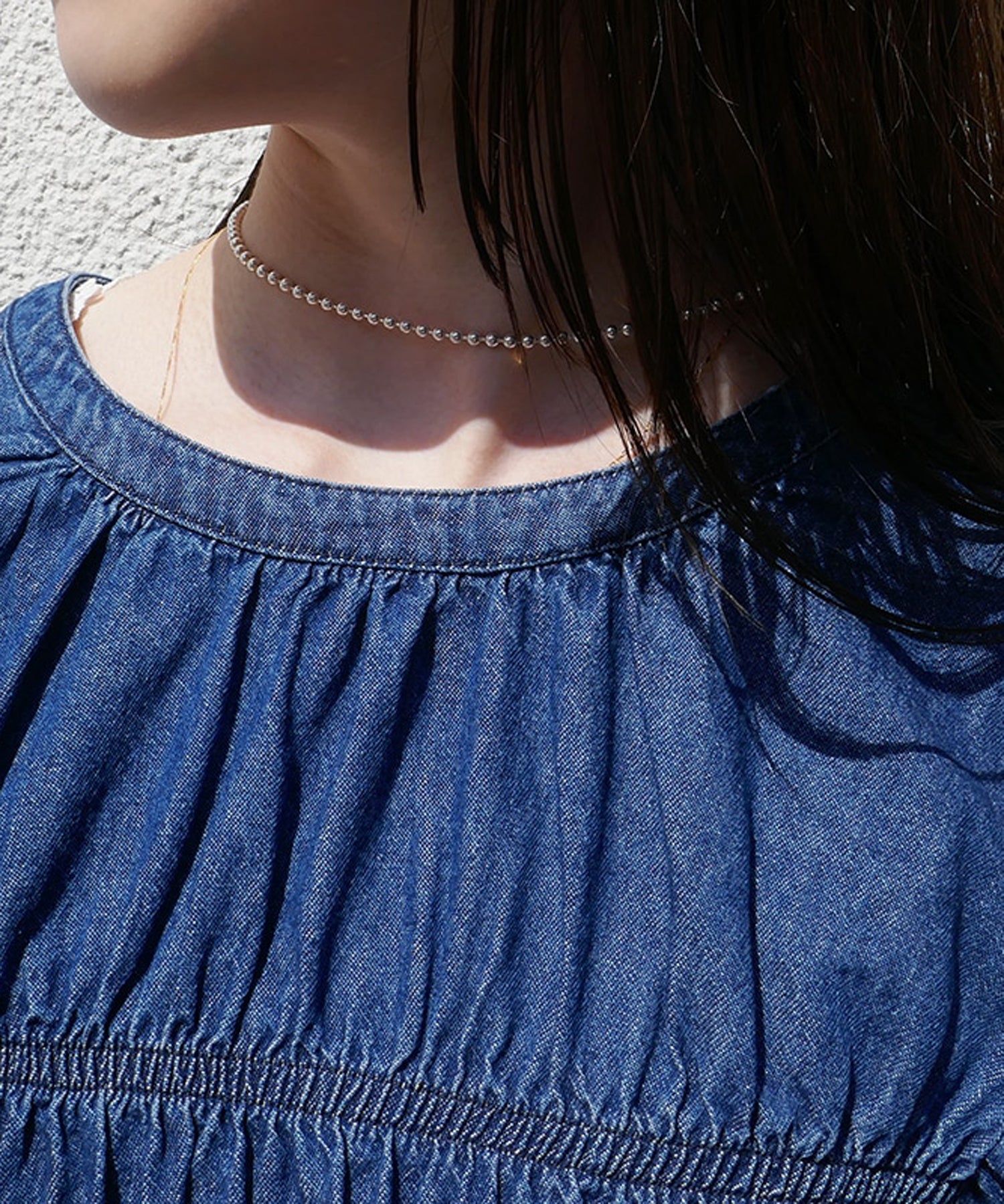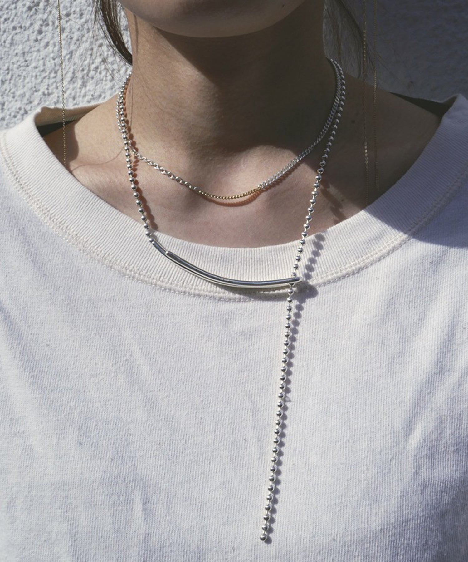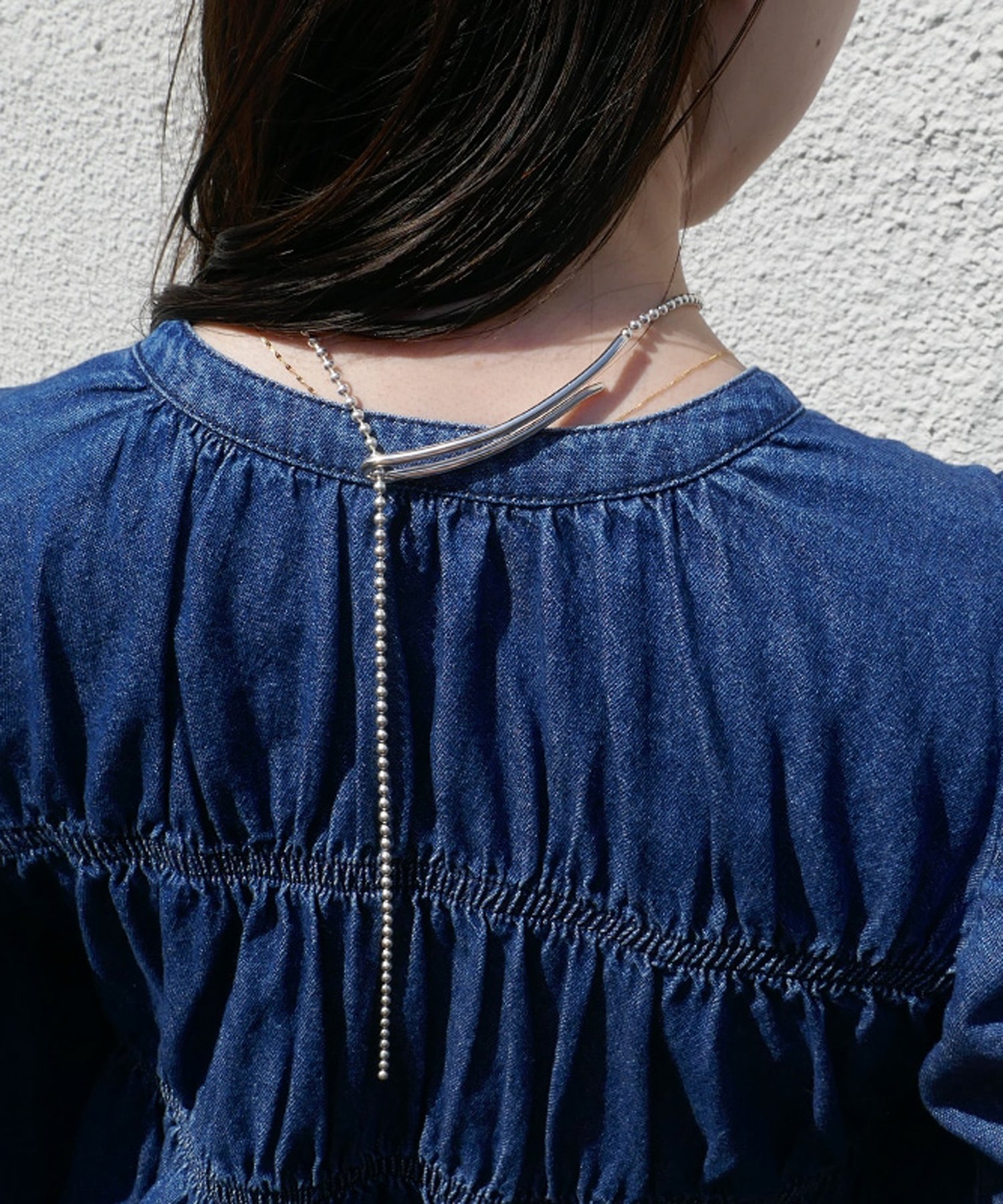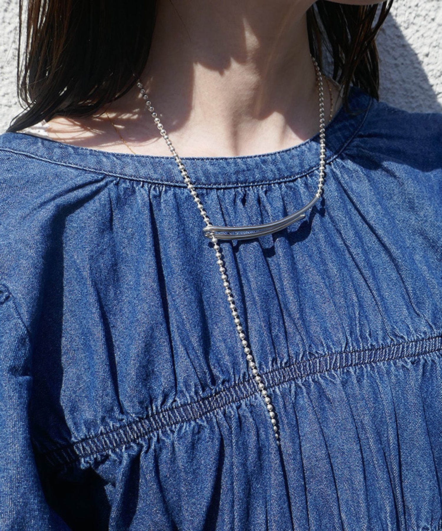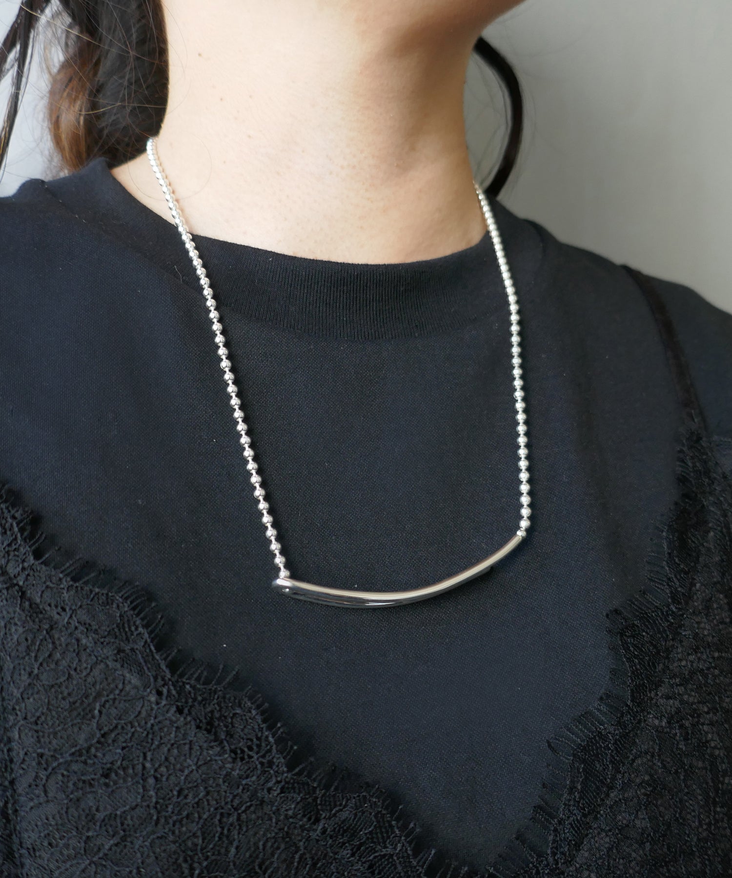 ワードローブにすっと溶け込みやすいシンプルにそぎ落とされたネックレス。
