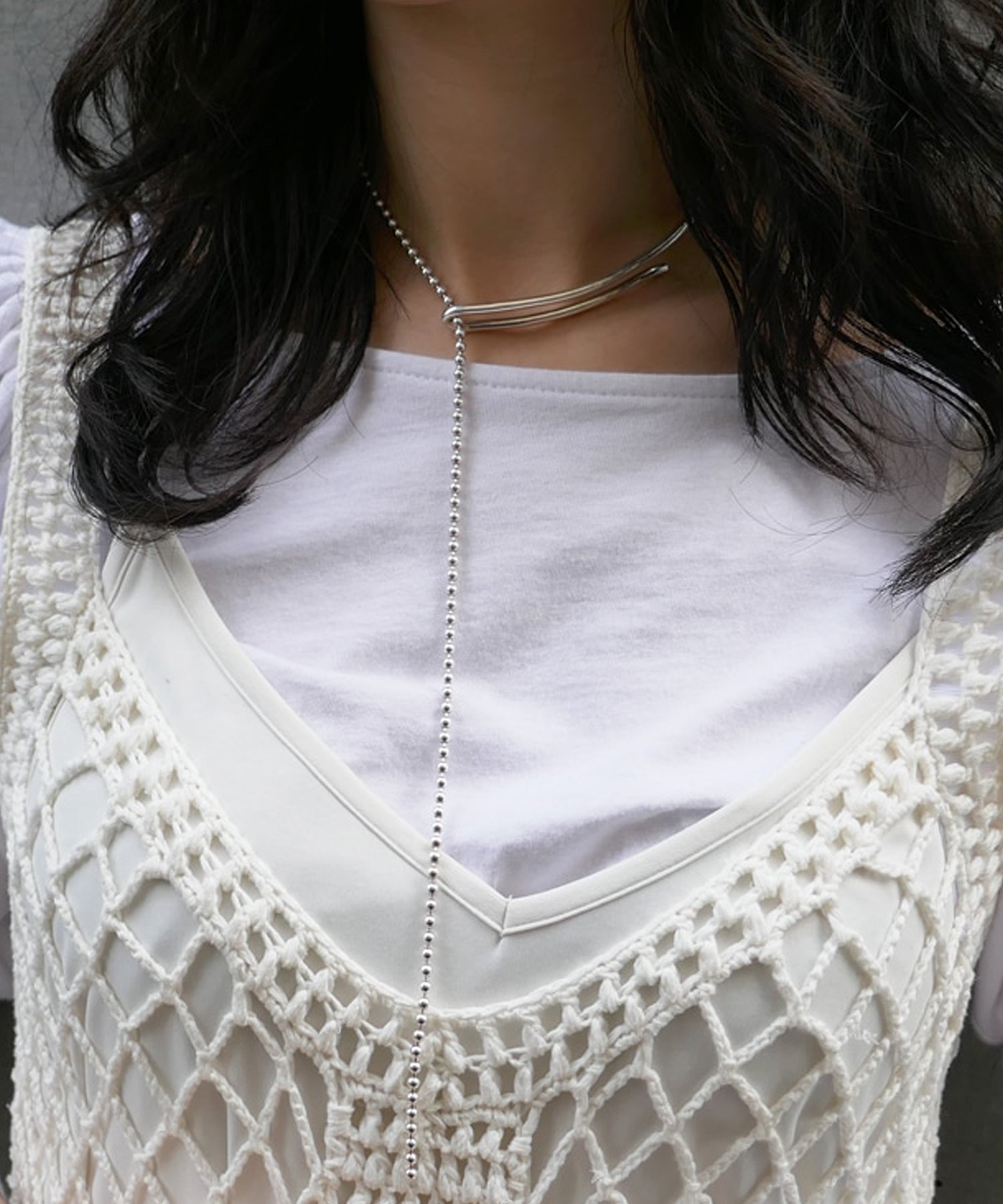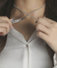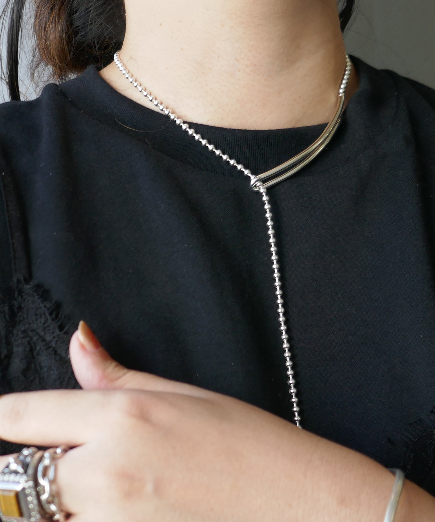 長さの調節が出来、前後で着け方を変化させるなど可変性のあるネックレスは
