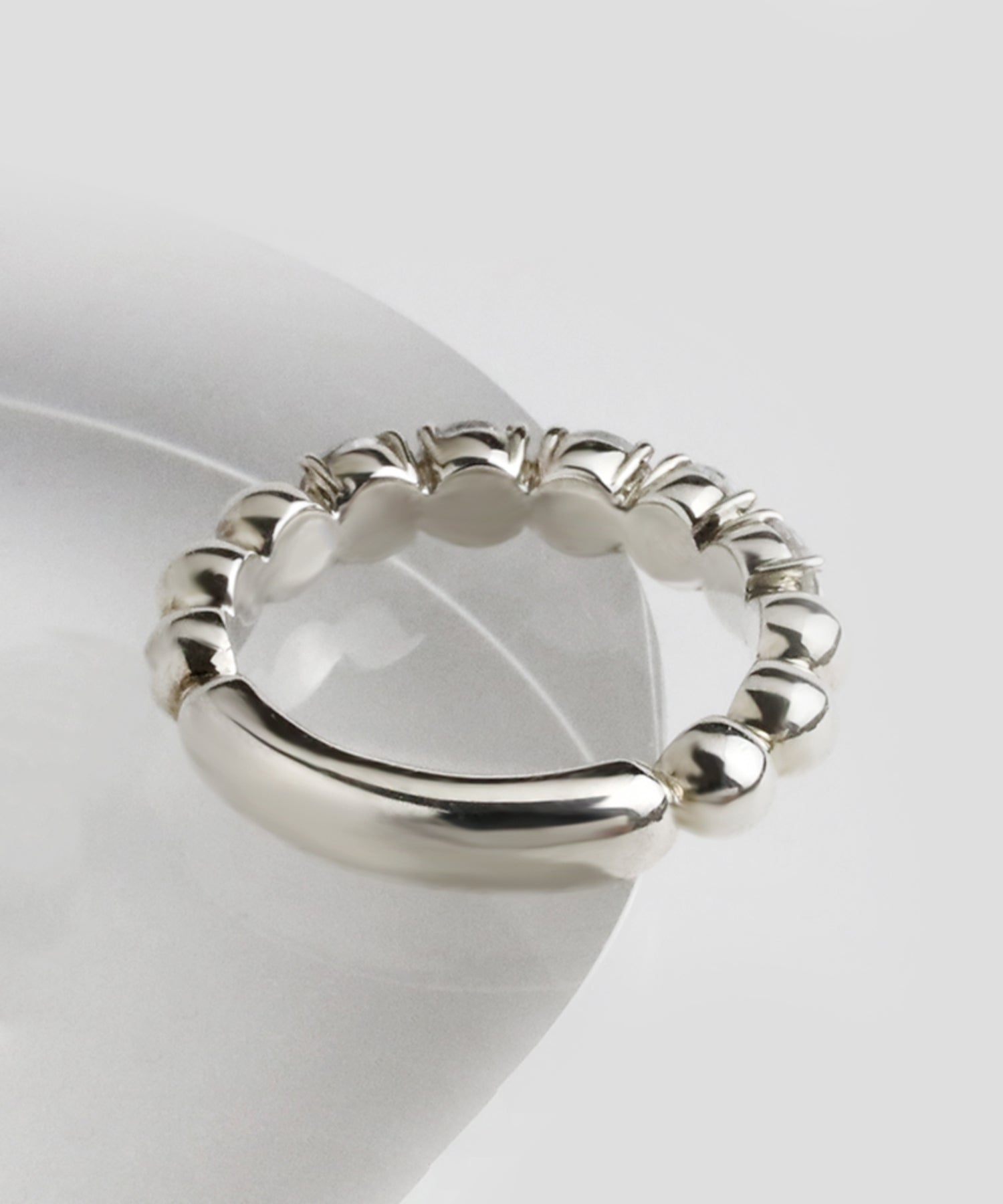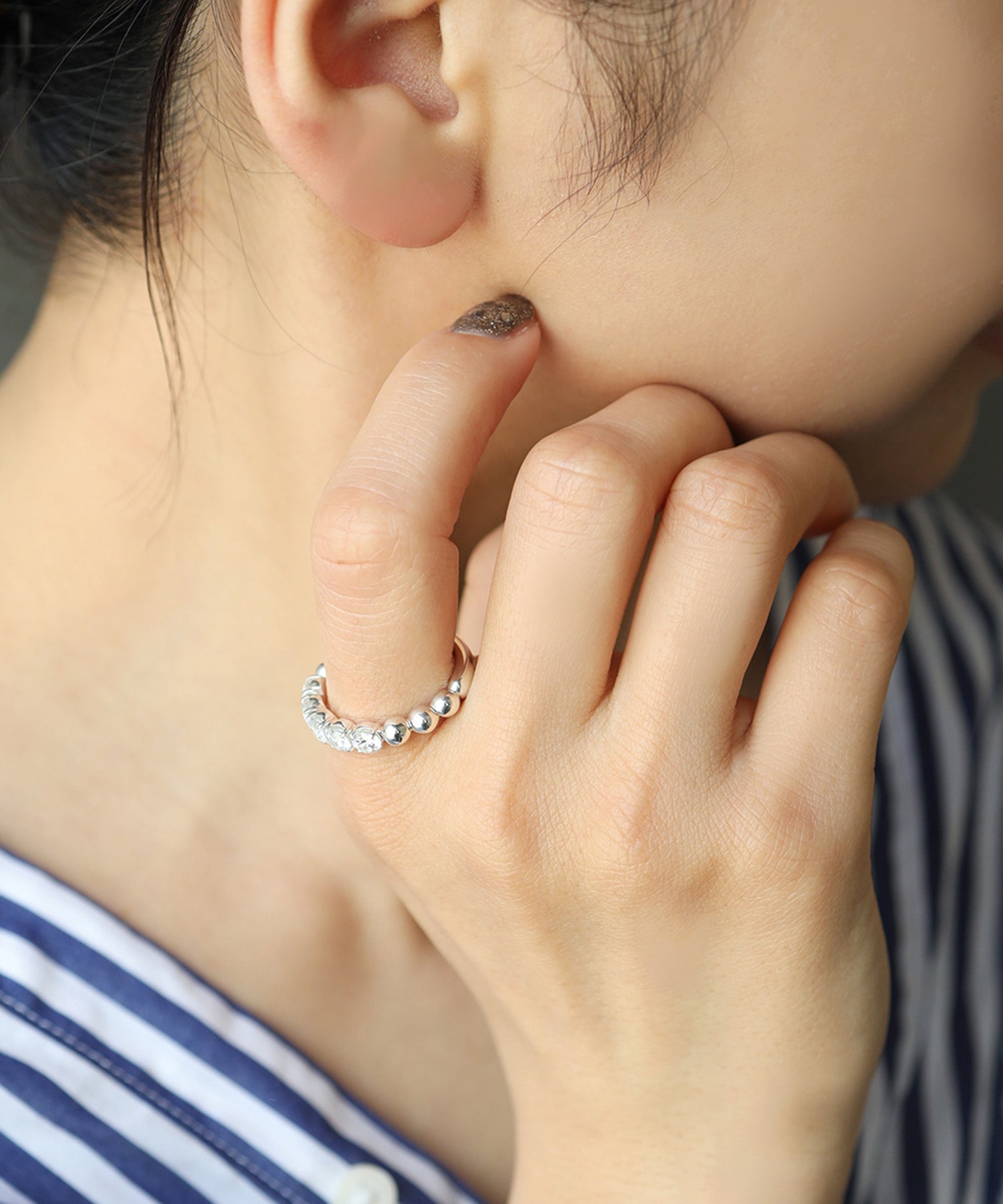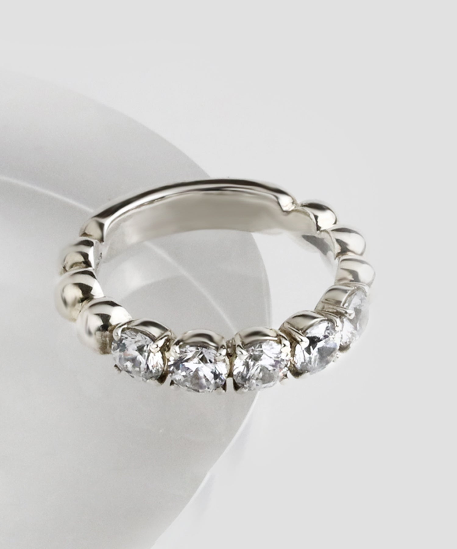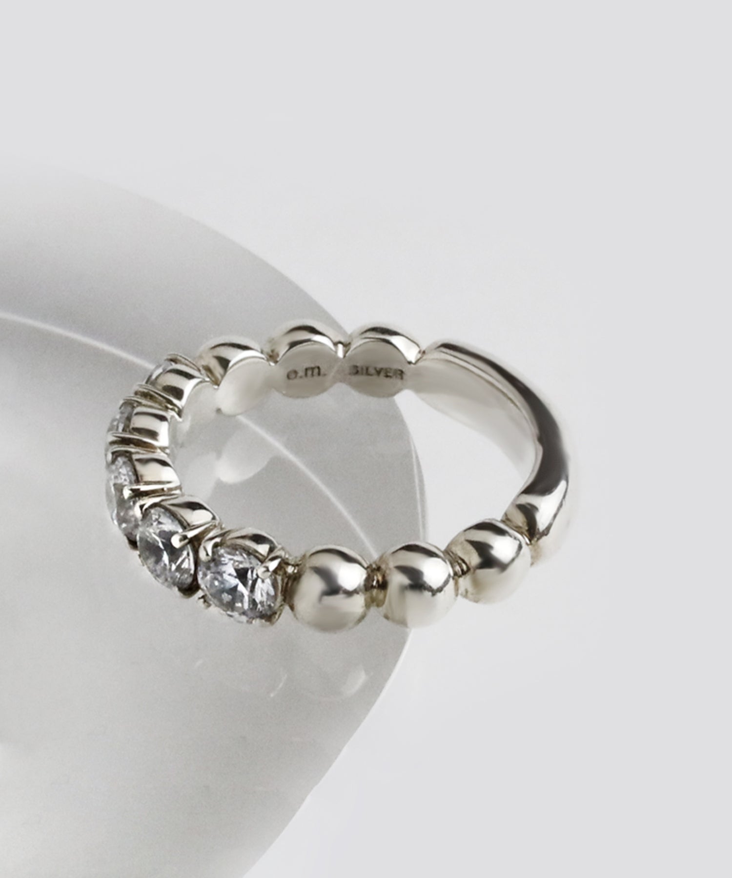 センターに5石のキュービックジルコニアをセッティングし、サイドにボールを連ねたシルバーリング。