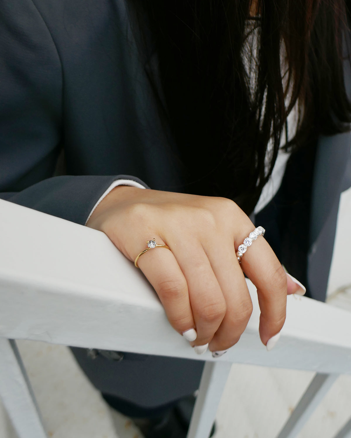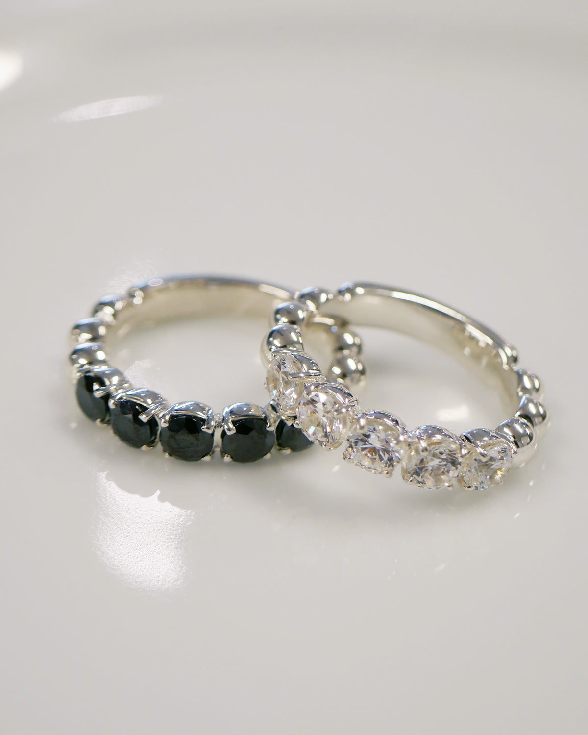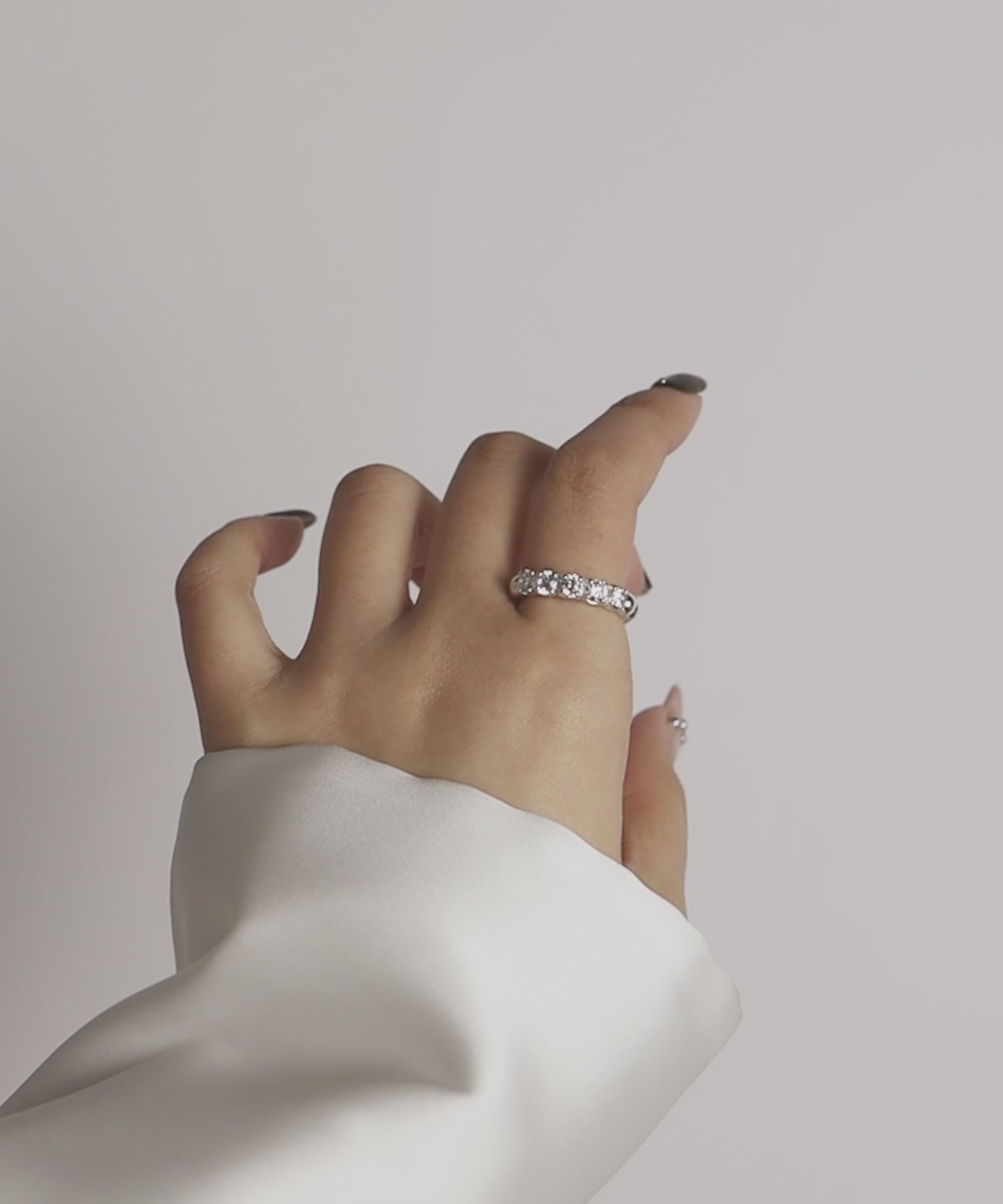 キュービックジルコニアの美しい煌めきとシルバーのカジュアルなメタル感、双方の特徴を引き上げるバランスの良いデザインです。