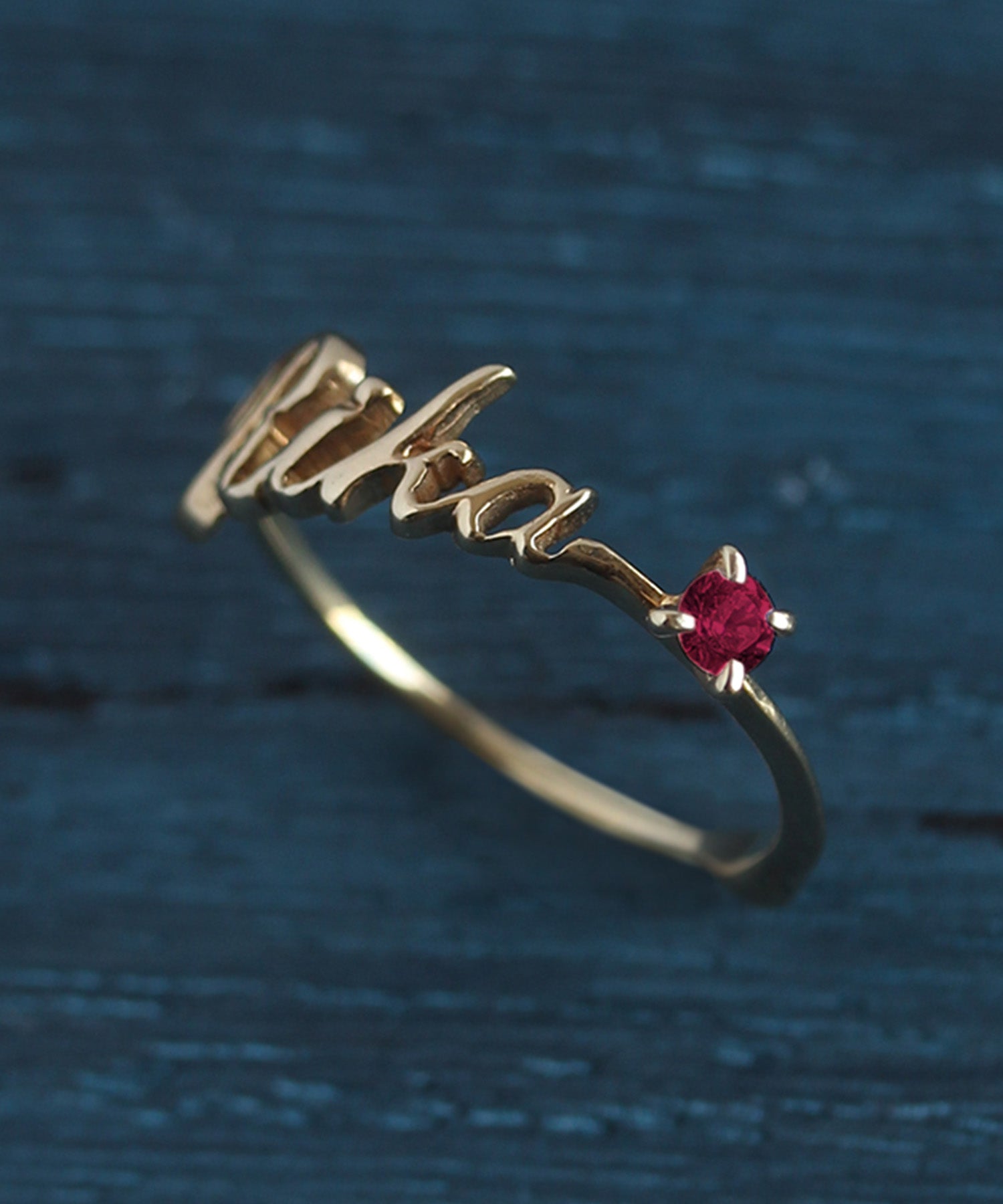 アルファベットの最後に「幸せを運ぶ」と伝わる宝石のルビーをセッティングいたします。