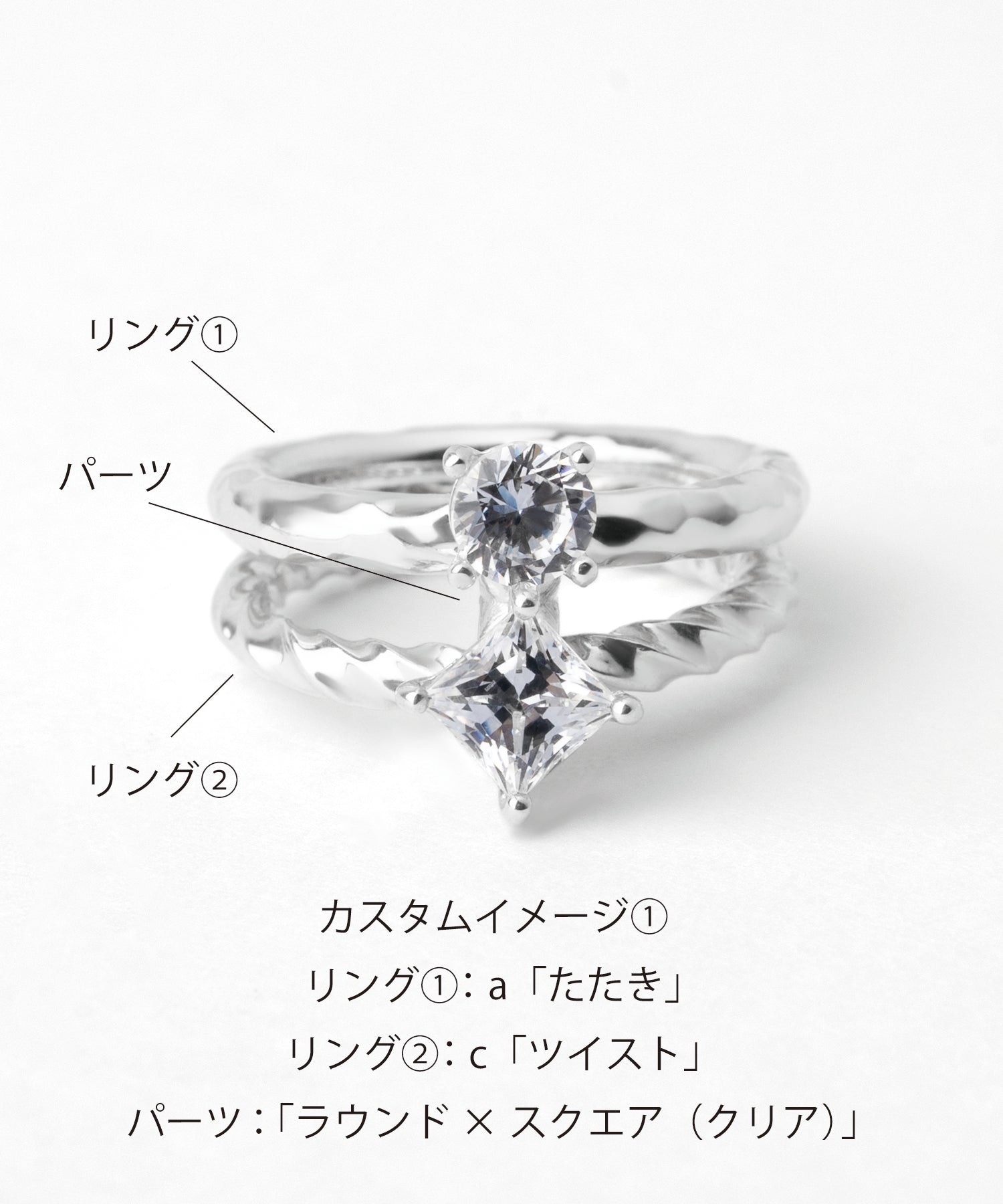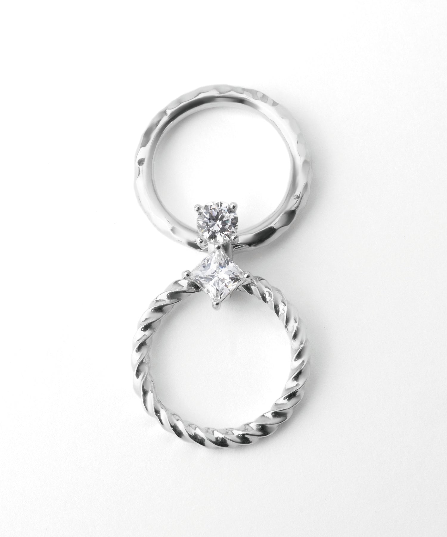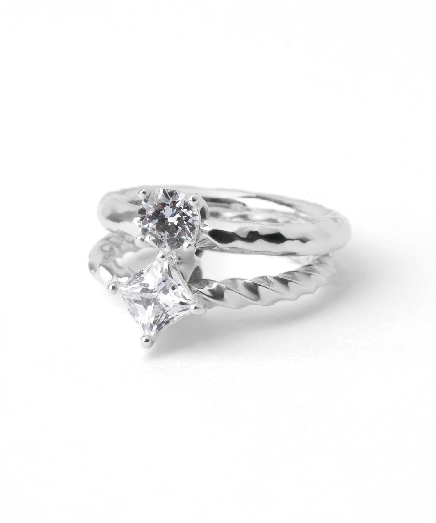 ラウンドとスクエア、異なる印象のキュービックジルコニアの組み合わせ。
