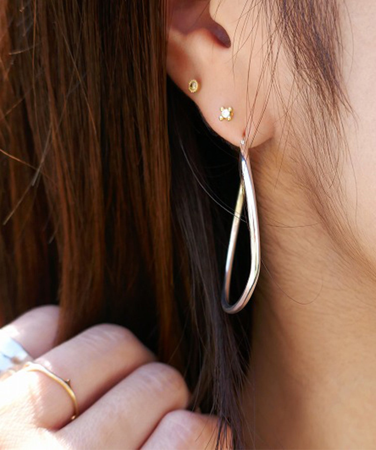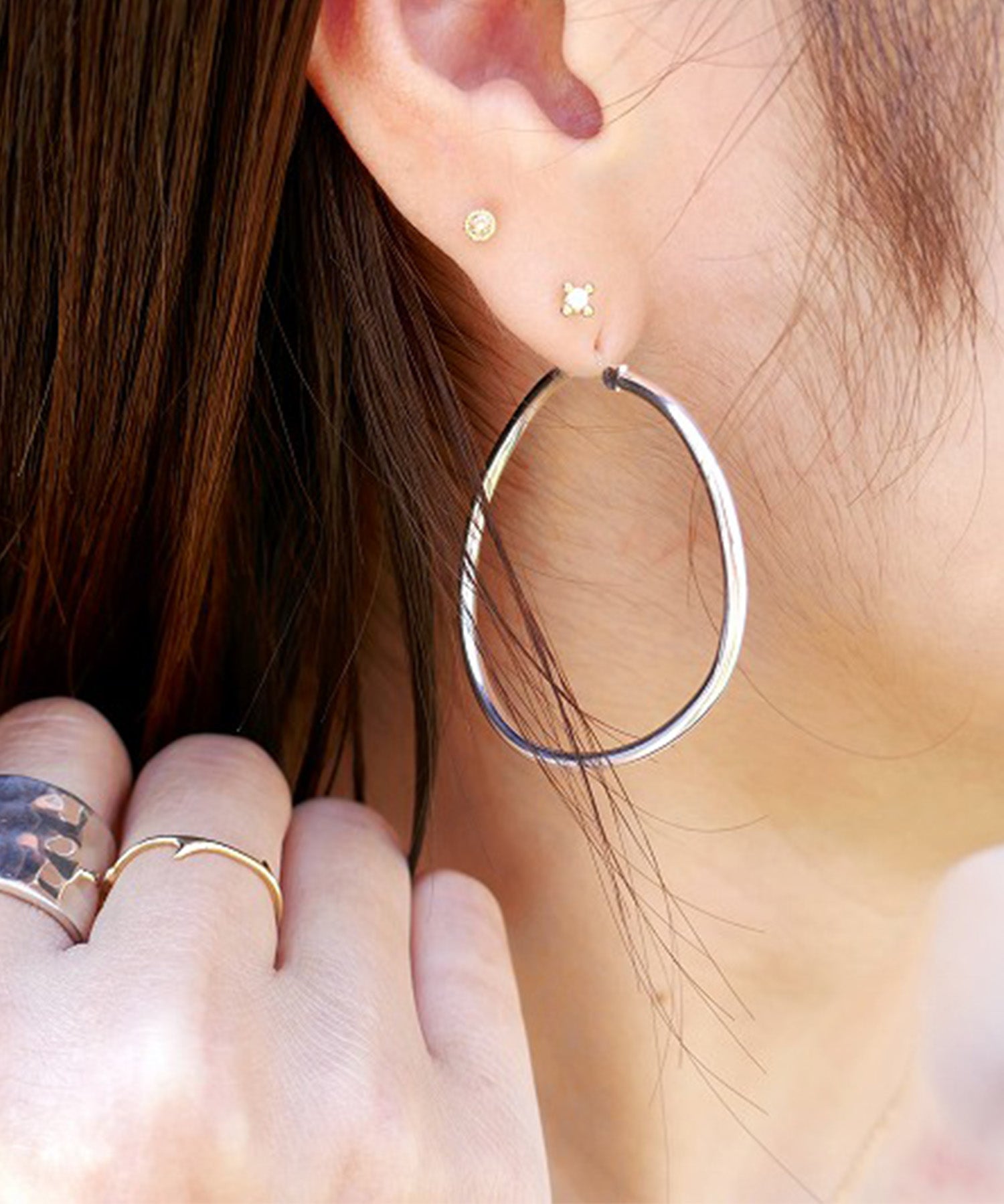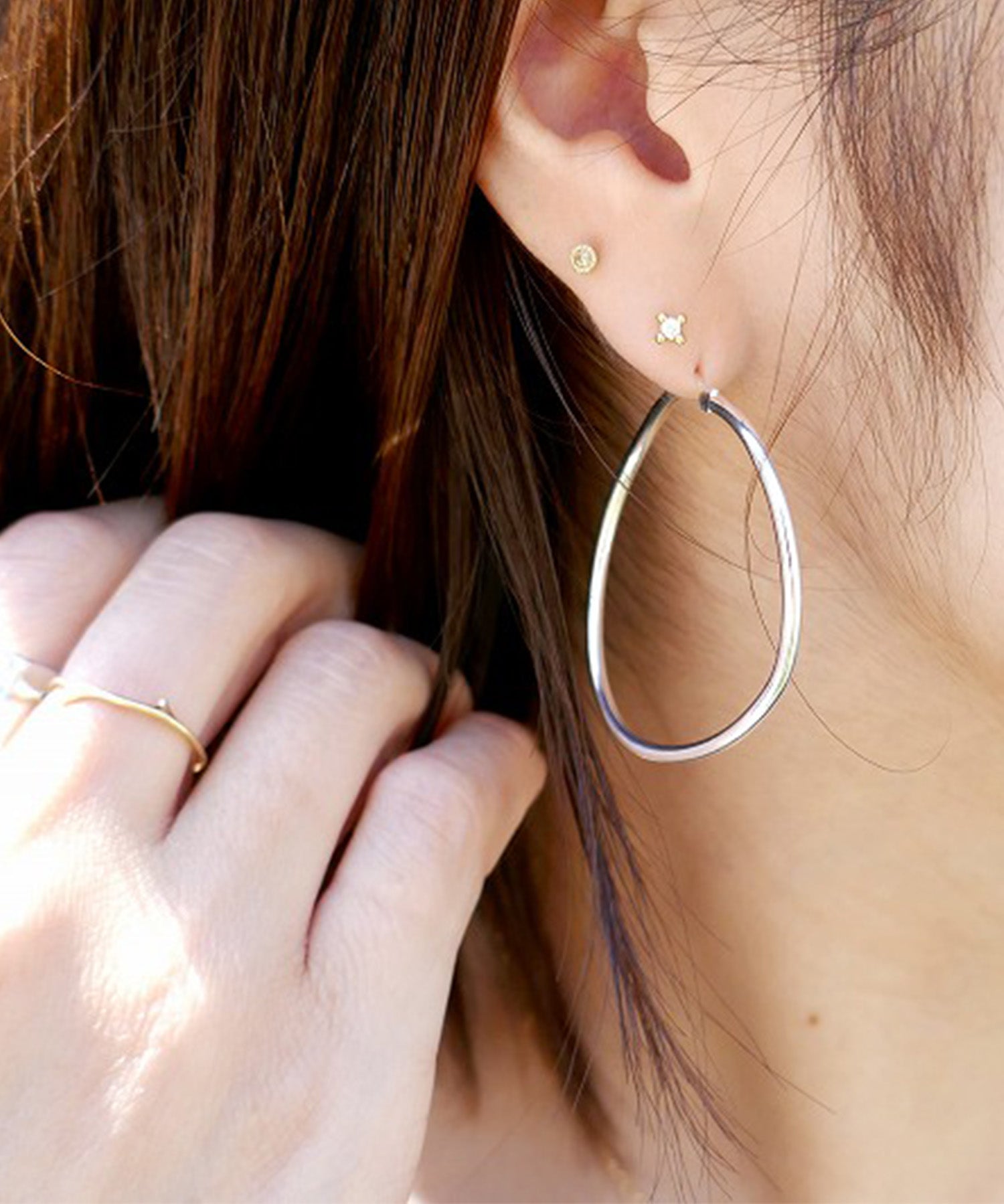 無駄のないシンプルなフープピアス。いつでもどんなときでも愛用していただける