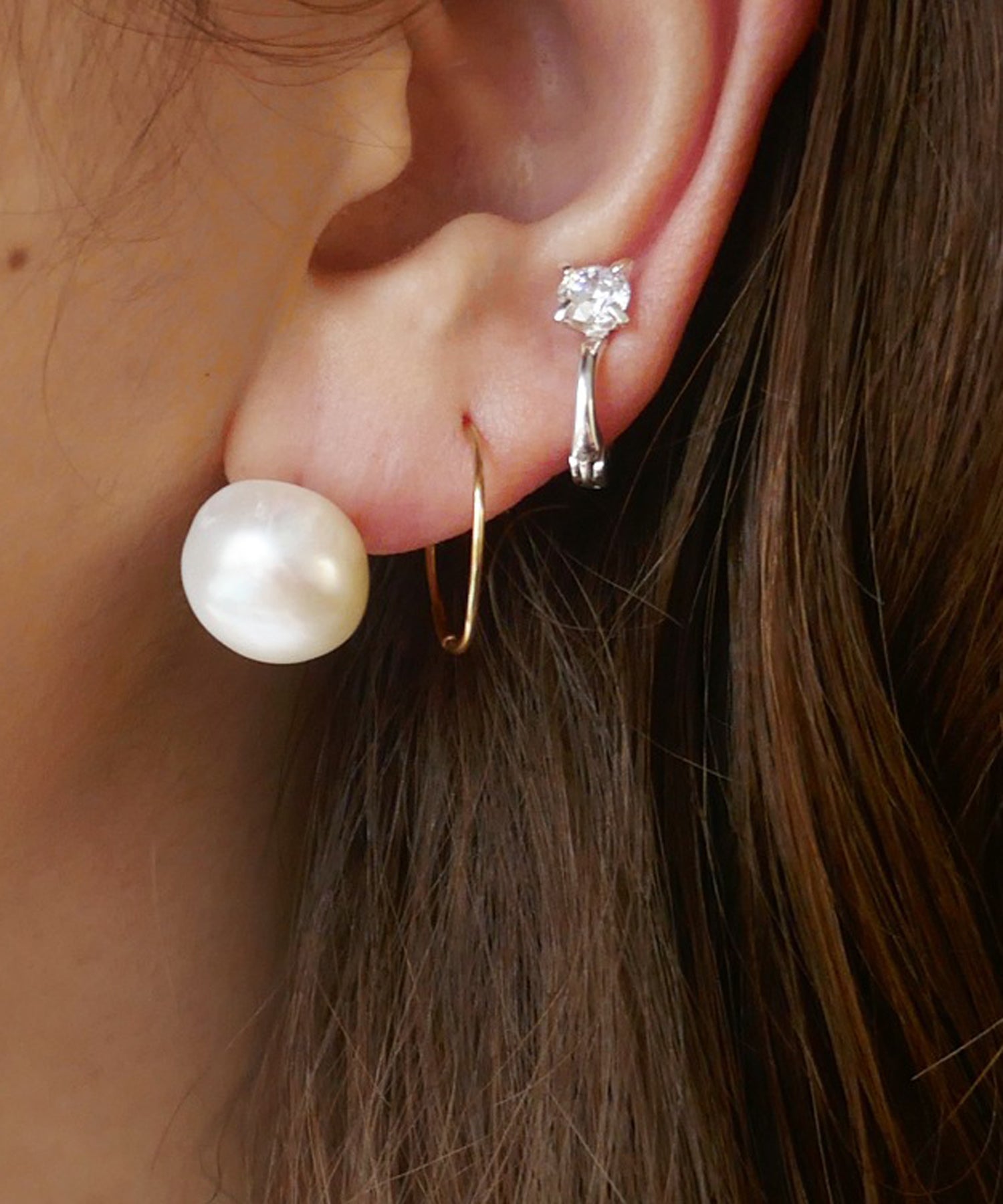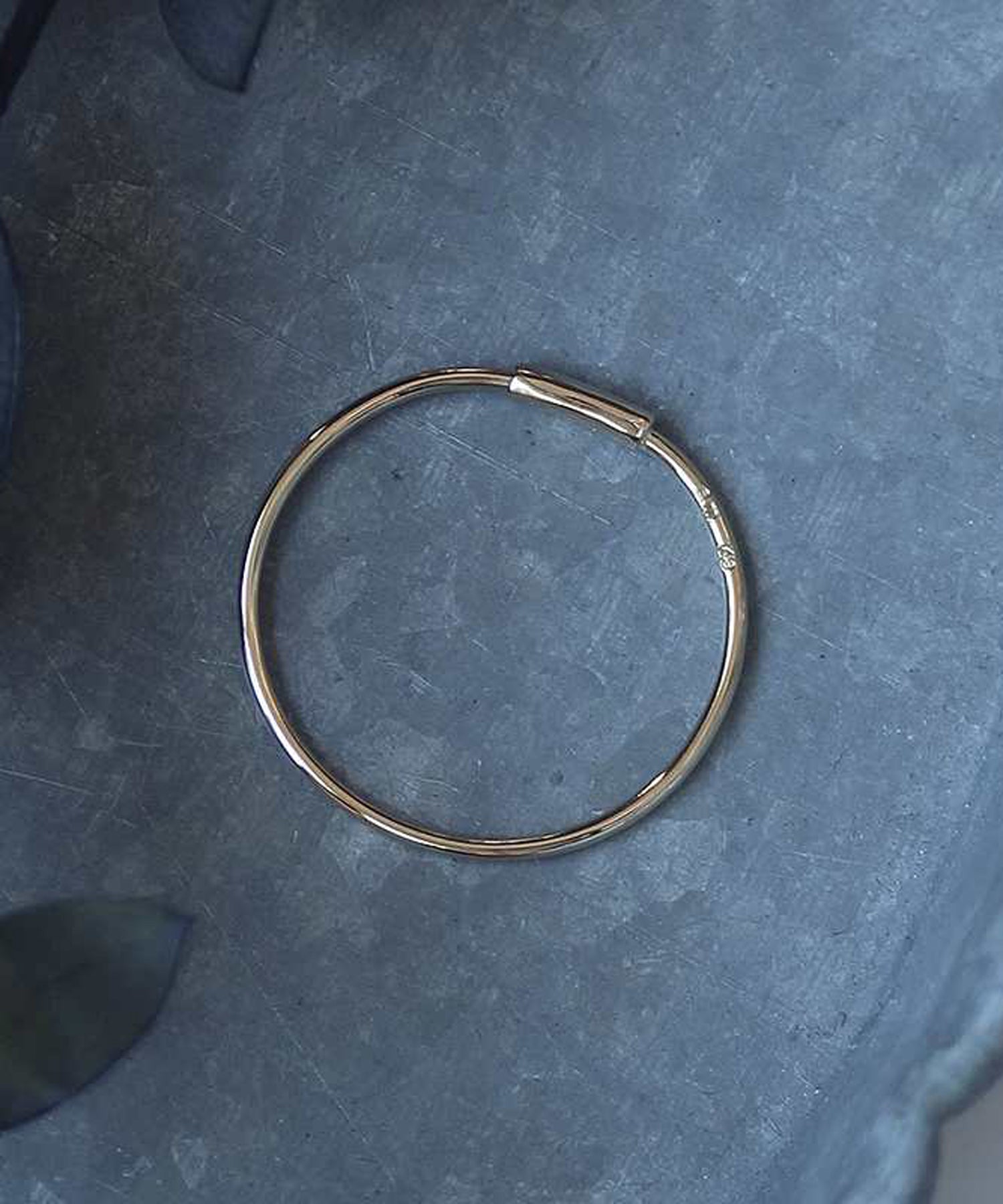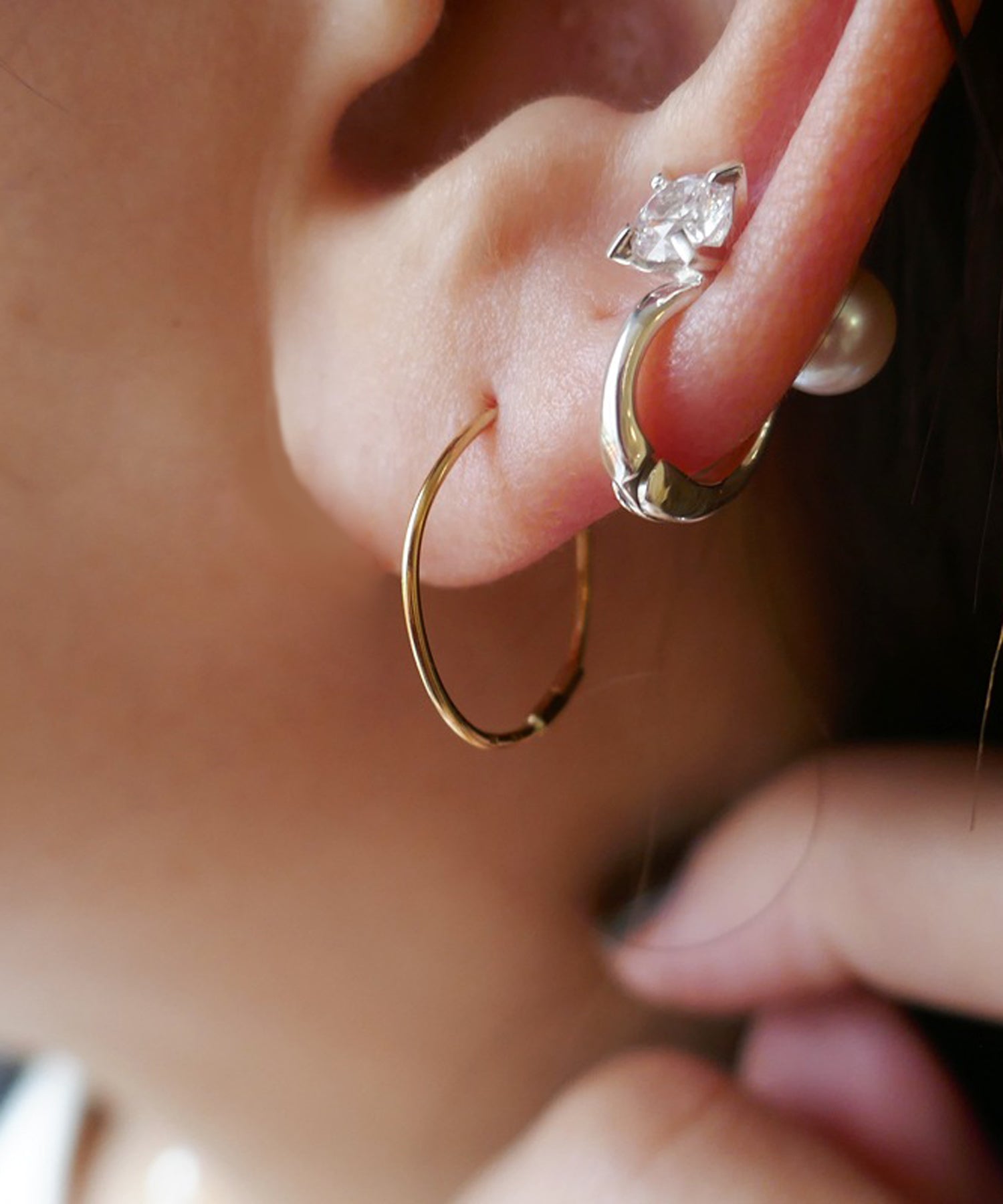 ゴールドのシンプルなフープピアス。耳たぶにも軟骨にも使いやすい