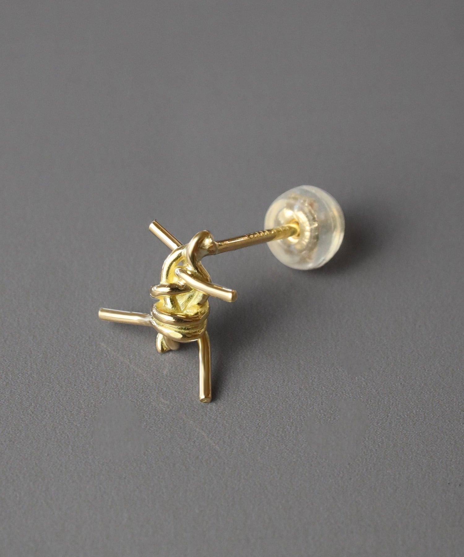 リアルな有刺鉄線がモチーフになったピアス。ハードなモチーフですが上品なゴールドの素材で
