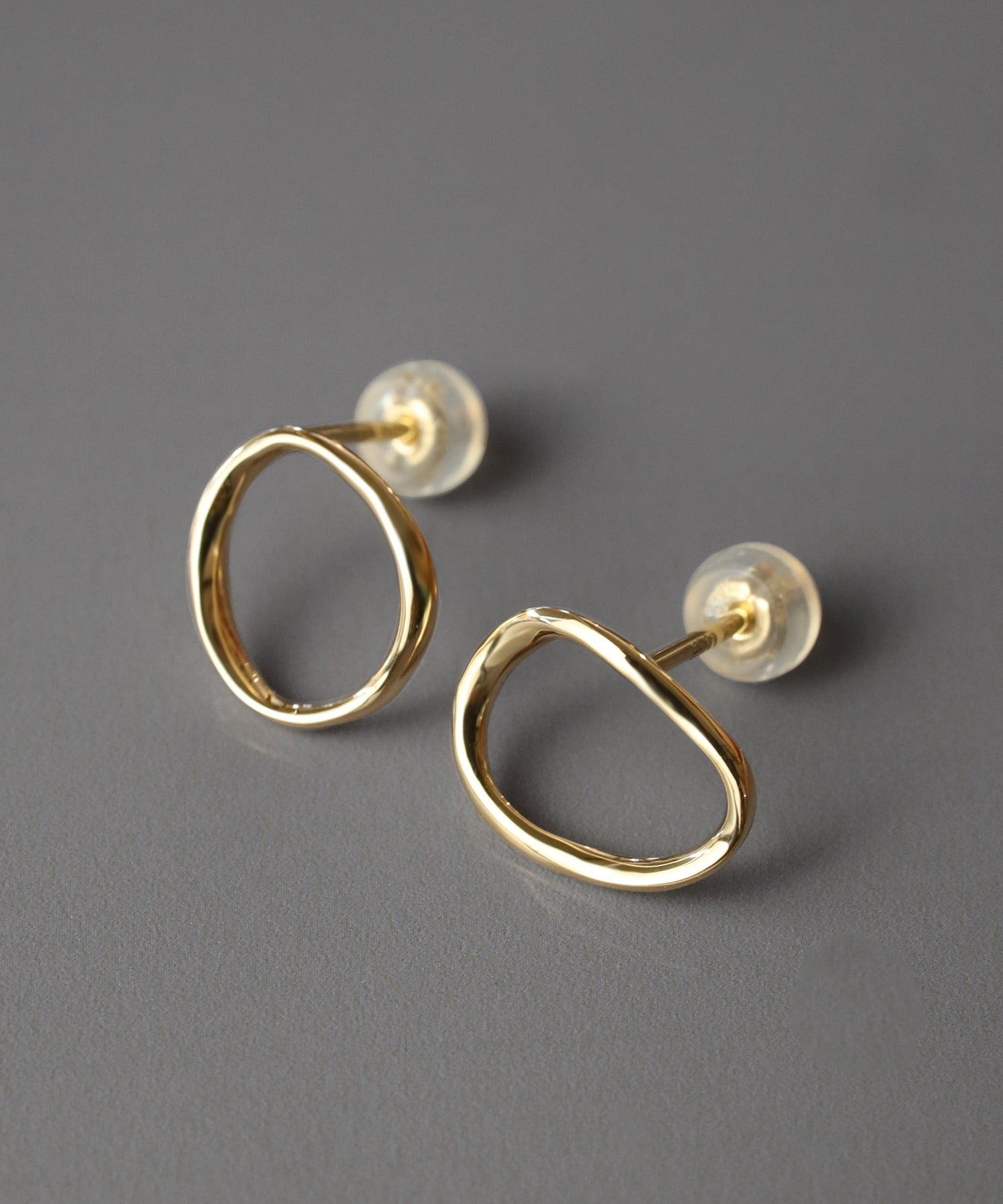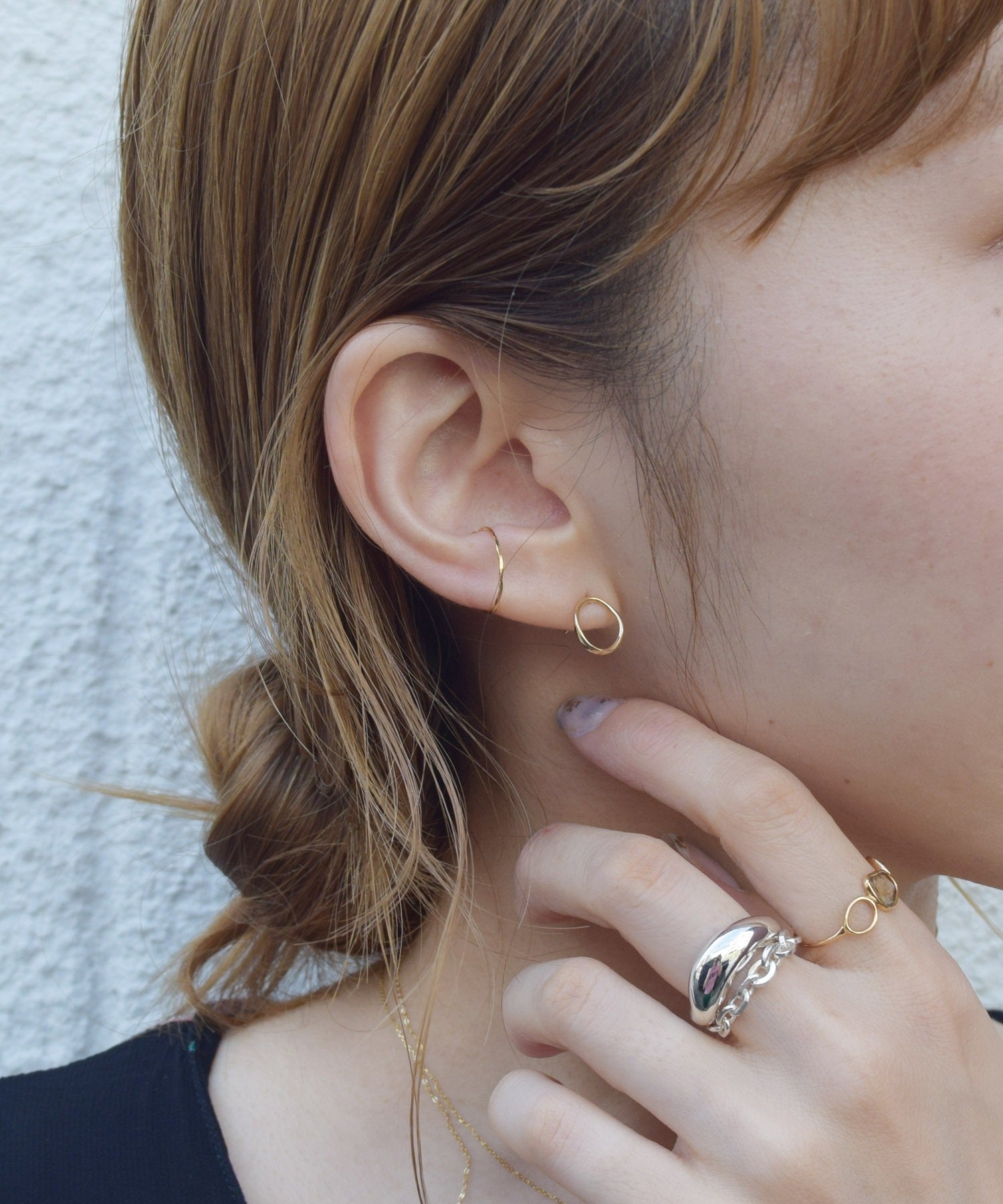 強弱のあるラフな線のモチーフピアス。左右で少し形の違う両耳セットのデザインです。