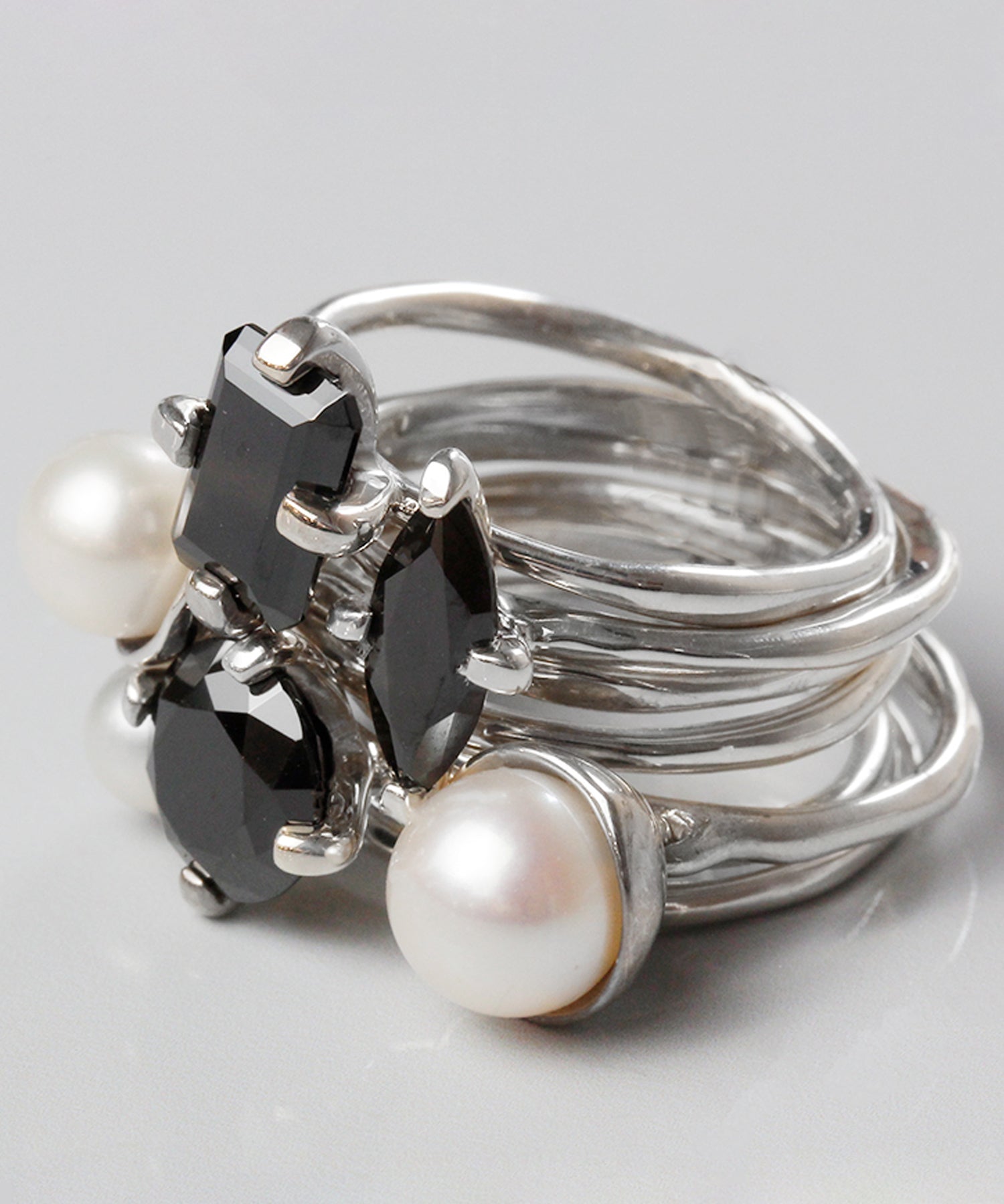 キュービックジルコニアとパールを左右にずらし1つずつ重ね合わせていく