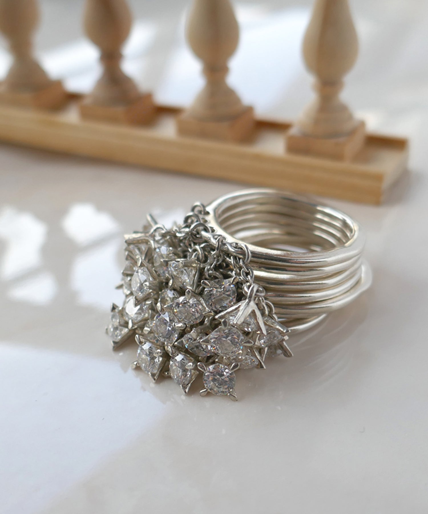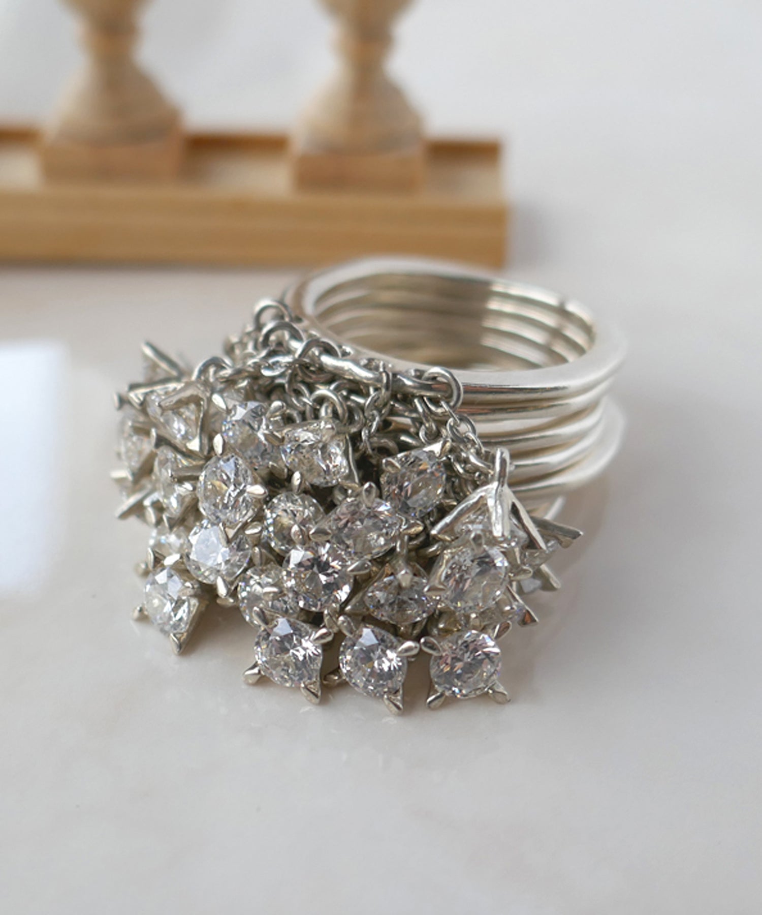 クリアのキュービックジルコニアがフリンジのように揺れる