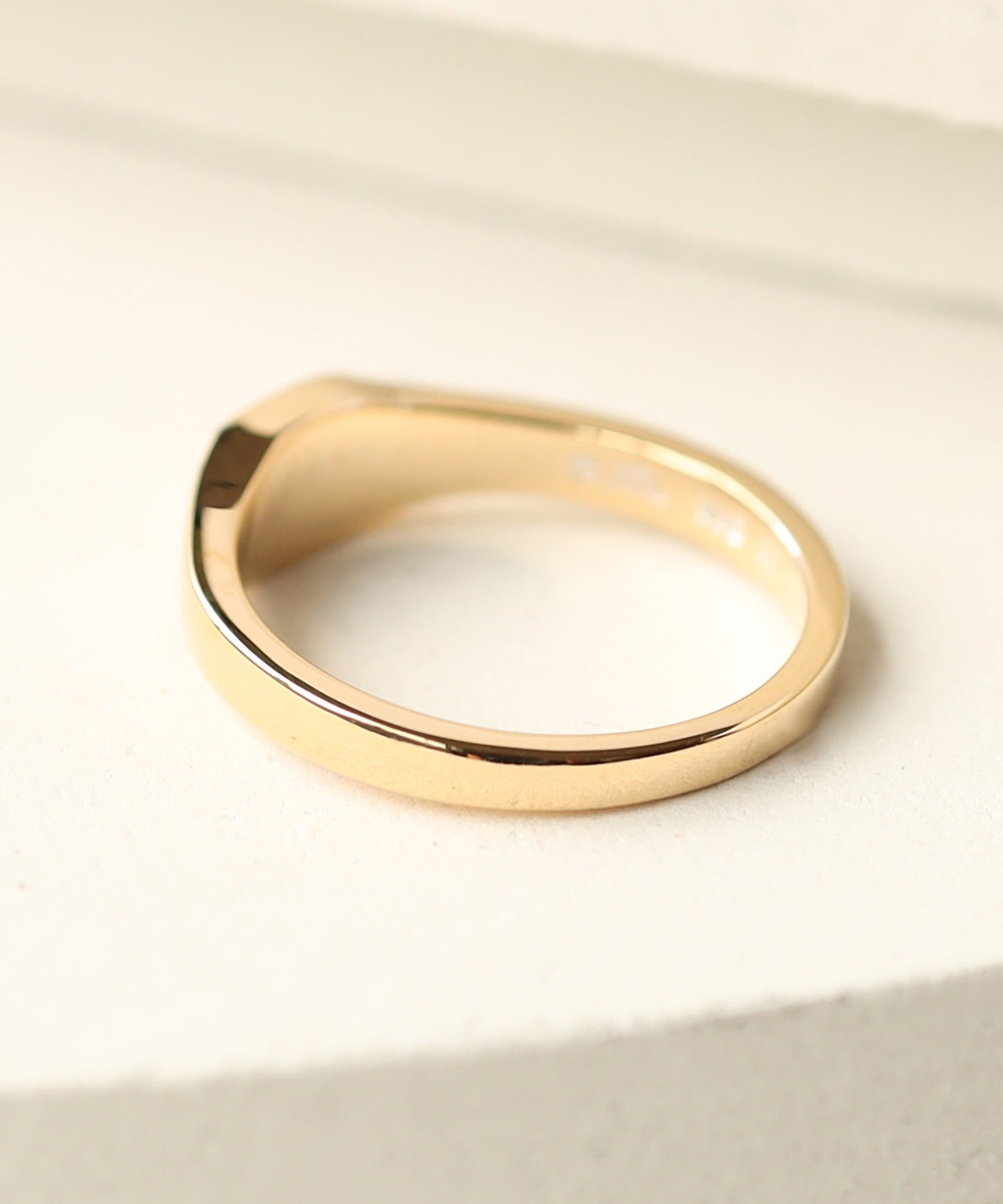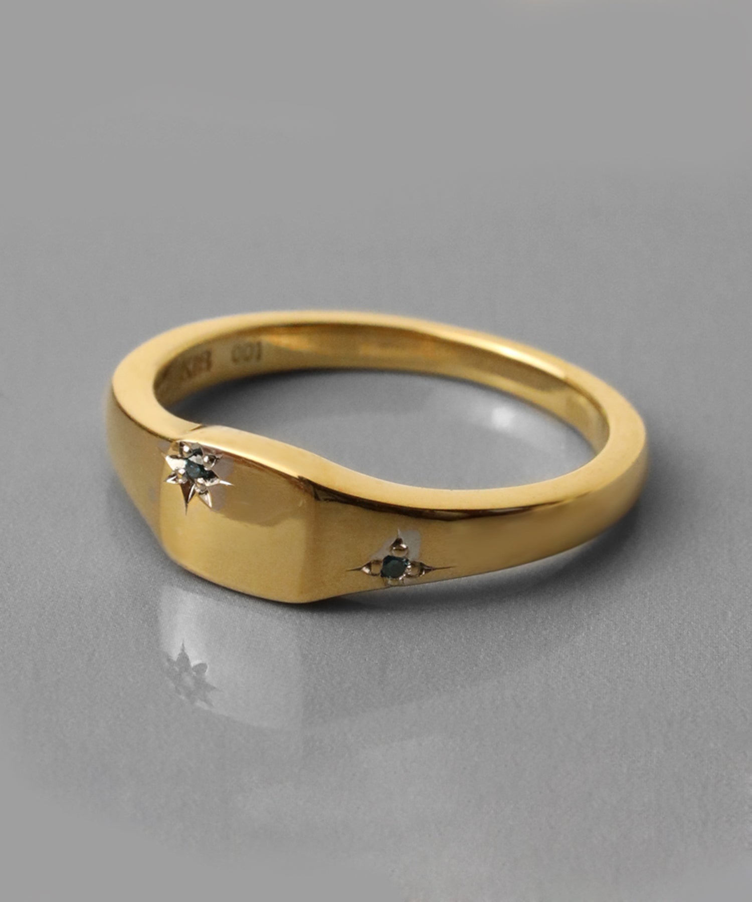 すっきりとシャープな 印台のリングにダイヤモンドを3石