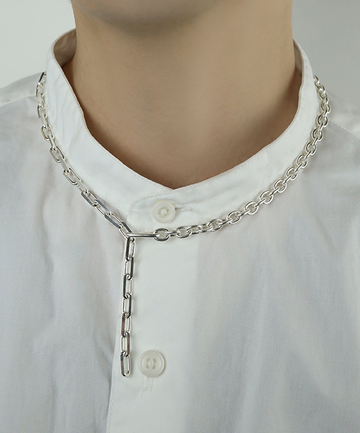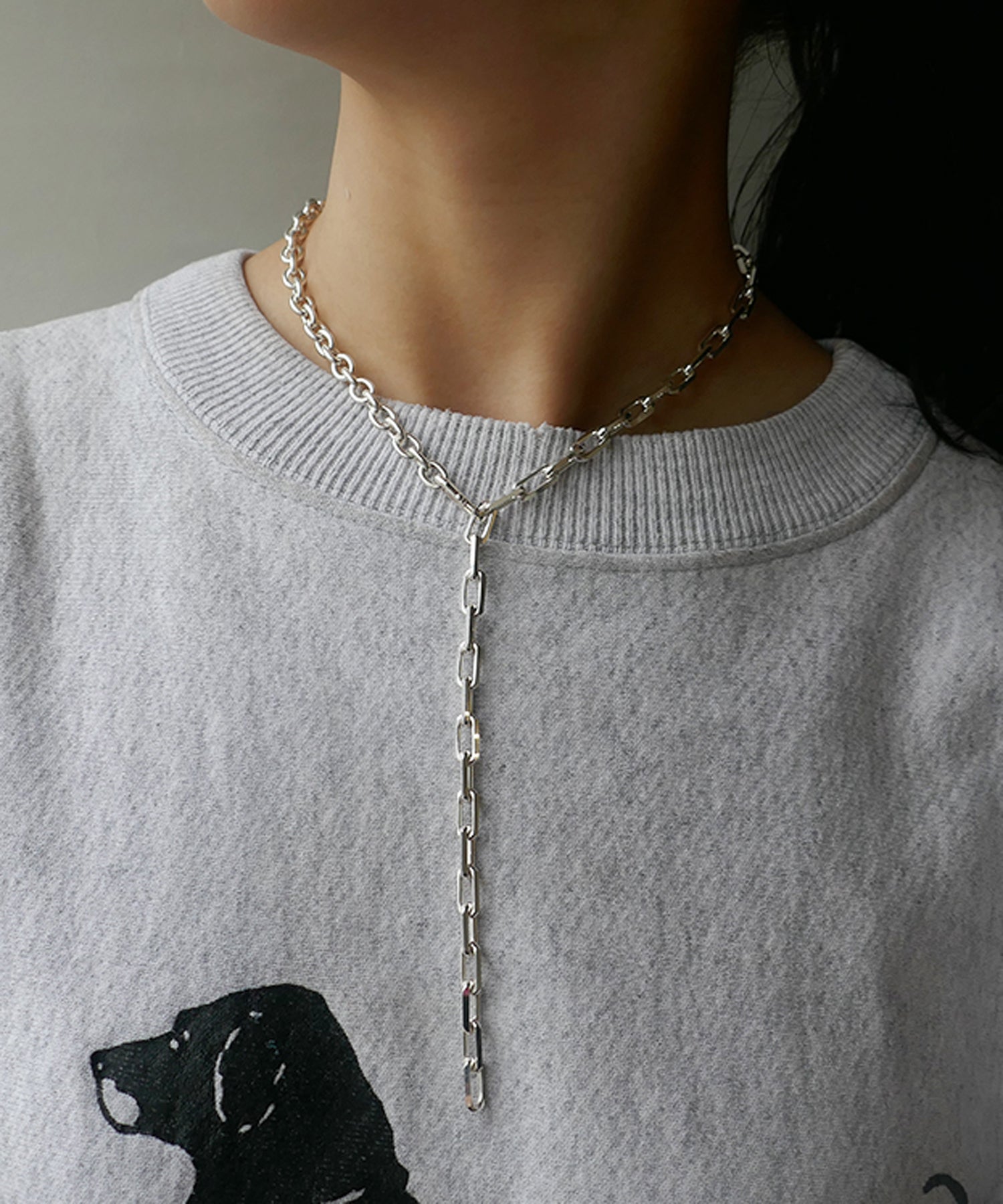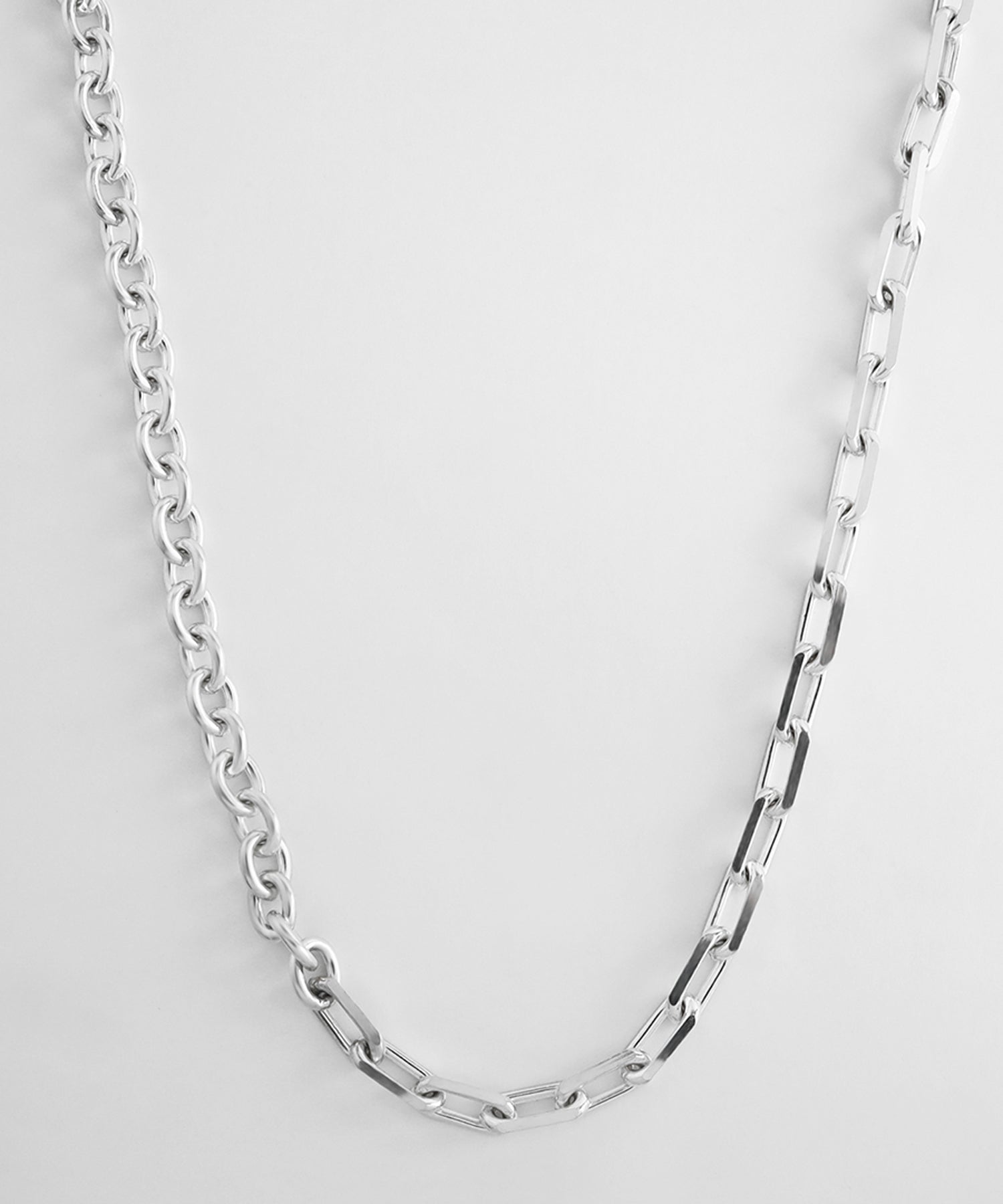 2種類のチェーンを組み合わせた程よいボリュームのチェーンネックレス。