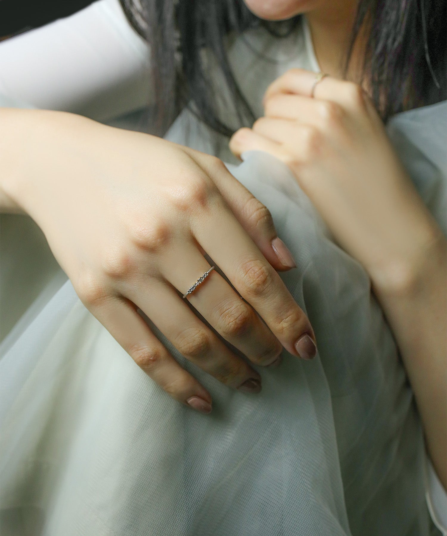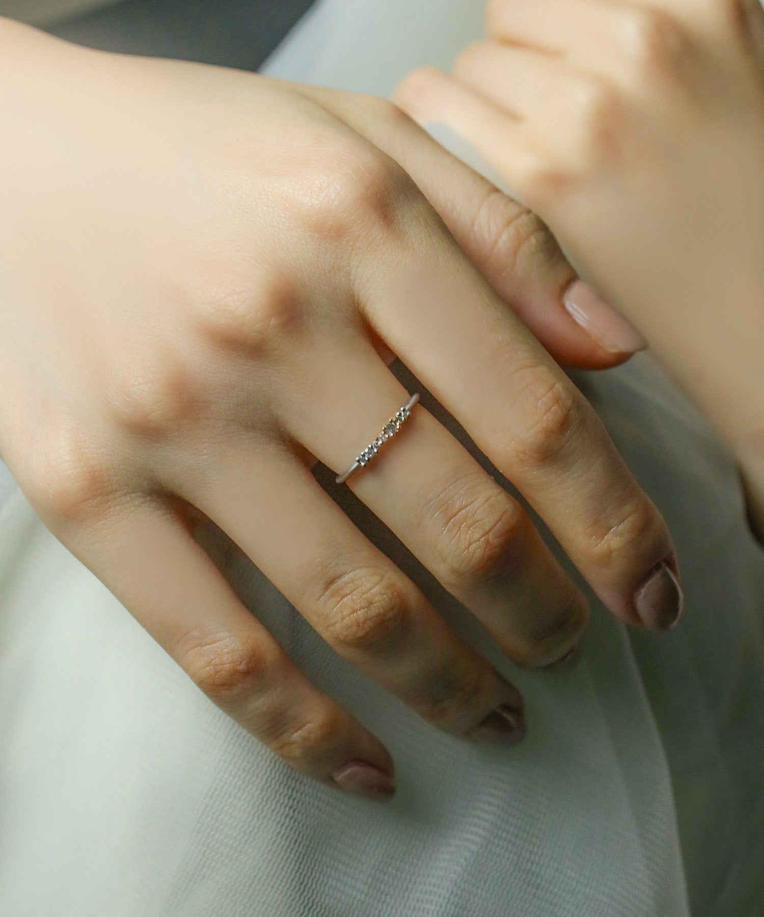 プラチナの普遍的な輝きはシルバージュエリーと組み合わせたコーディネートで上品な印象を引き立てます。