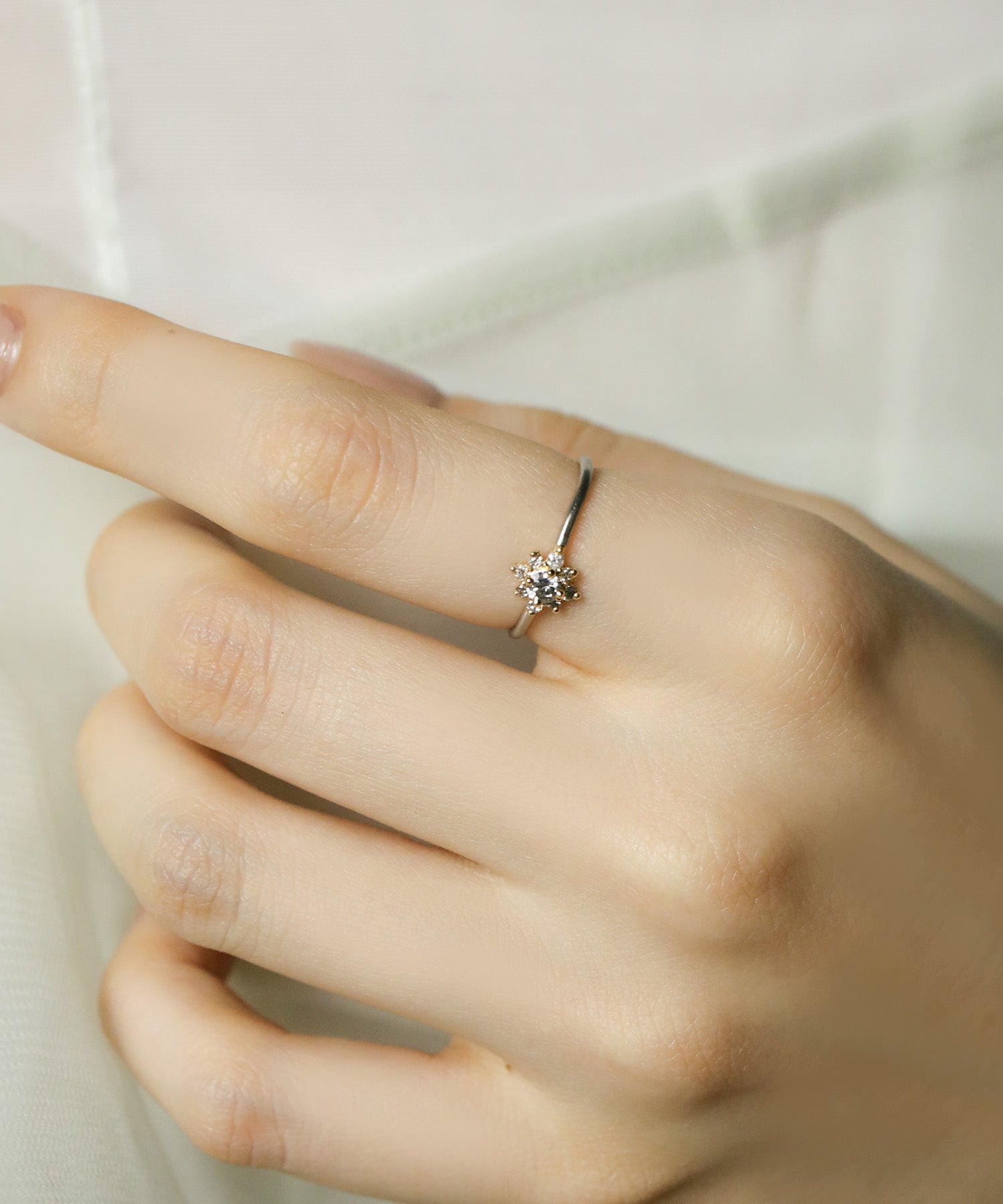 プラチナの普遍的な輝きはシルバージュエリーと組み合わせたコーディネートで上品な印象を引き立てます。