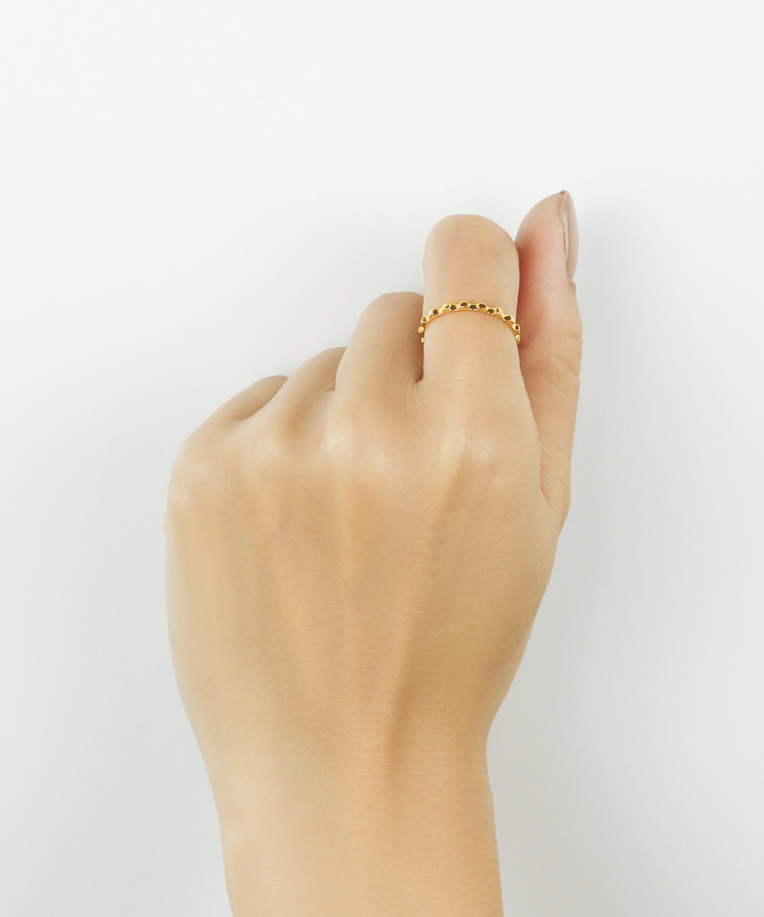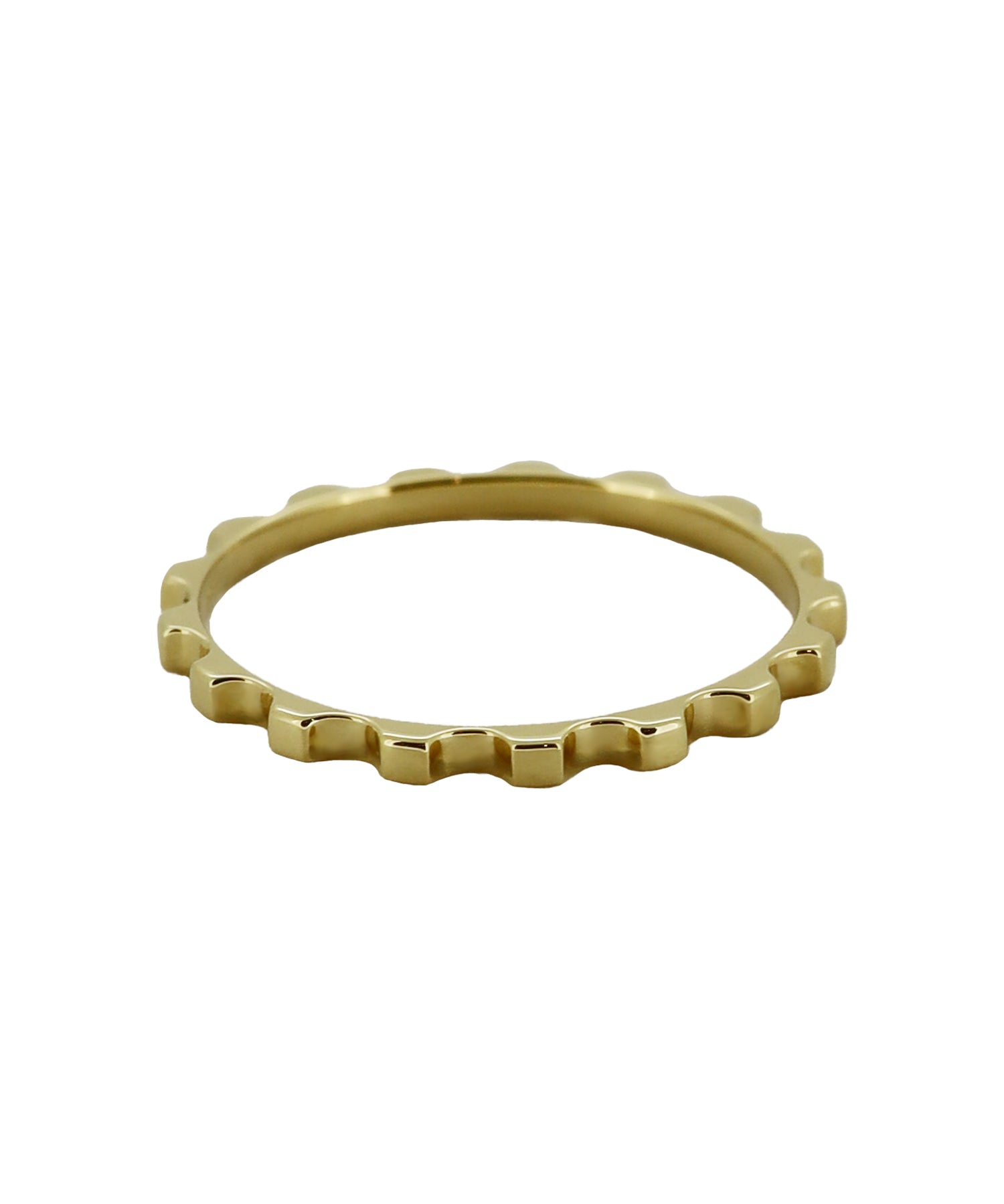 リズミカルなシルエットを持つゴールドリング。