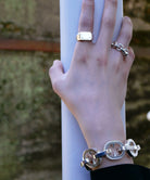 シルバーをダイナミックに使用し、メタルのディテールと重厚感がスタイリングを引き締めてくれるブレスレットです。
