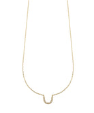 オーバル型のレリーフを横にカットしたU字のモチーフをトップにセッティングしたゴールドネックレス。側面にはダイヤモンドをセッティングし、揺れるたびに首元で煌めきます。