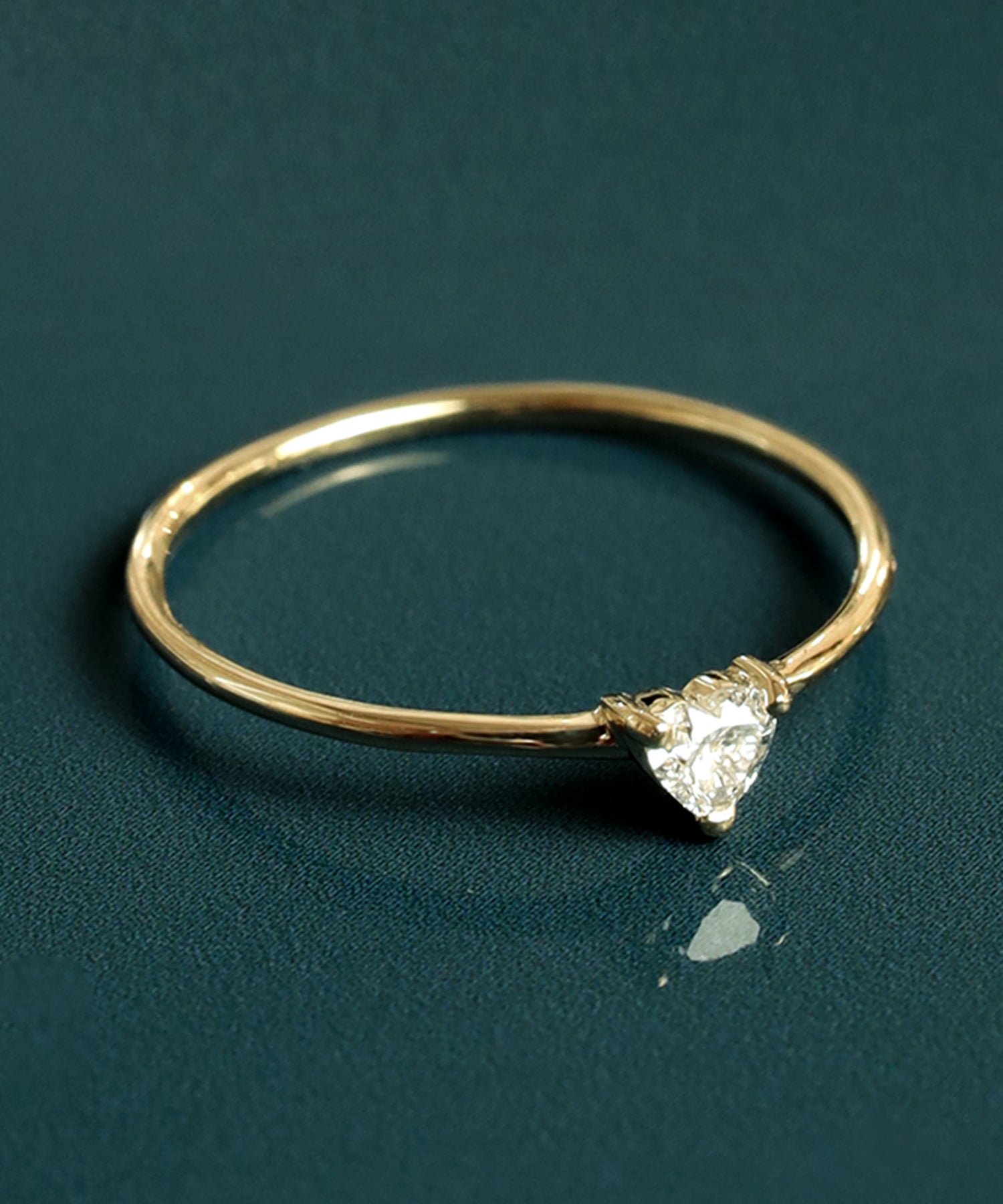 ハートのダイヤモンドが愛らしいゴールドのリング。