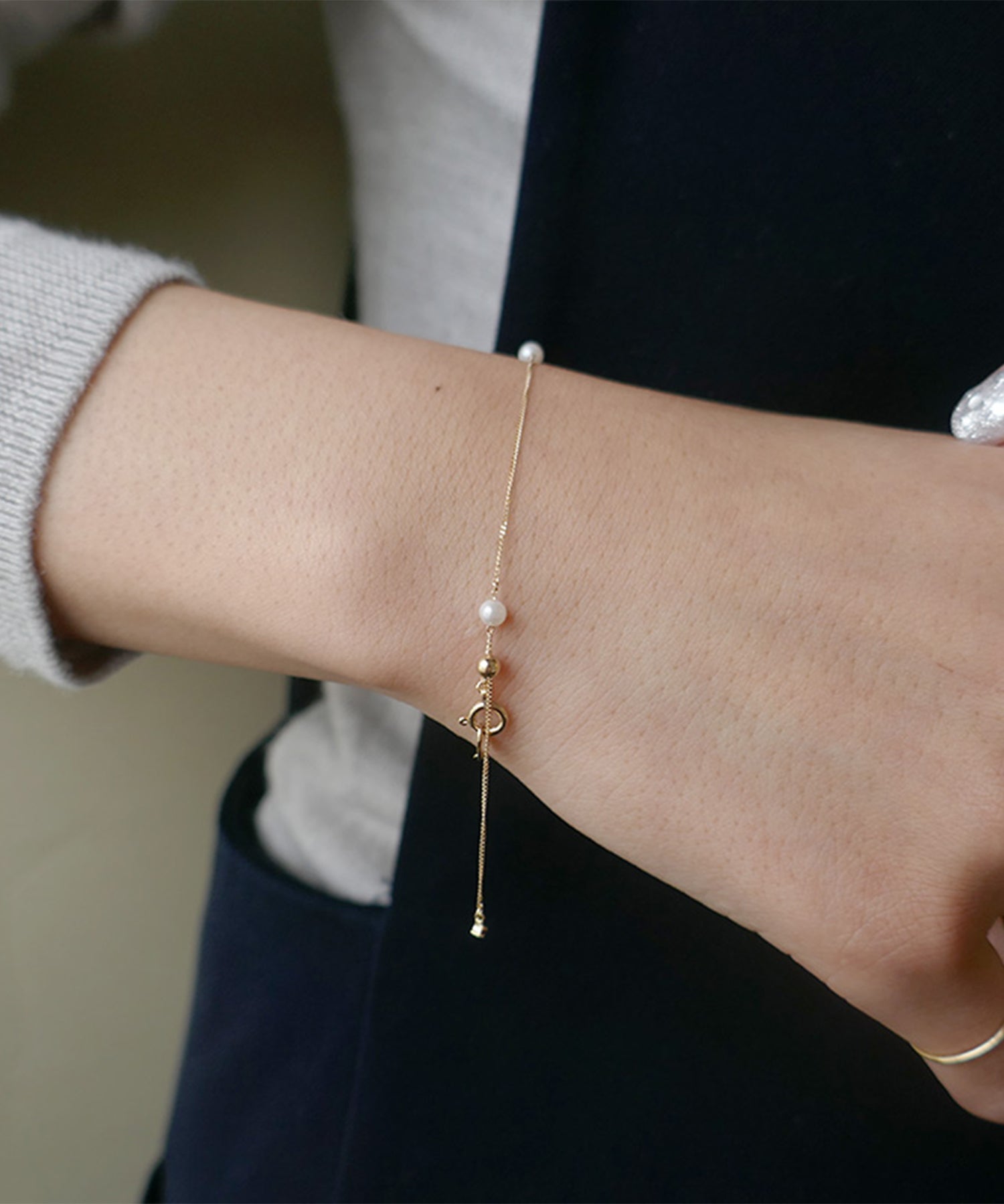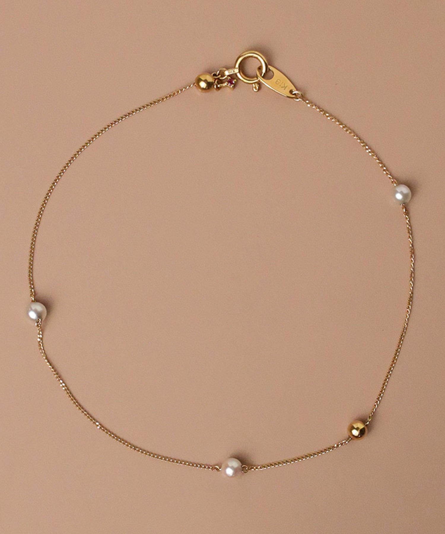 パールとボールが連なったブレスレット。シンプルで飽きのこないデザインです。