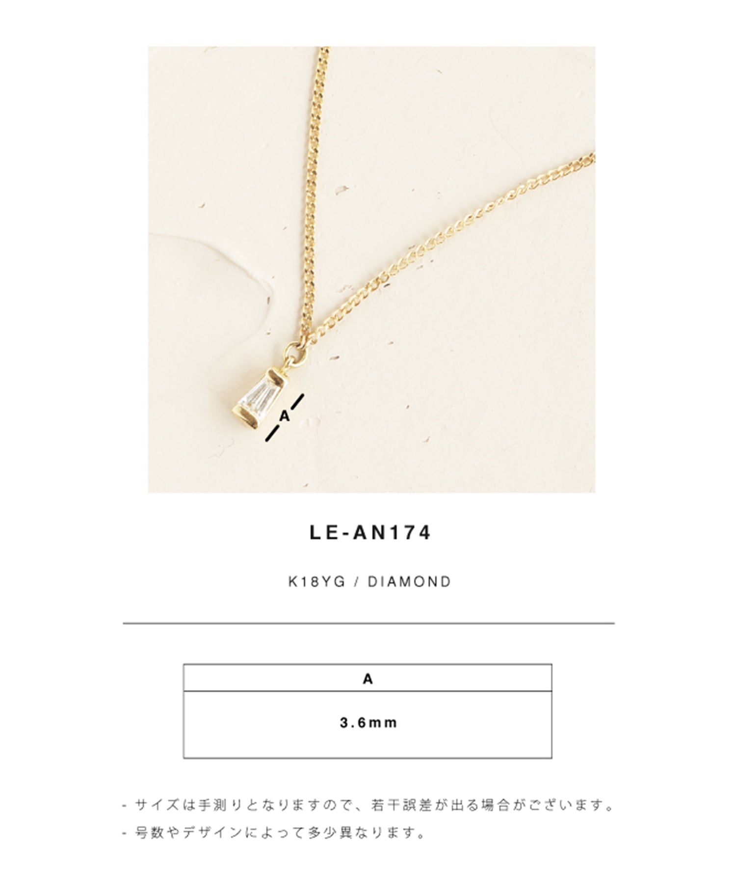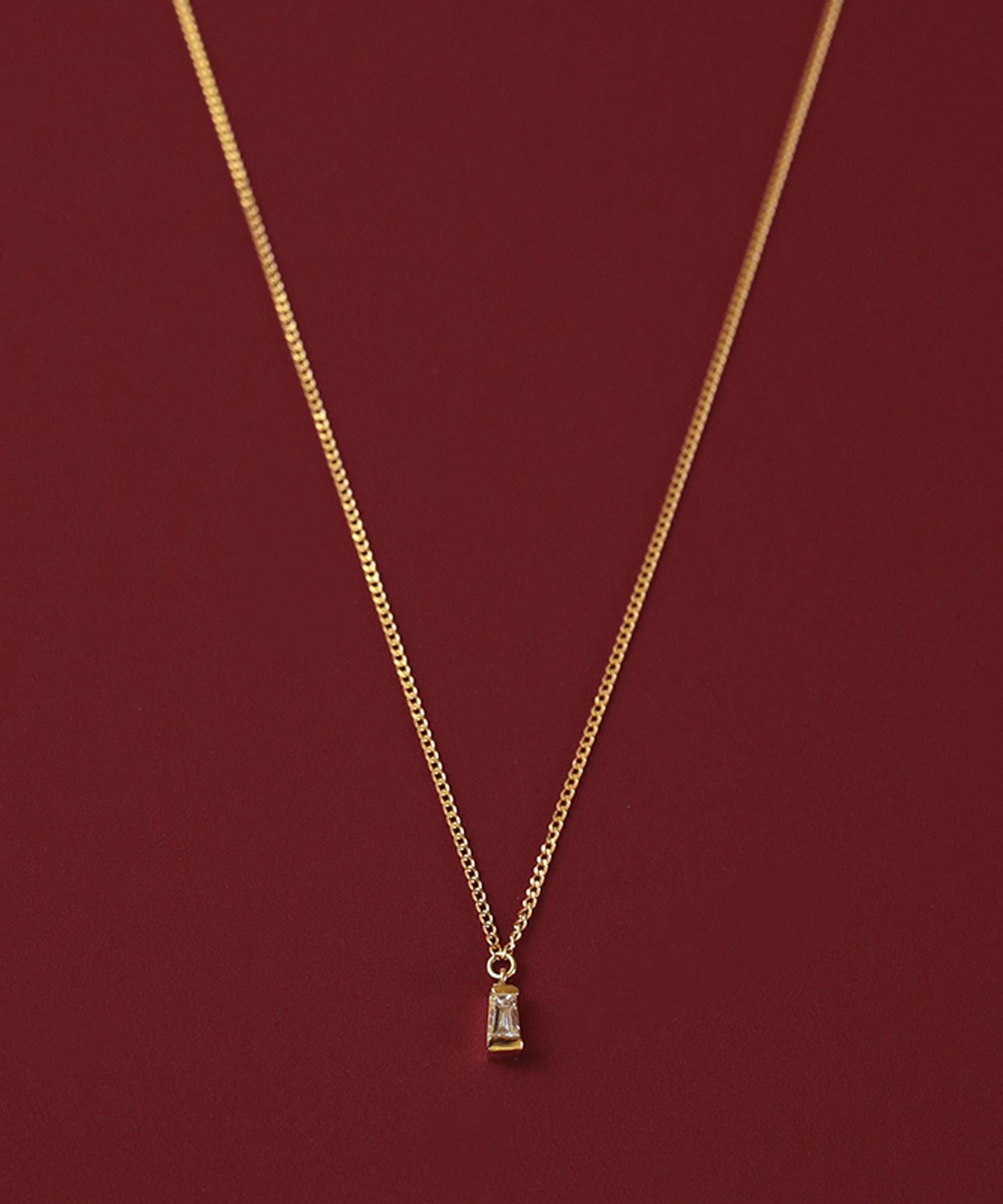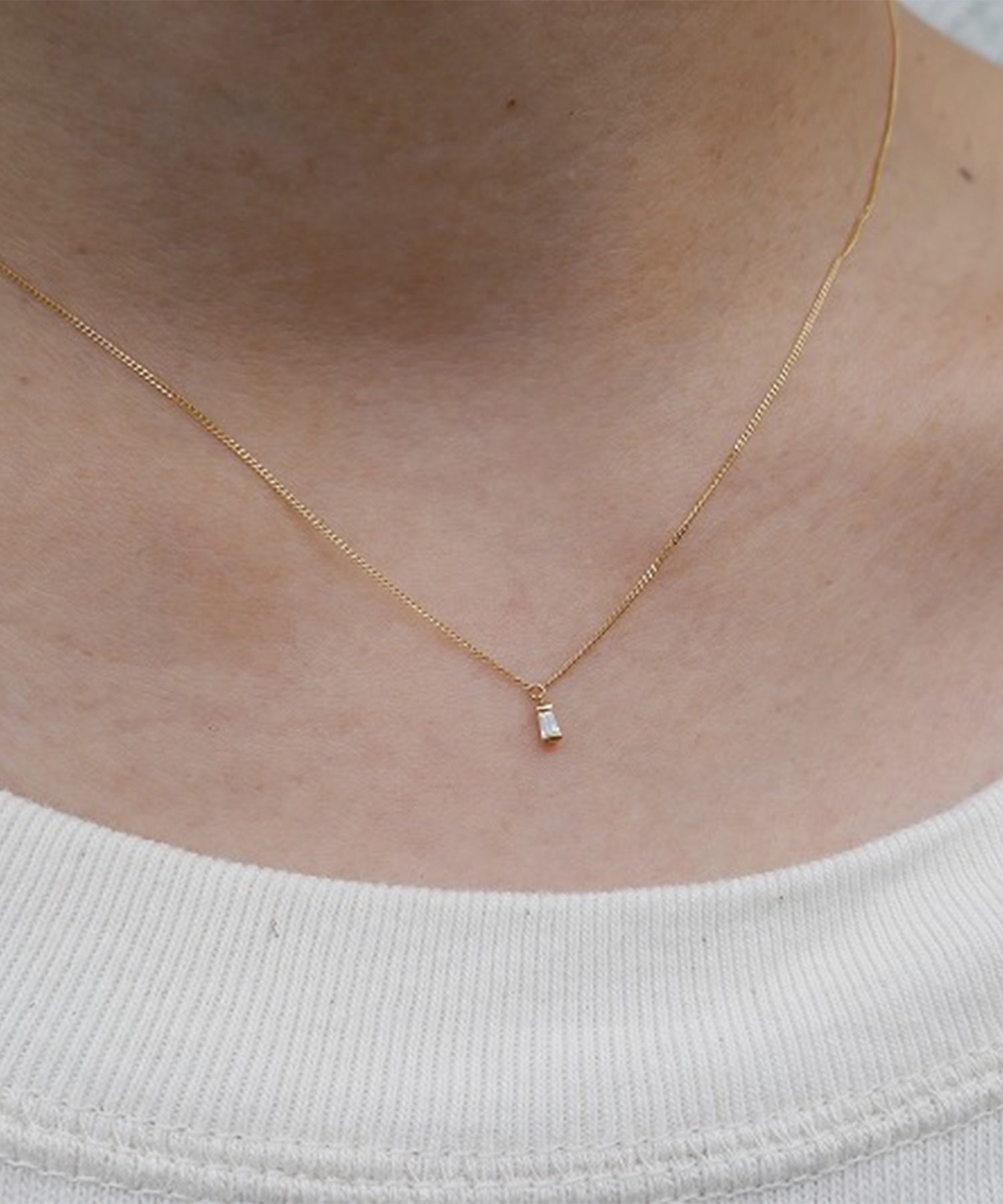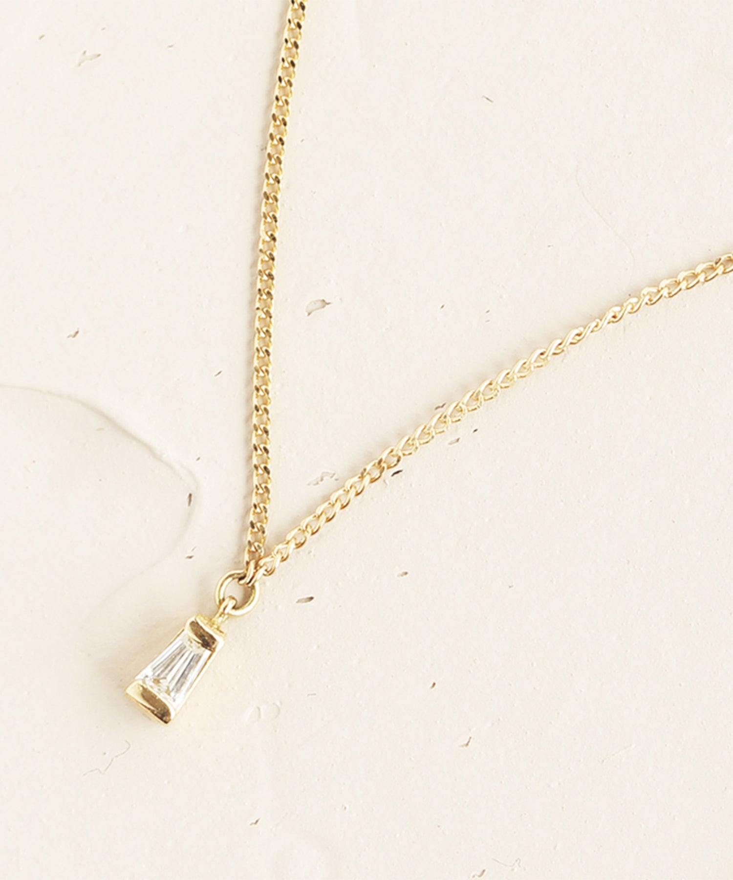 その名前の通り毎日の暮らしとその日常に寄り添うシンプルなネックレス。着るものを選ばず季節を問わずずっと着けていられるという心強さ。肌に溶け込むような繊細なスキンジュエリー。テーパーバゲットカットのダイヤモンドを主役にした直線が美しいデザインのネックレス。上品でシャープなデザインです。