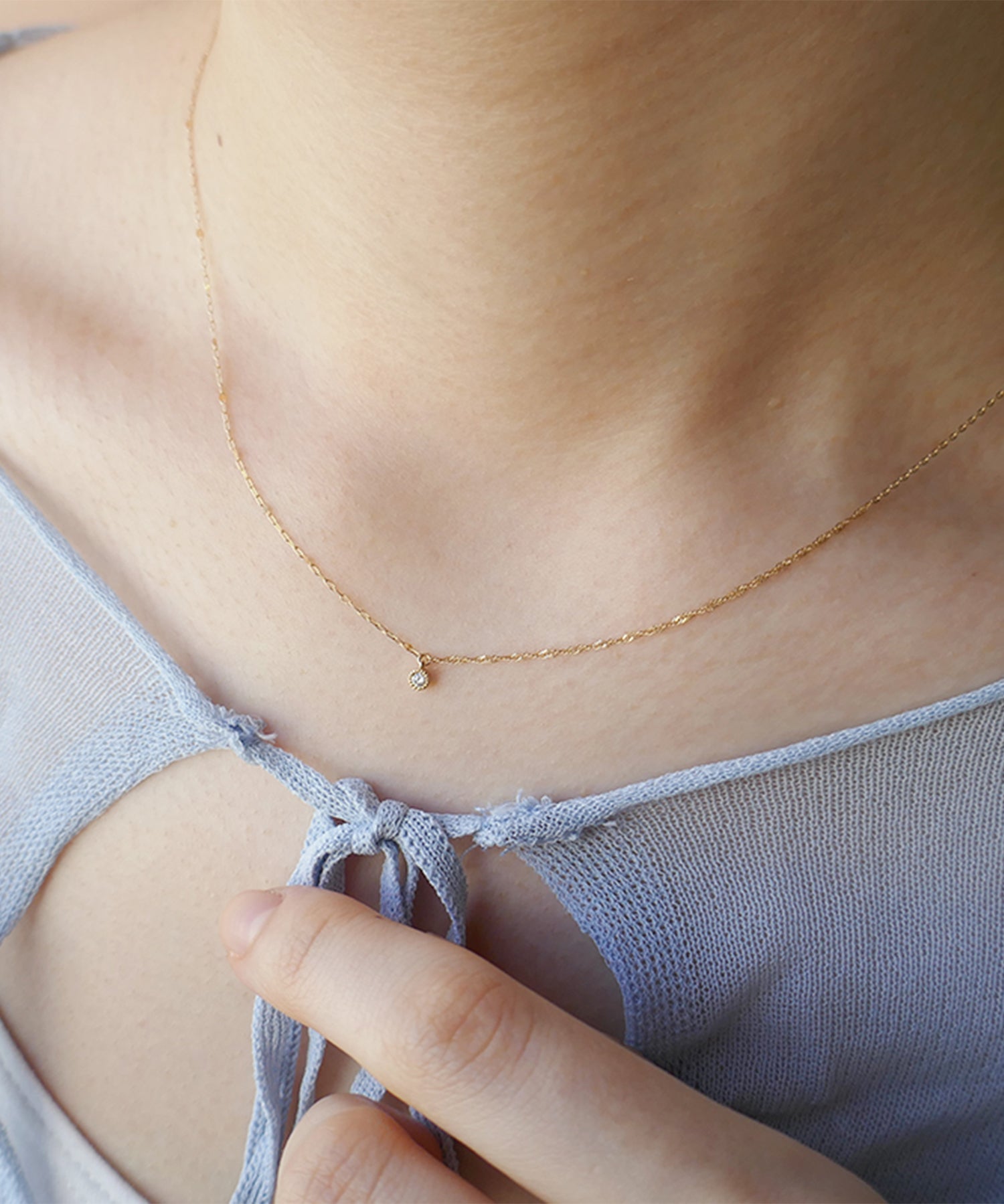 時間の経過と共に自分と混ざり合い変化する香しく纏う幸せを感じるジュエリー。4種類のチェーンから憧れのダイヤモンドがセンターに輝く魅力的なネックレス。ダイヤモンドはミル打ちを施した石座に留まりクラシカルな雰囲気と纏うタイムレスな美しさを持つデザインに。ミックスチェーンタイプを仕様しているのでシンプルな中にもこだわりと個性の光るデザインです。