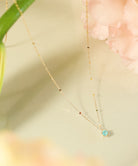 時間の経過と共に自分と混ざり合い変化する香しく纏う幸せを感じるジュエリー。カラーストーンから続く花びらのように光を受けて煌めく繊細なデザインプレートのペタルチェーンを使ったネックレス。