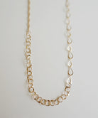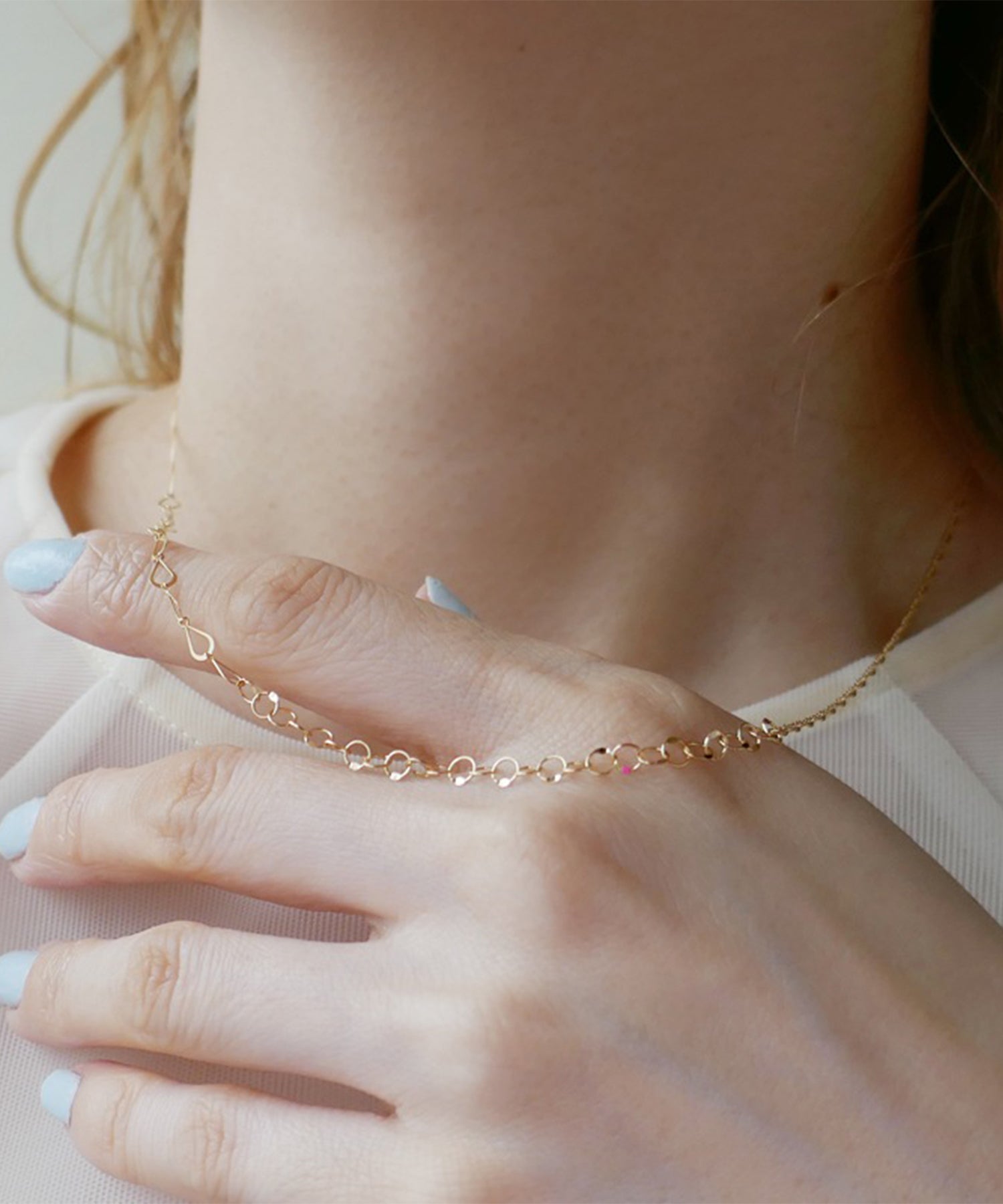 4種類のチェーンの持つ美しさが主役のミックスチェーンネックレス。上品な輝きで、気品を感じられる首元を演出。