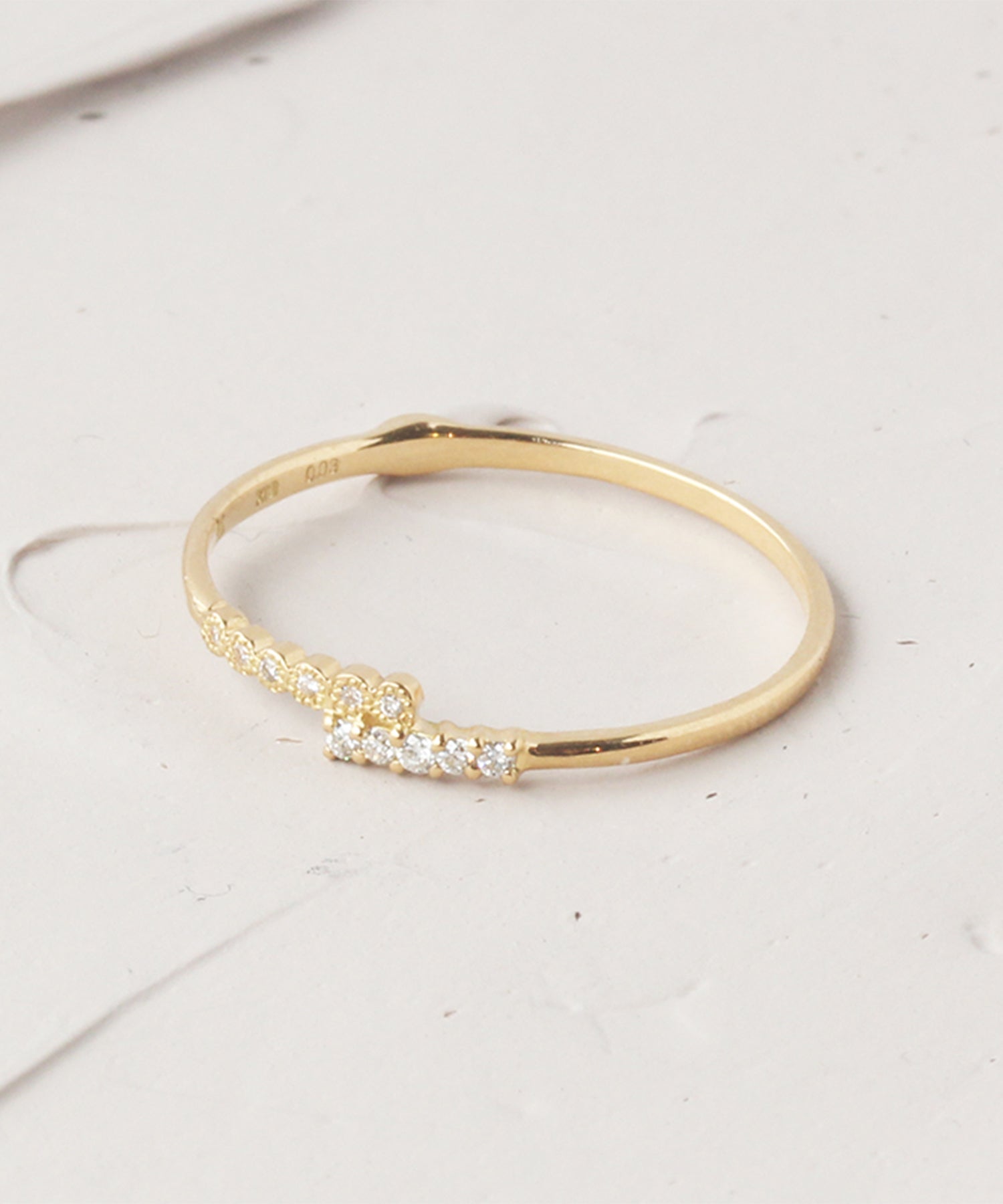 2種類の留め方で違った顔を見せてくれるダイヤモンドが少しだけ重なり合ったデザイン。