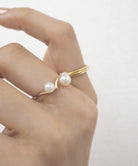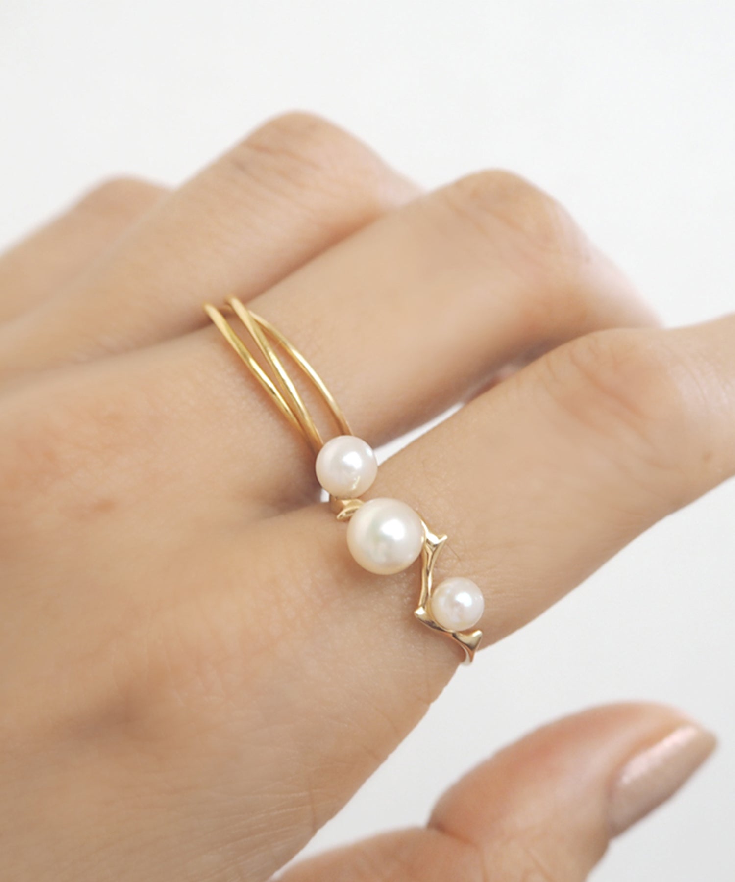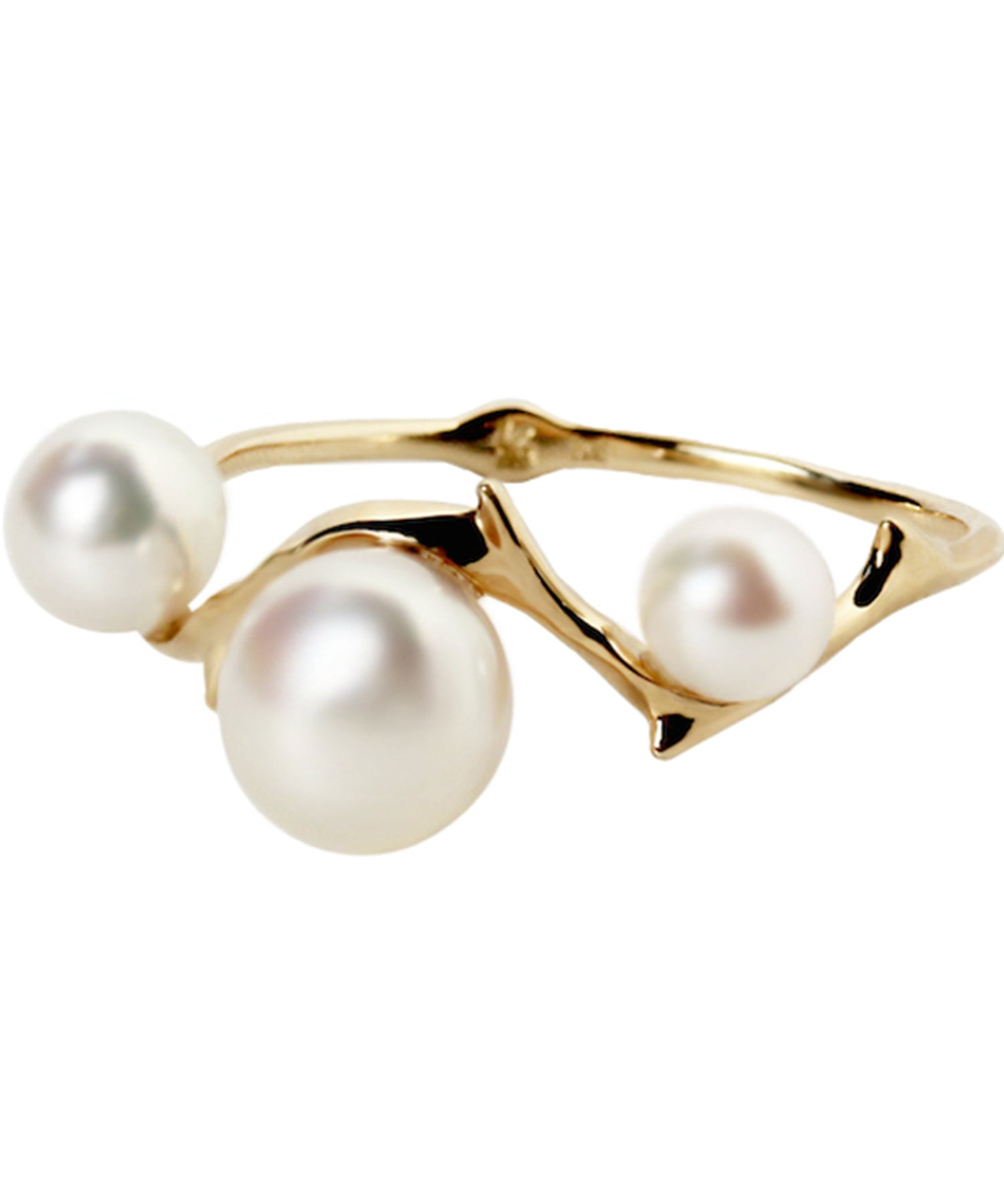 いばらモチーフのゴールドリング。植物の蔦に大小のパールが咲き誇っているような