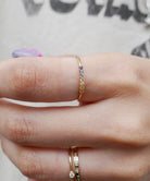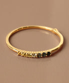 ブルーからイエローへグラデーションに並んだ天然石が水彩画のように美しい。派手すぎずかわいらしいカラーは
