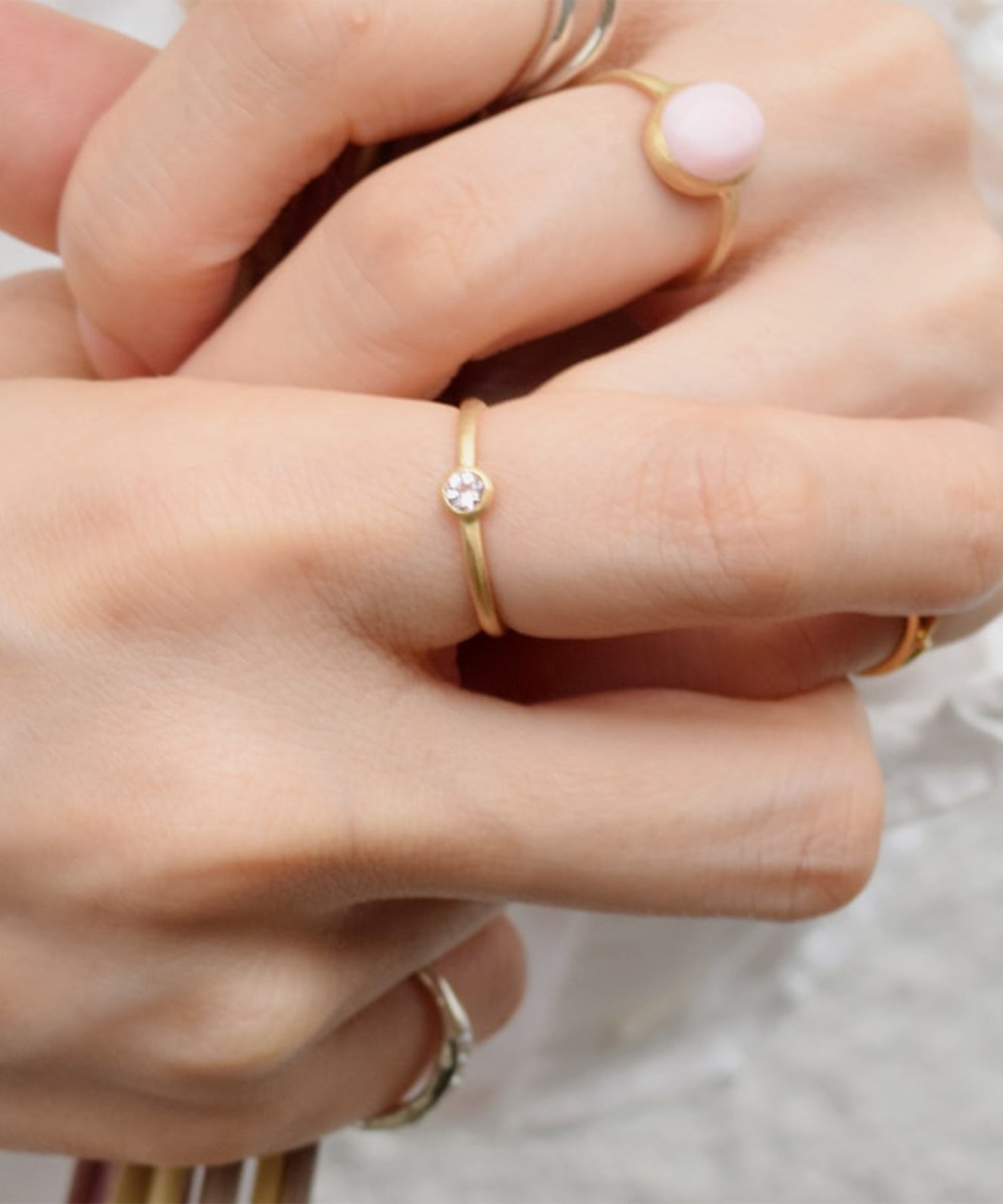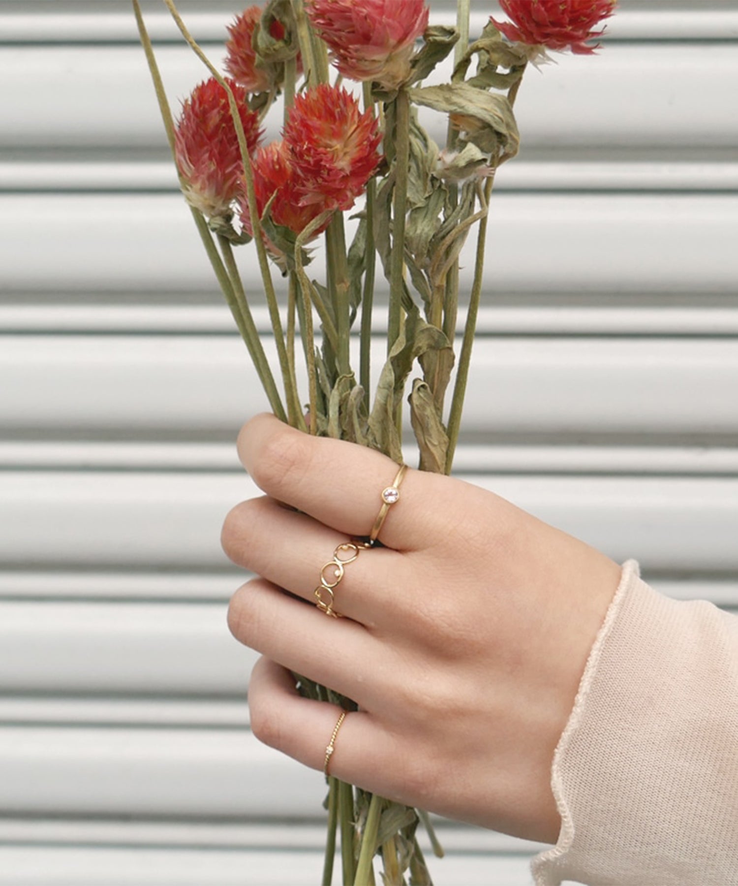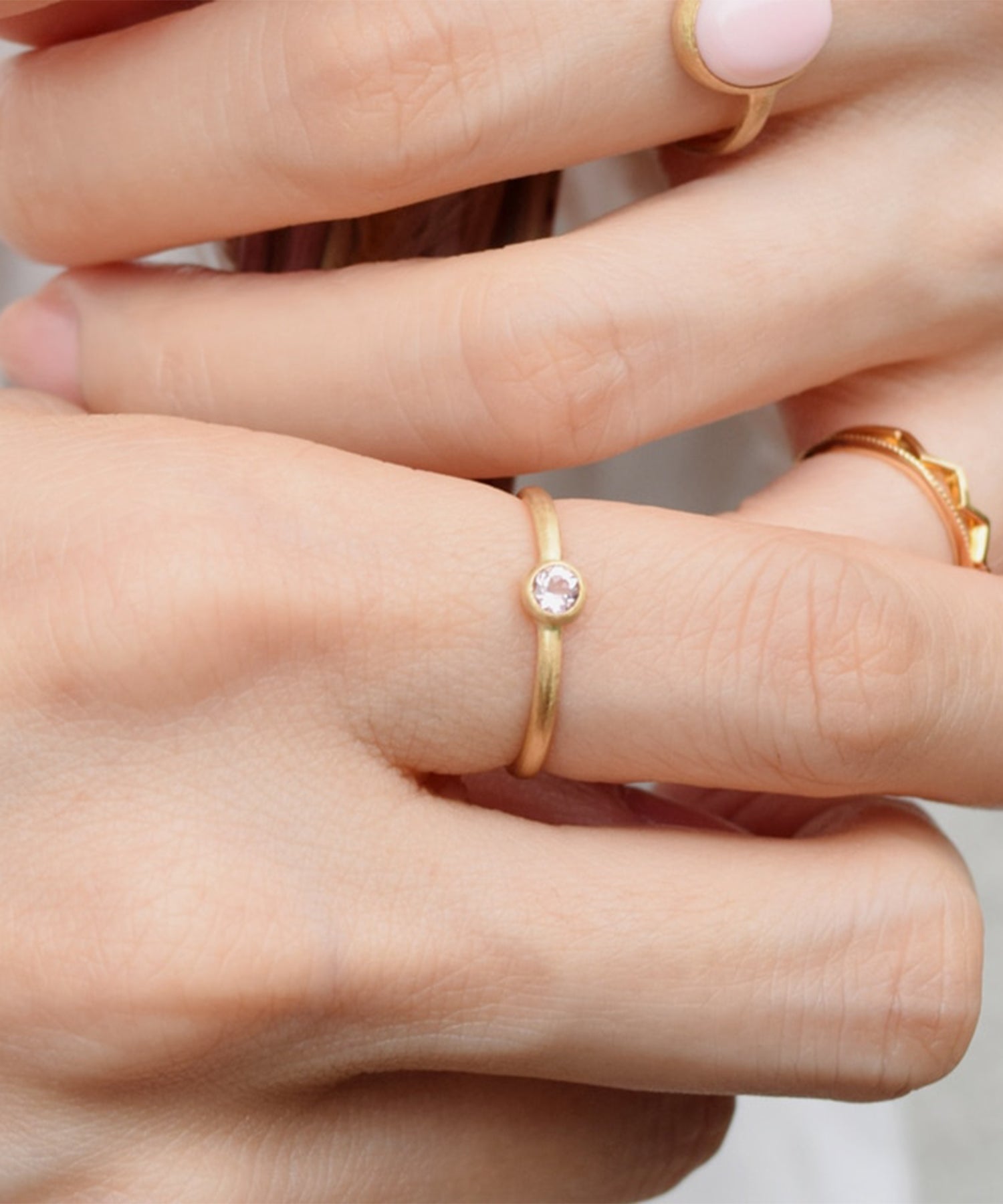 透明感のある小ぶりなラウンドカットのモルガナイトは可憐で優しくて愛しい宝石。モルガナイトの石言葉は"優美・優しさ・愛"優しく光沢感が残るヘアライン加工で天然石を引き立てる仕上げになっています。
