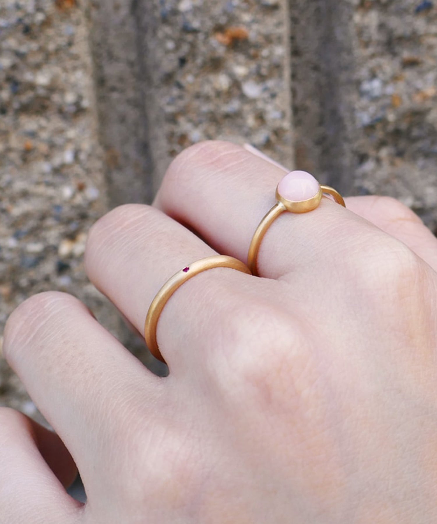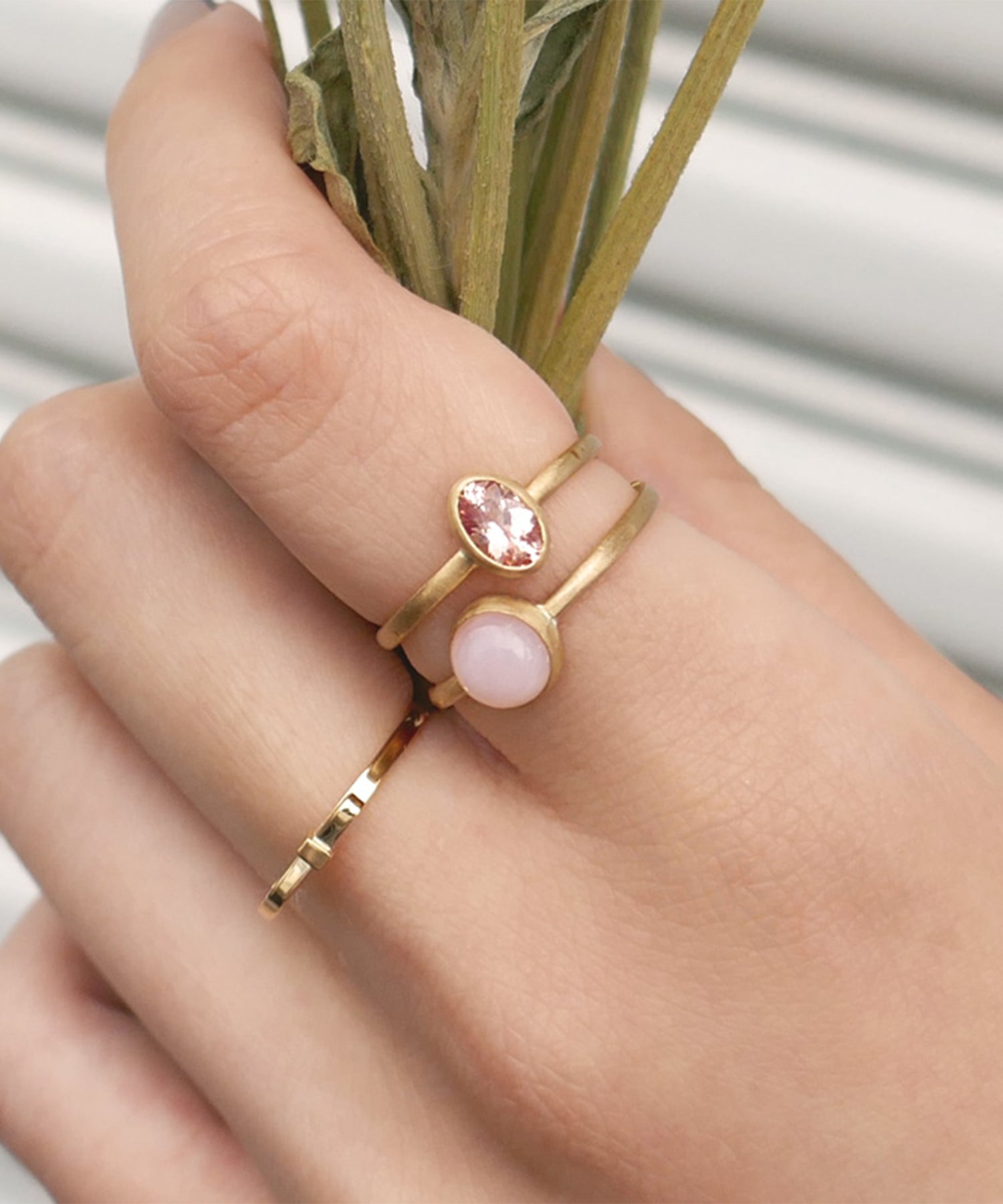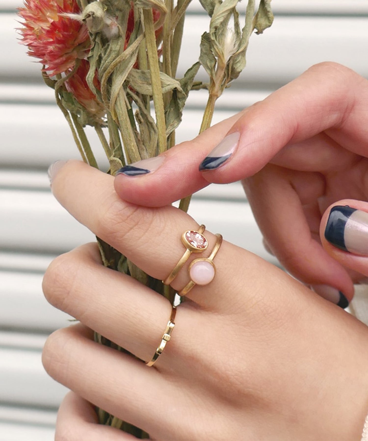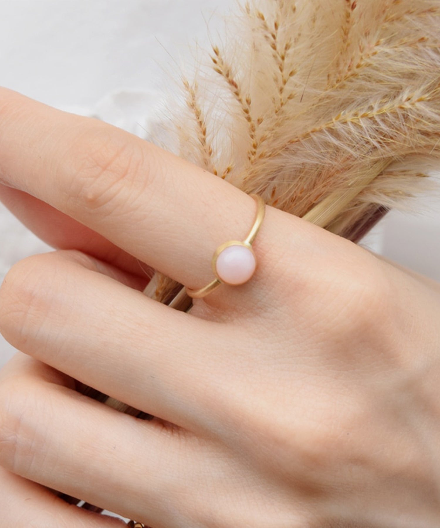 瑞々しさや潤いのある質感が穏やかで優しい印象のピンクオパール。ピンクオパールの石言葉は"愛・魅力・可憐・芸術性"優しく光沢感が残るヘアライン加工で天然石を引き立てる仕上げになっています。