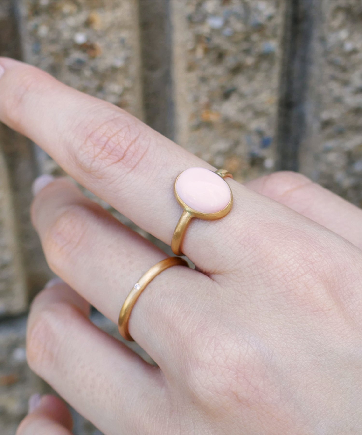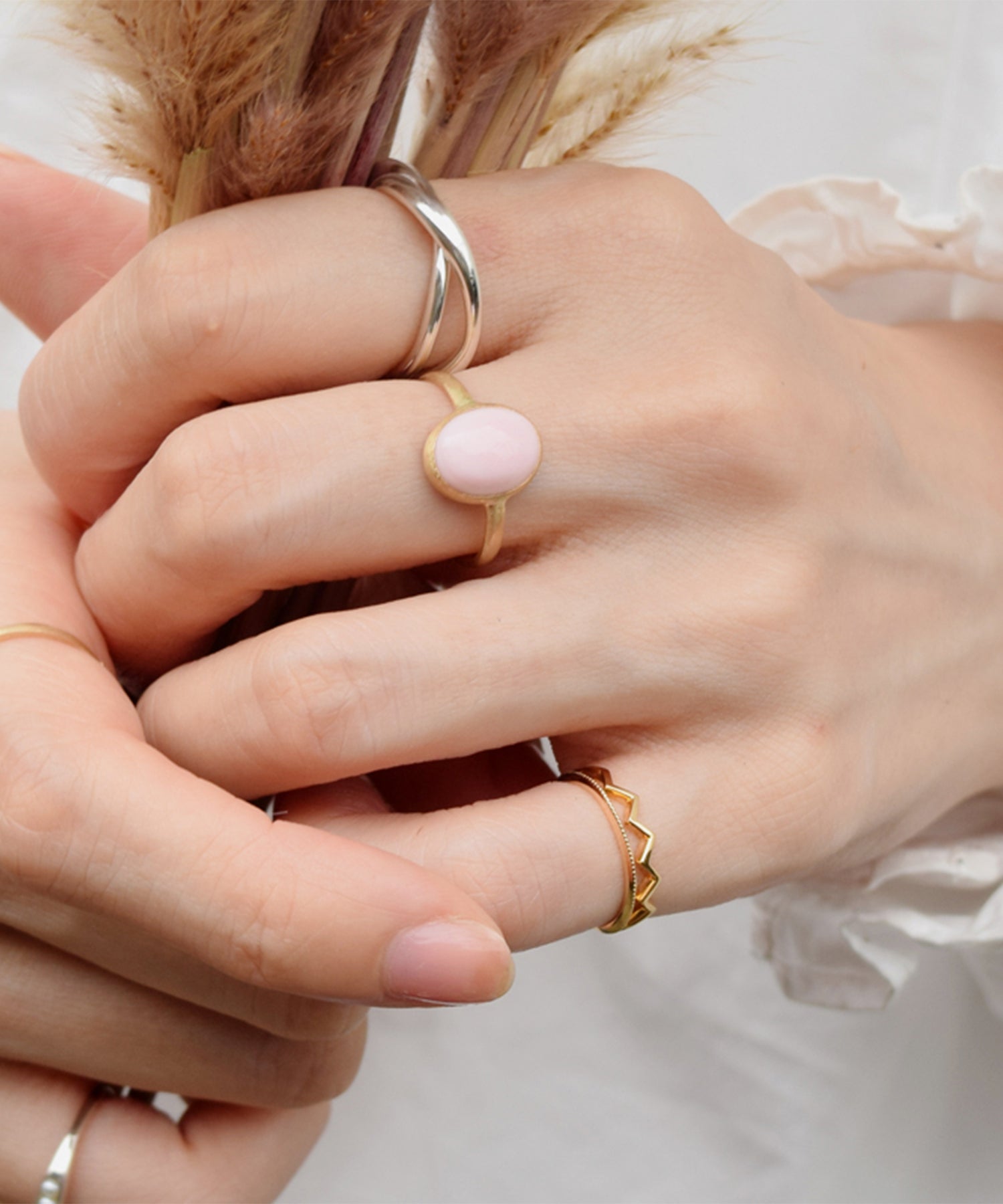 コンクシェルの石言葉は"純潔・健康"優しく光沢感が残るヘアライン加工で天然石を引き立てる仕上げになっています。