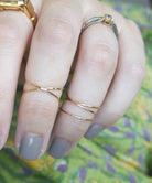 華奢なリングを重ね着けしたようなどんなスタイルにも合わせやすく1本でボリューム感が出せるファランジリングです。もちろんピンキーリングにも。指先のワンポイントにお持ちのリングとのコーディネートに持っているととても便利な万能アイテムです。