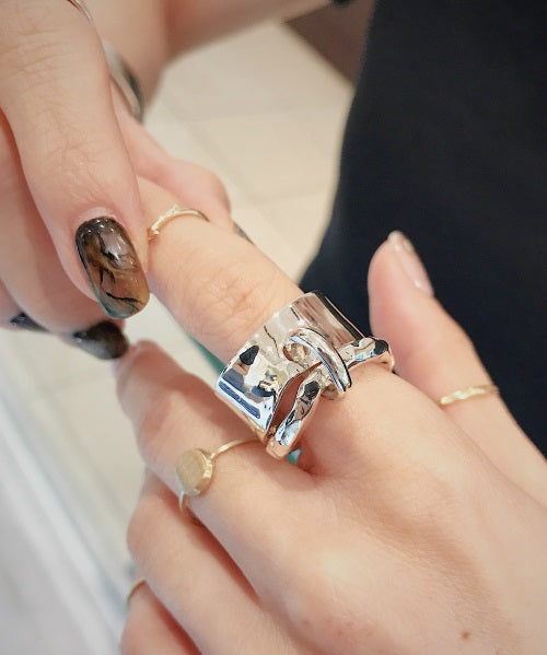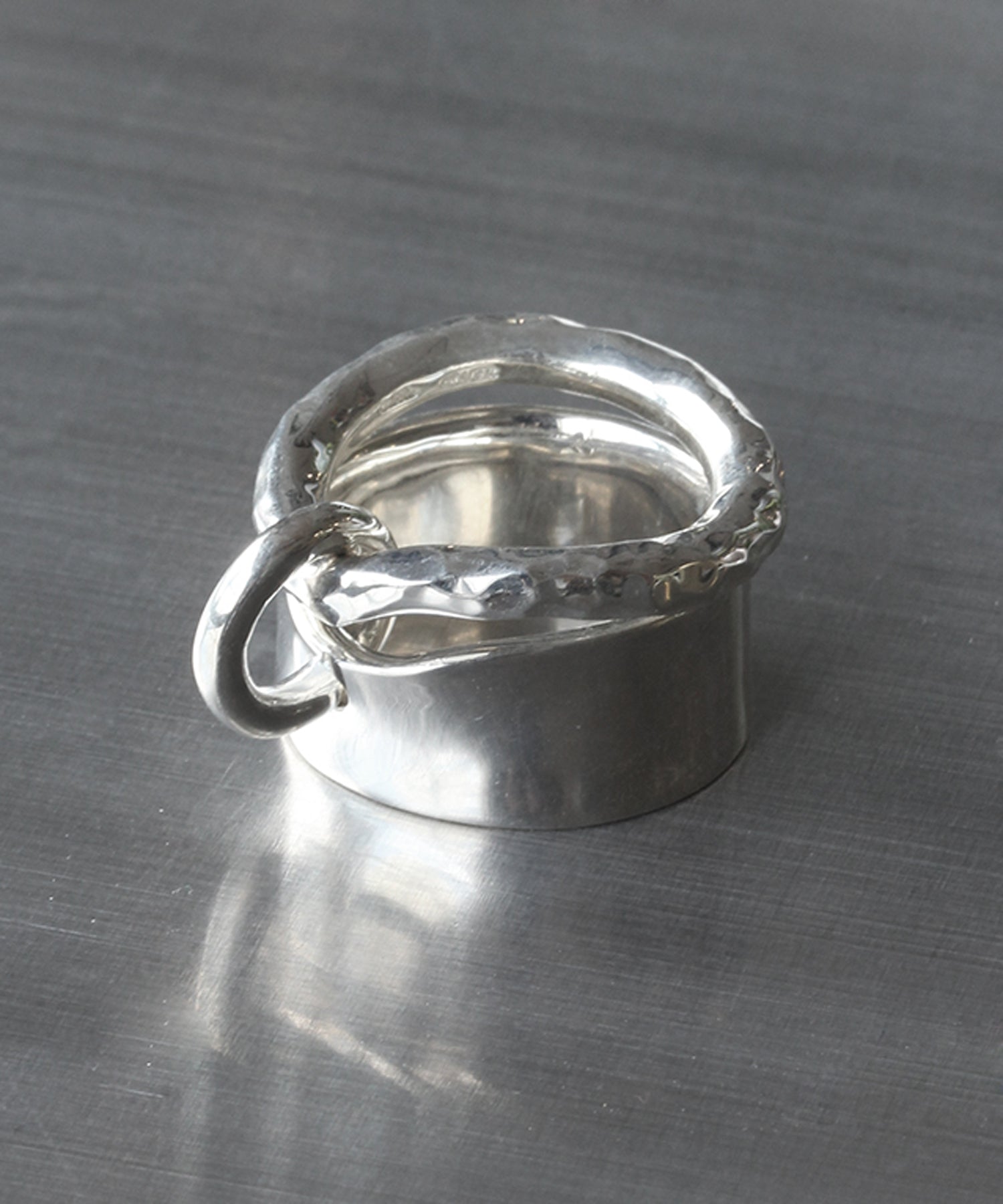 異なるデザインをあわせた2連リングは着け方を変えてお楽しみいただけます。