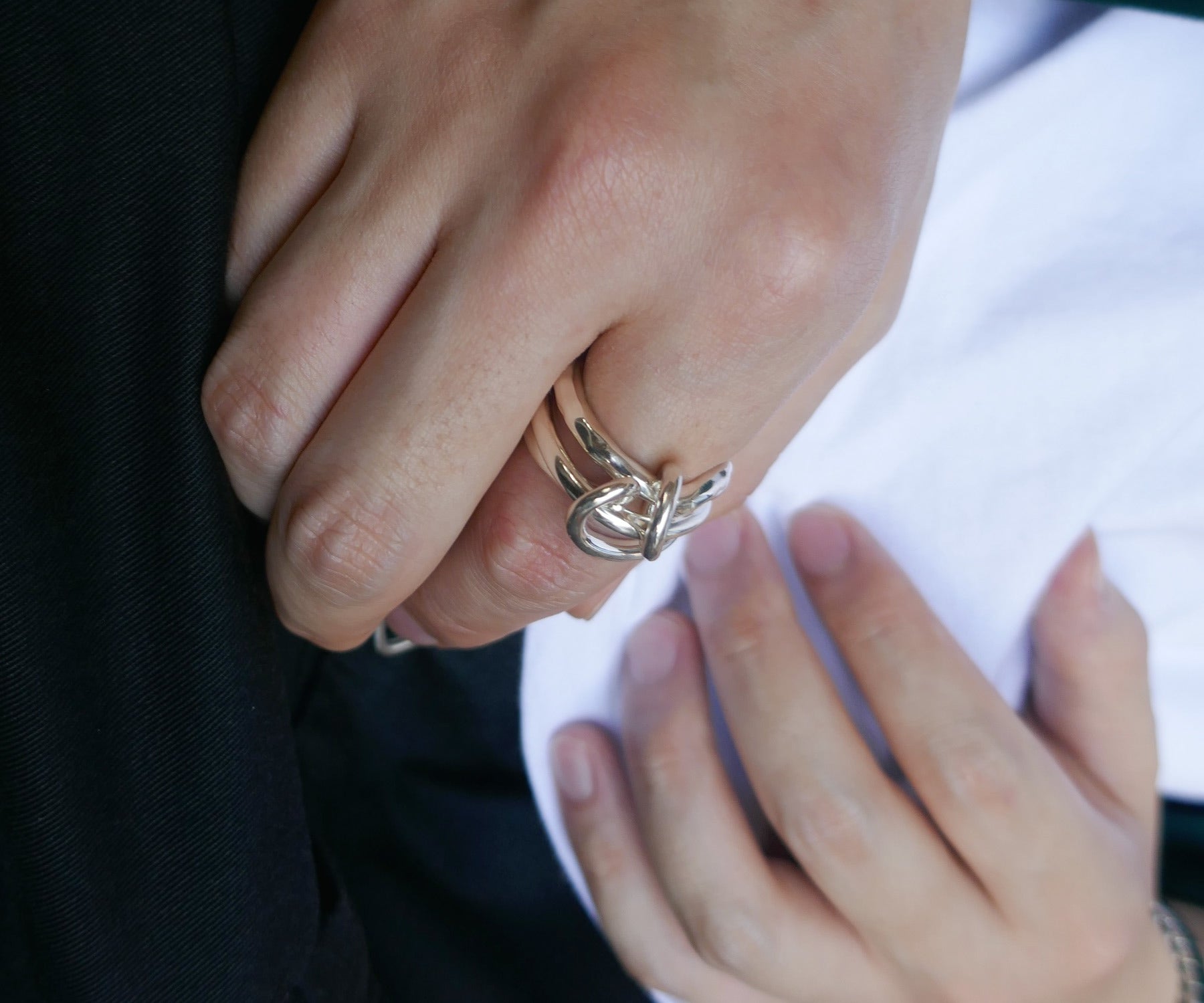立体的でボリュームのあるリングはコーディネートの主役に。