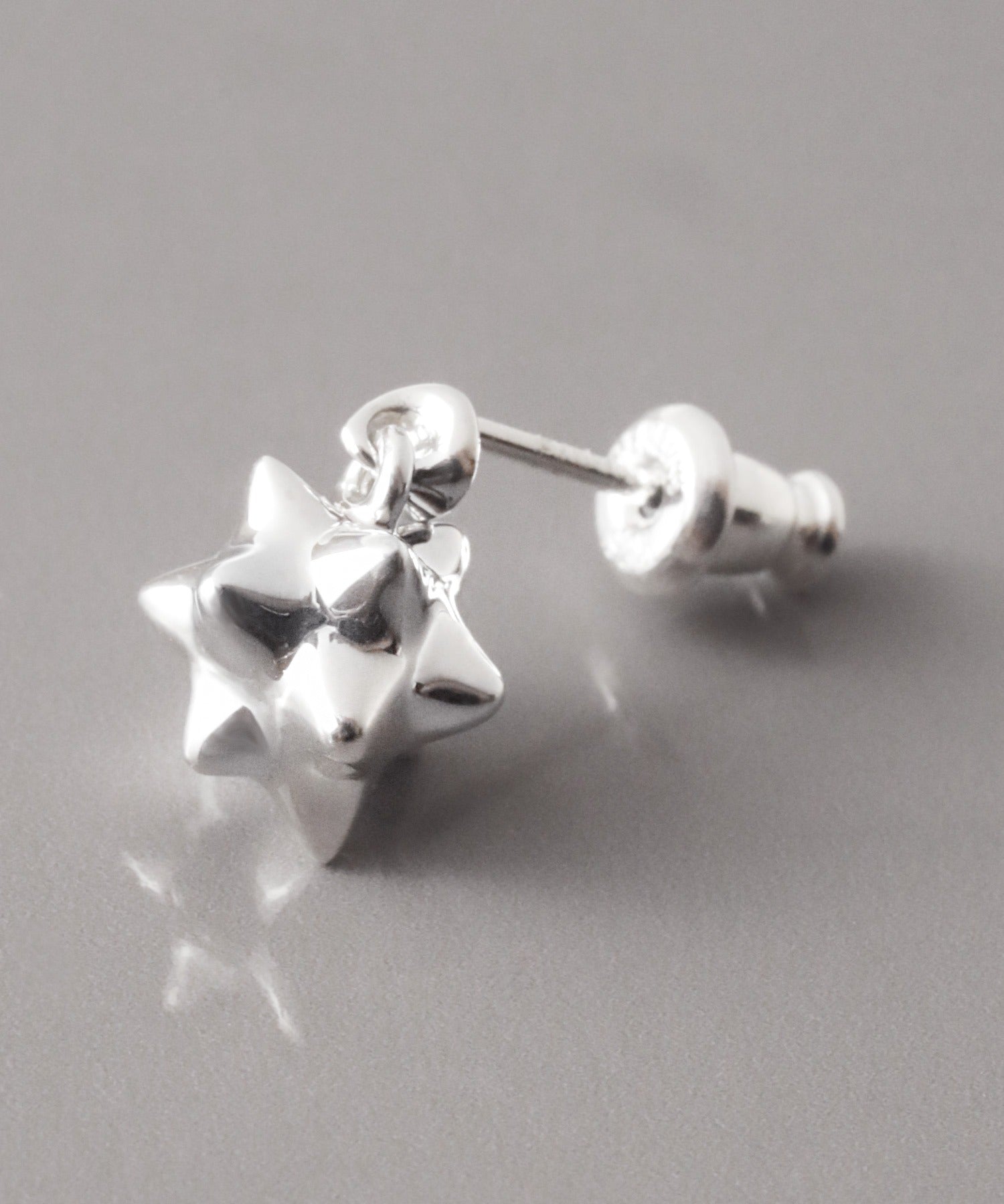 スタッズボールがさり気なく1石揺れるシルバーピアス。