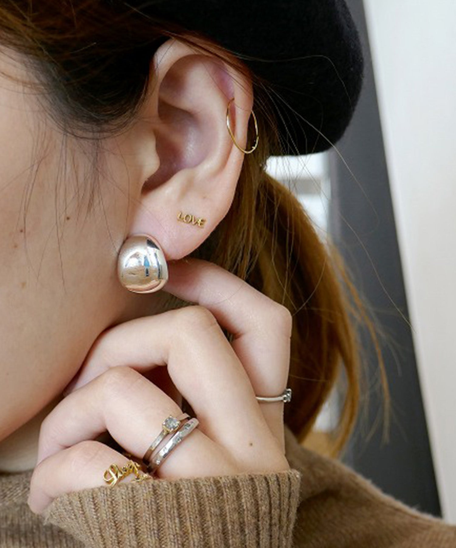 今まであまりなかったシルバーとメタル感が美しいイヤリング。