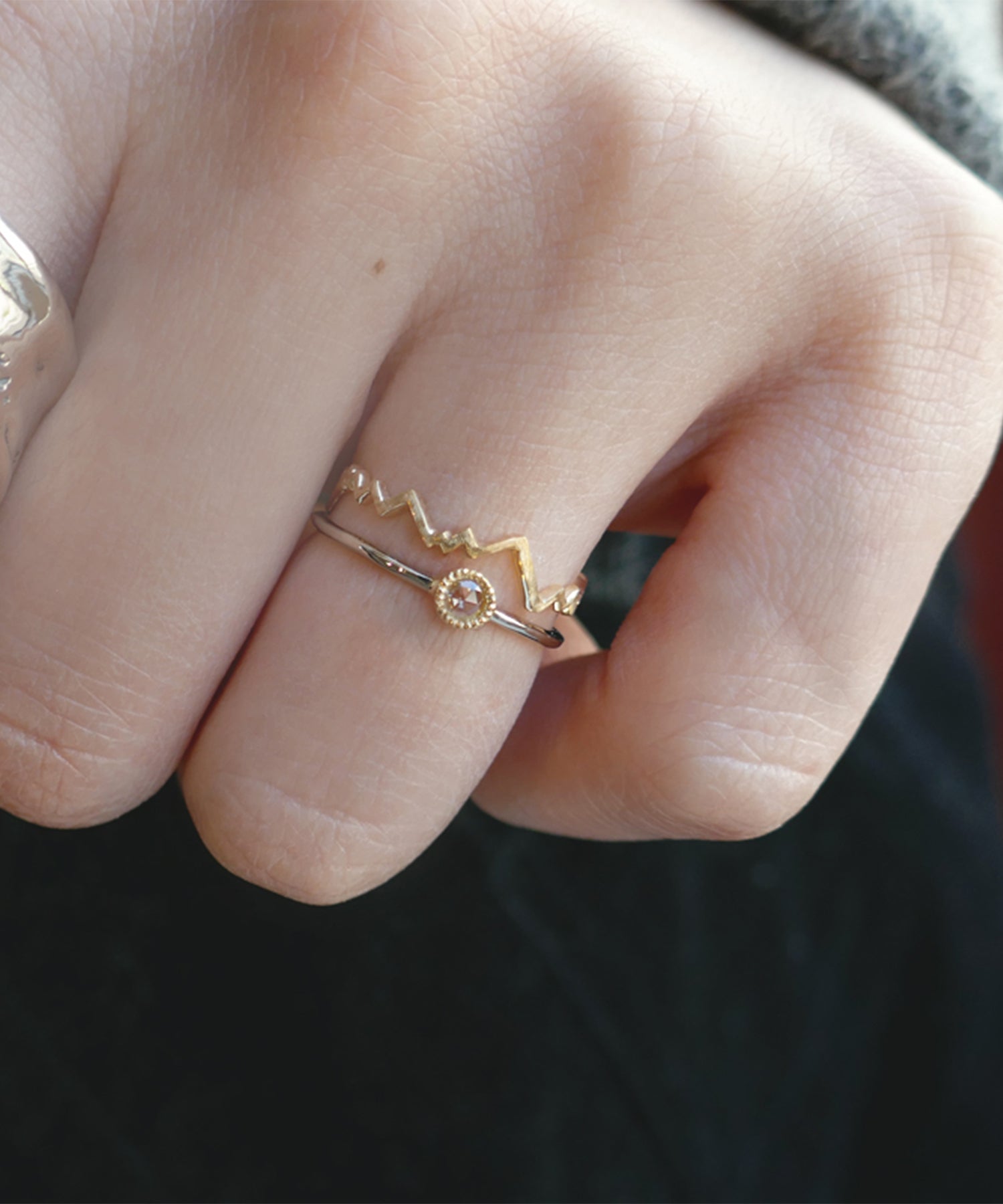 見せる部分で雰囲気が変わる不思議なリングです。